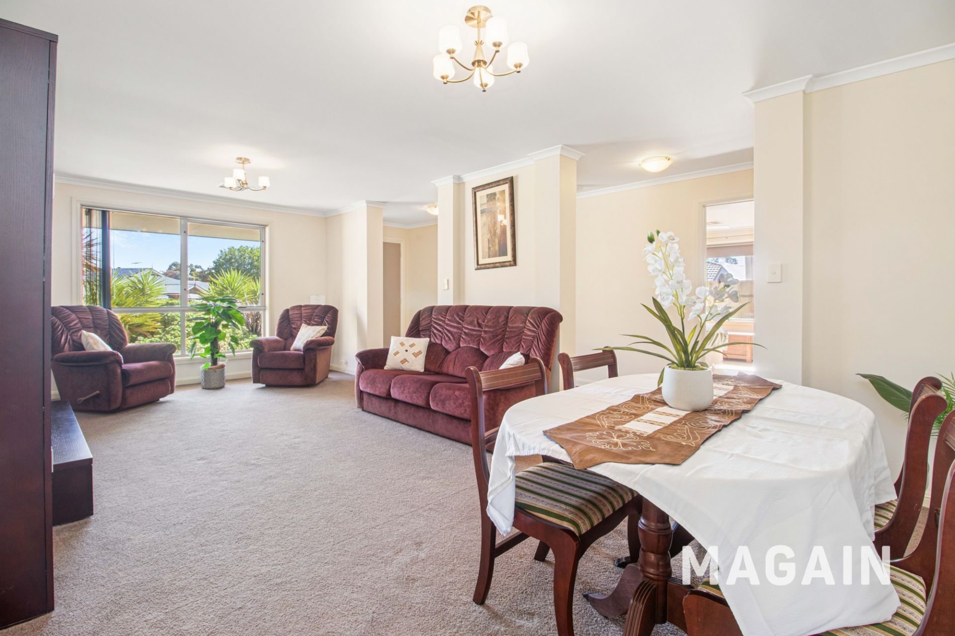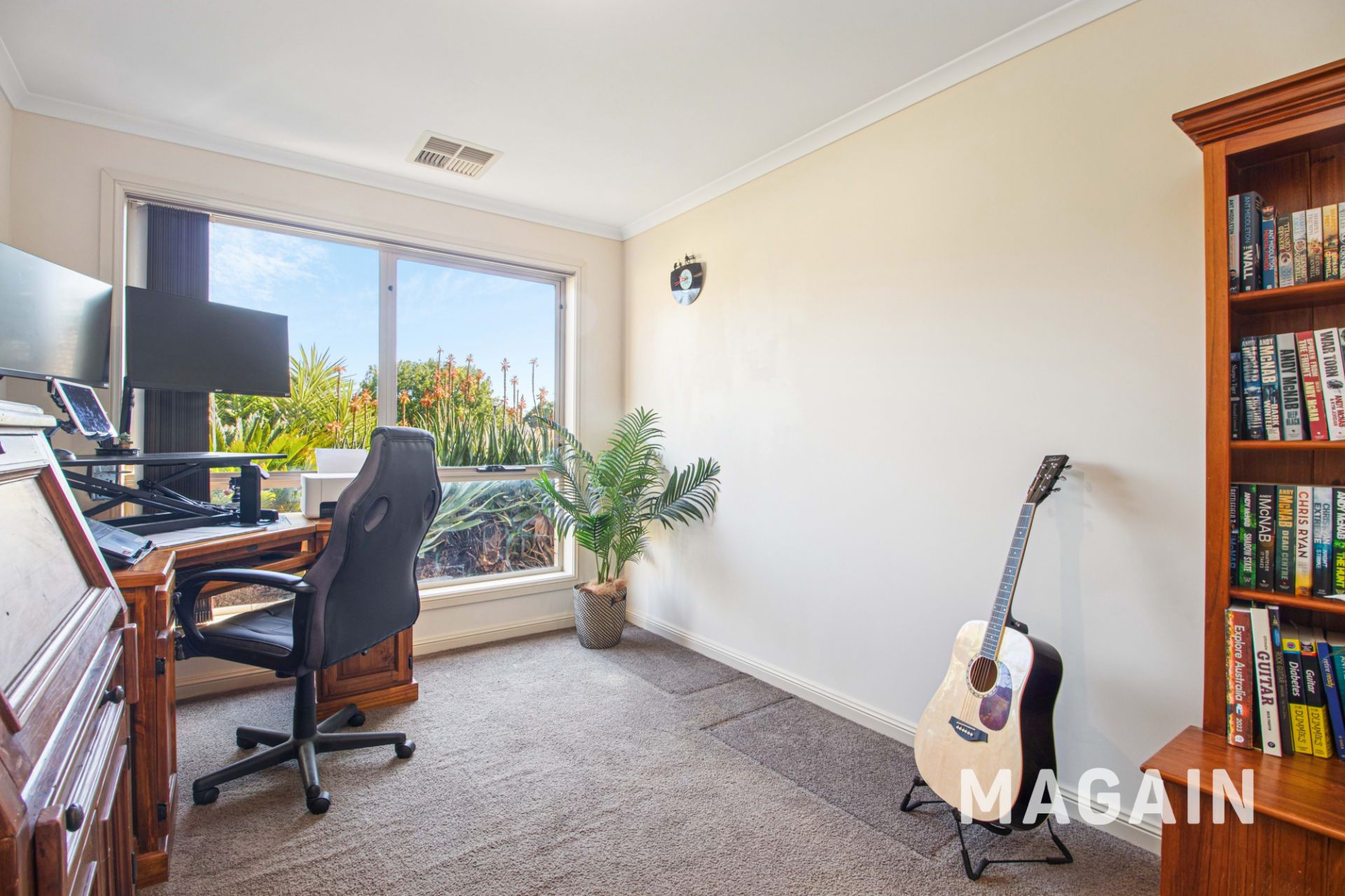 Step inside to discover a generous open plan living and dining area that flows seamlessly to the outdoor entertaining space overlooking the gardens, complete with multiple established fruit trees. A second lounge area provides extra room to relax, while the study offers a quiet place to work or learn from home.
