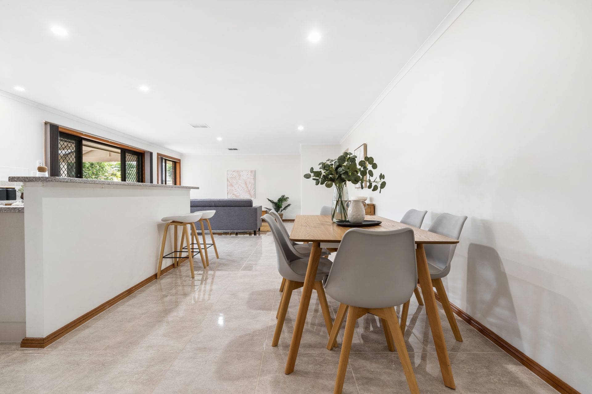 - Large open plan kitchen, dining, living area