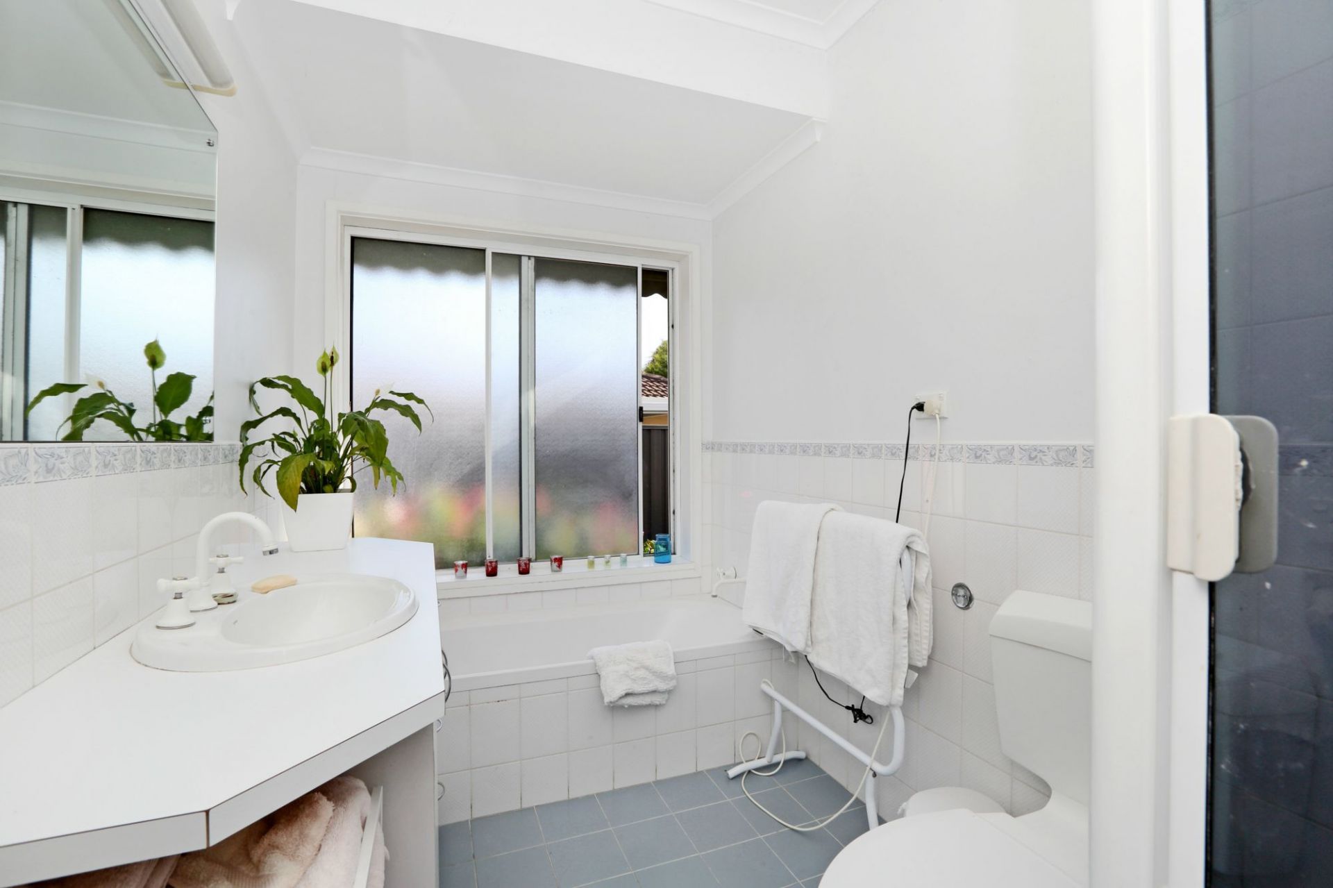 >bathroom incorporates a full sized bath and a separate shower plus WC, and the home has a second guest toilet.
