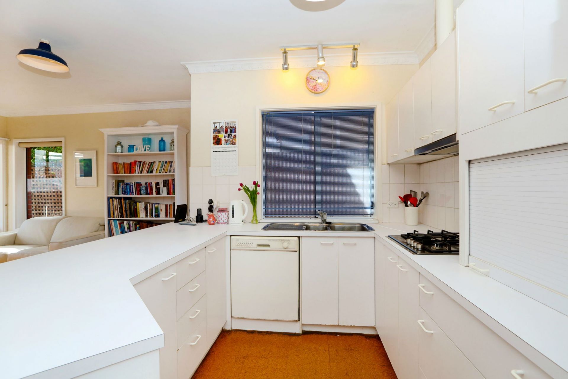 >A large north facing kitchen with adjacent meals area or sitting room