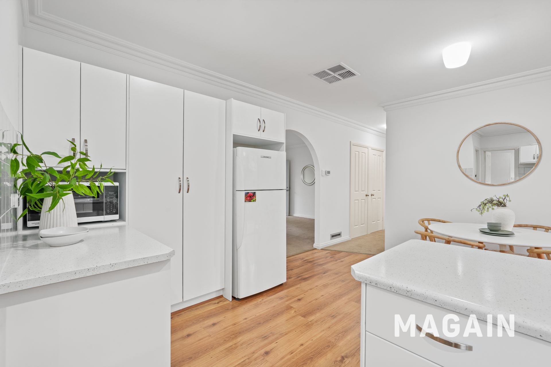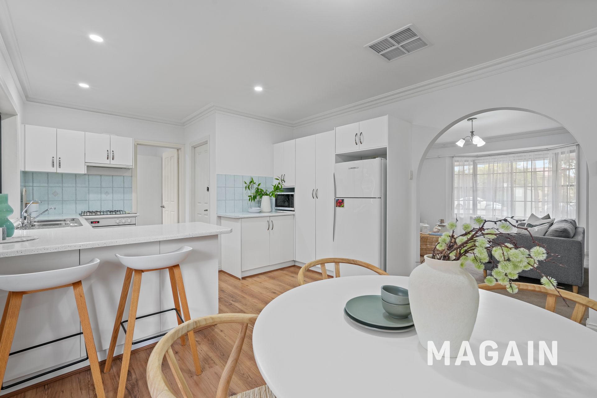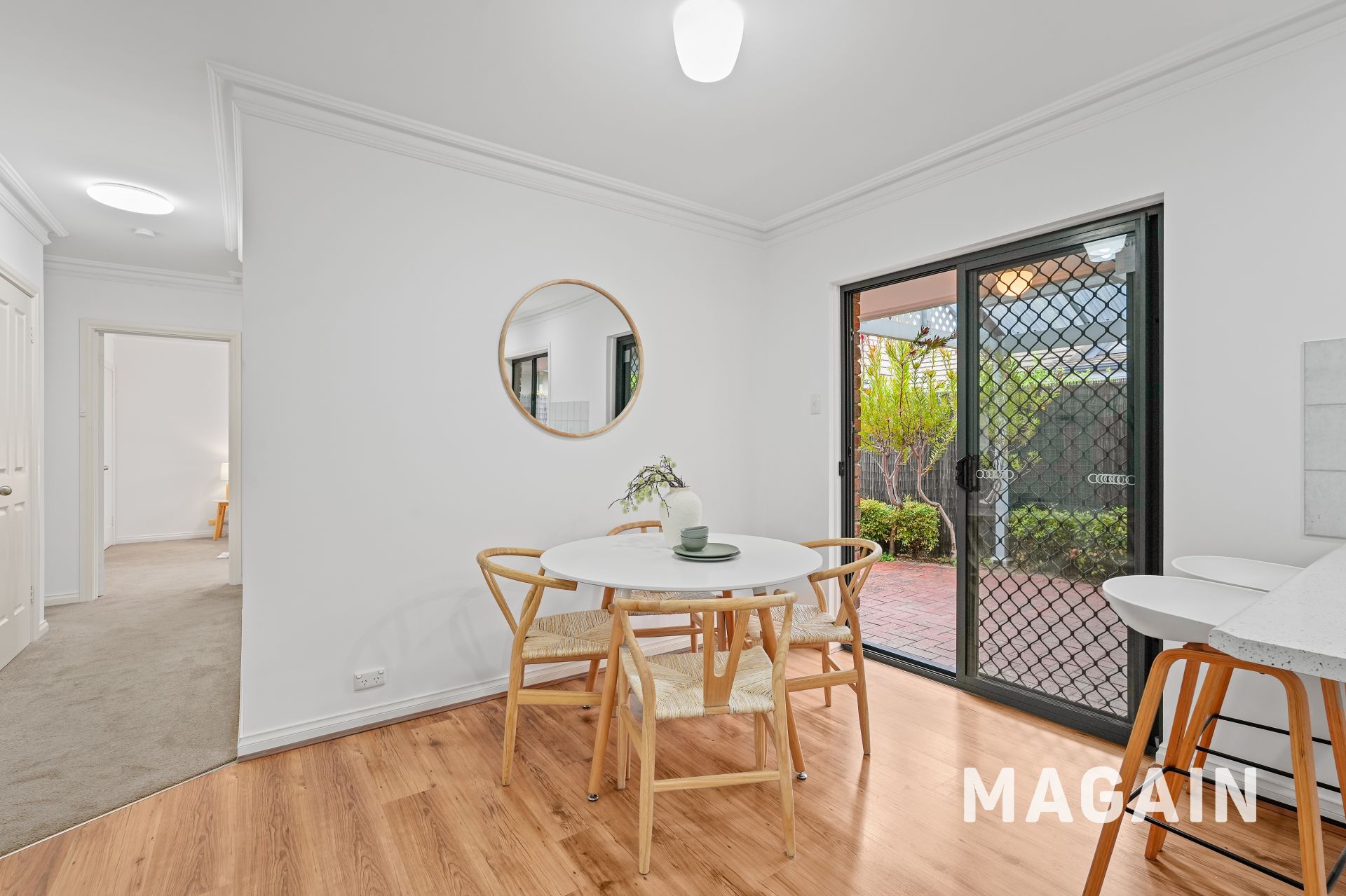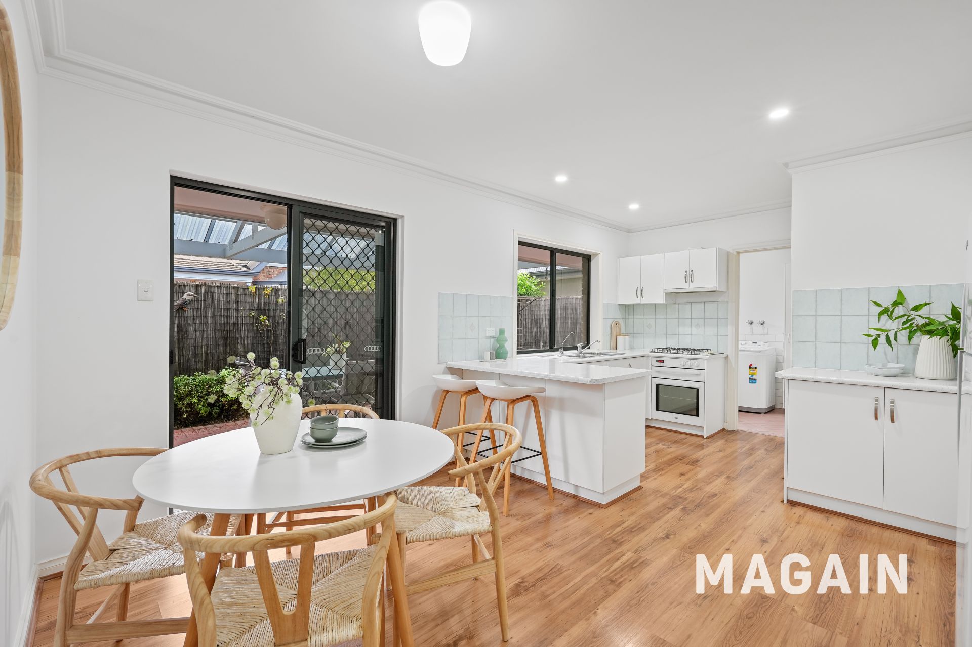 The living flows seamlessly into the dining area and adjoining kitchen, forming a connected central hub designed for everyday comfort rather than upkeep. With easy access to the laundry and rear pergola, indoor-outdoor living is effortless - perfect for relaxed entertaining without the burden of extensive garden maintenance.