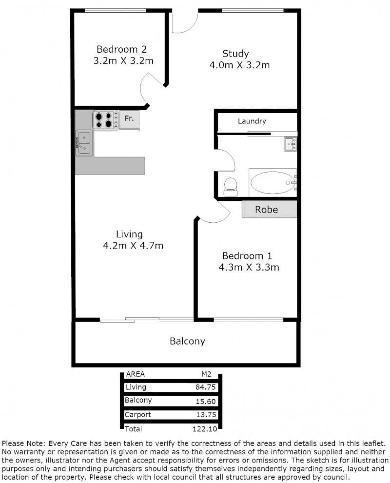 2 Spacious bedrooms + study - can easily be converted into a third bedroom