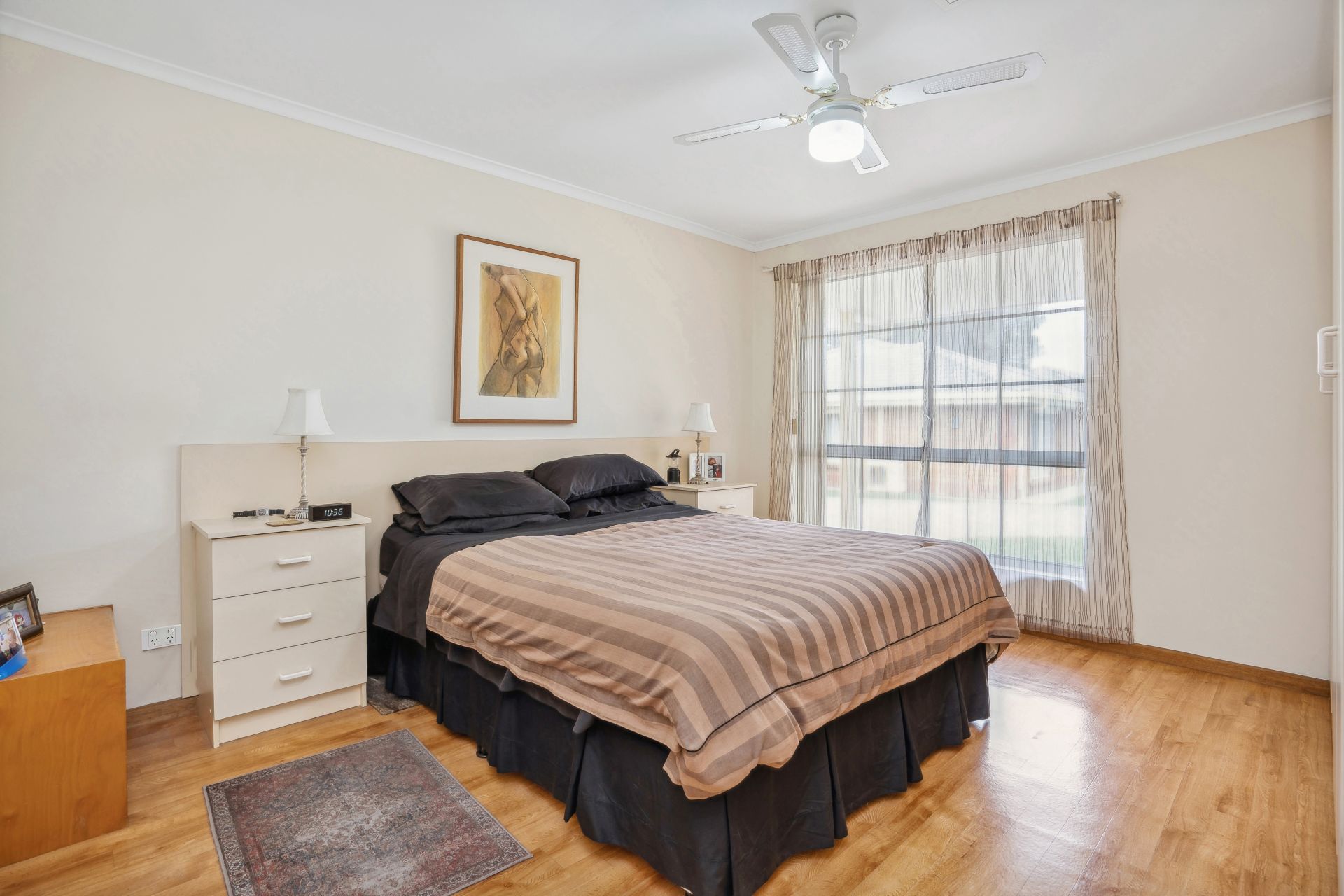 Imagine arriving home to beautiful low maintenance gardens, a timeless modern facade and a welcoming porch. Step inside and discover an open plan living and dining room, bathed in natural light, this delightful space boasts a split system air conditioning for ultimate comfort control and neutral colour tones. Complementing the space is a ceiling fan and floating floors, that add a touch of sophistication. The U-shaped kitchen is ready for the home chef to make their own, it comes equipped with a freestanding electric cooktop and oven, stylish wood cabinetry with good cupboard storage and a built-in pantry, laminate benchtops offering plenty of room for meal prep and a single sink with a tile splashback, providing both style and functionality. Two bedrooms offer comfortable accommodation for the residents, the master is generous in size and boasts a built-in robe, a ceiling fan and easy-care floating floors, while bedroom two has carpet flooring. The central bathroom features a step-in shower, soaking tub, vanity, and the convenience of a separate toilet, while the laundry provides external access.