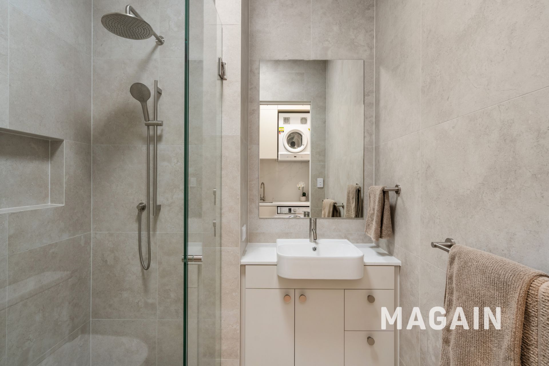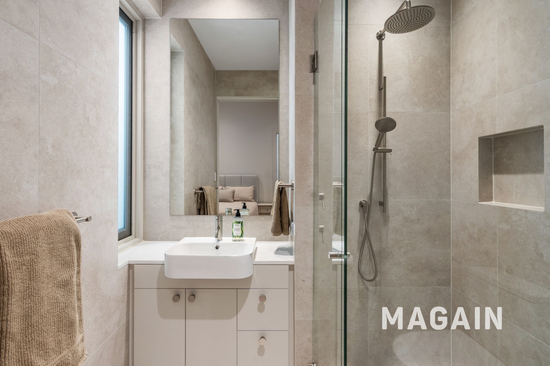 > Main bedroom includes an ensuite with beautiful floor to ceiling tiles.