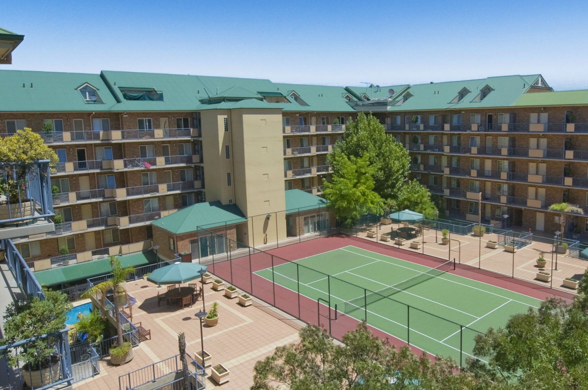 Common facilities include full size tennis court, large entertaining area with gas BBQ and sauna.
