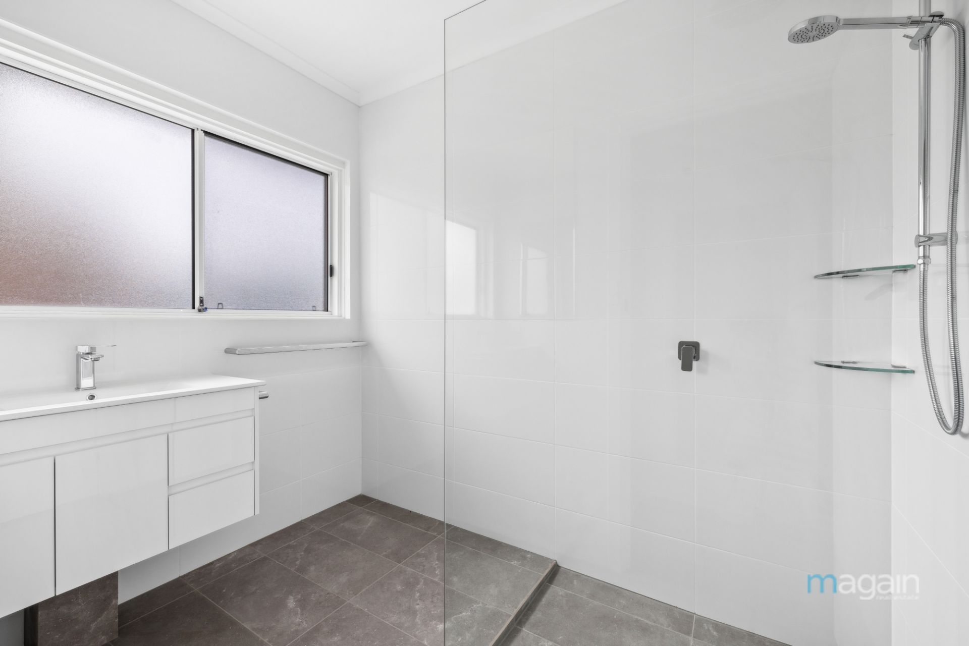 > beautifully renovated bathroom with a spacious walk-in shower.