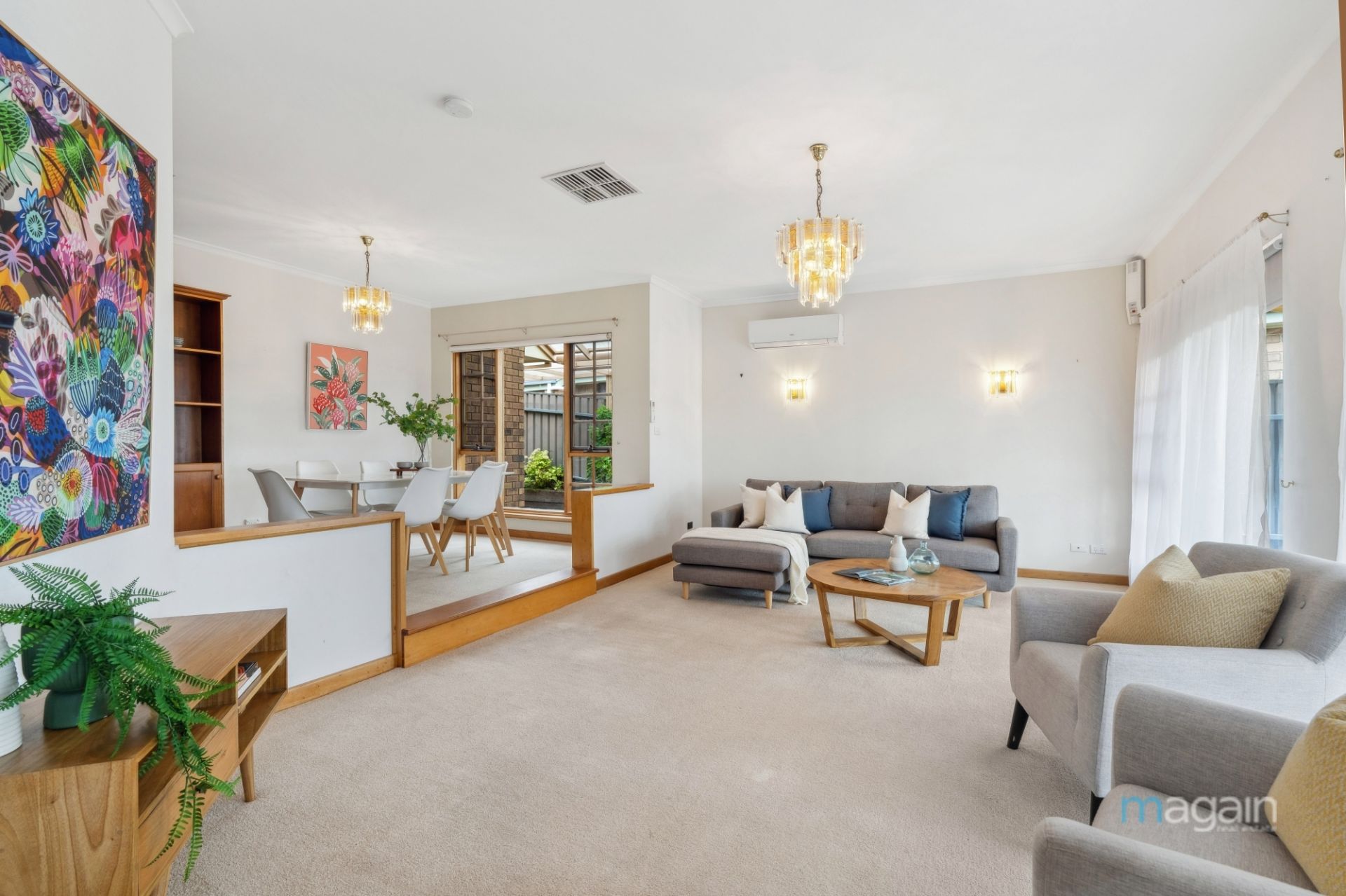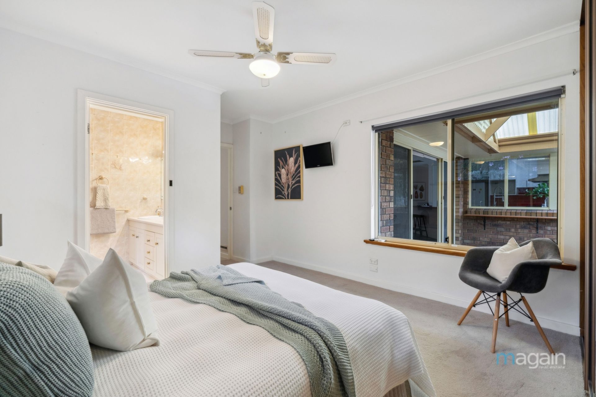 Impressive features of this home include a double garage with roller door and secure internal access, an additional off-street parking space for a boat or caravan, three split system heating and cooling units, a gas space heater, gas hot water, NBN connectivity, a watering system, automated sensor lighting, and a small garden shed.