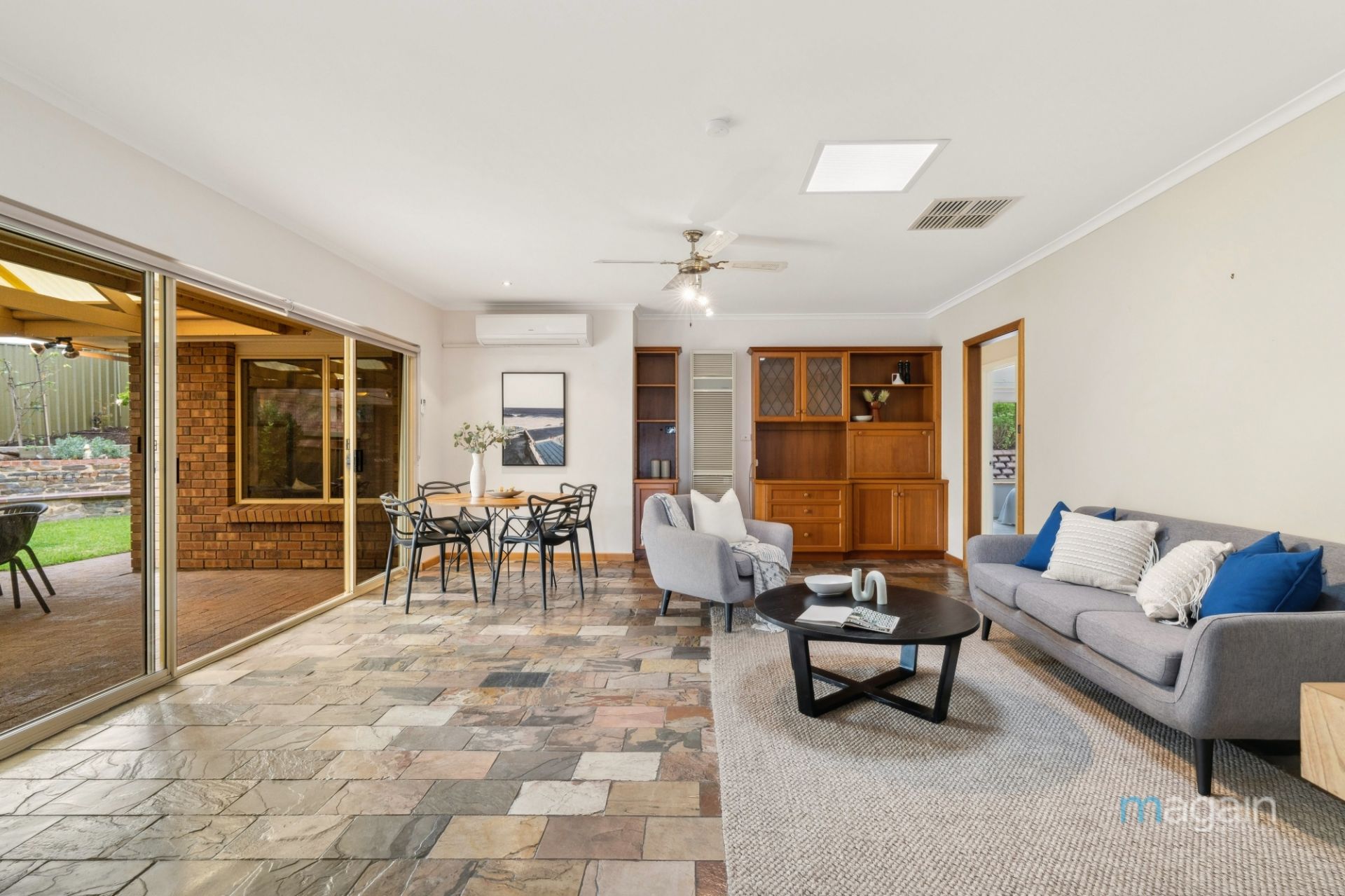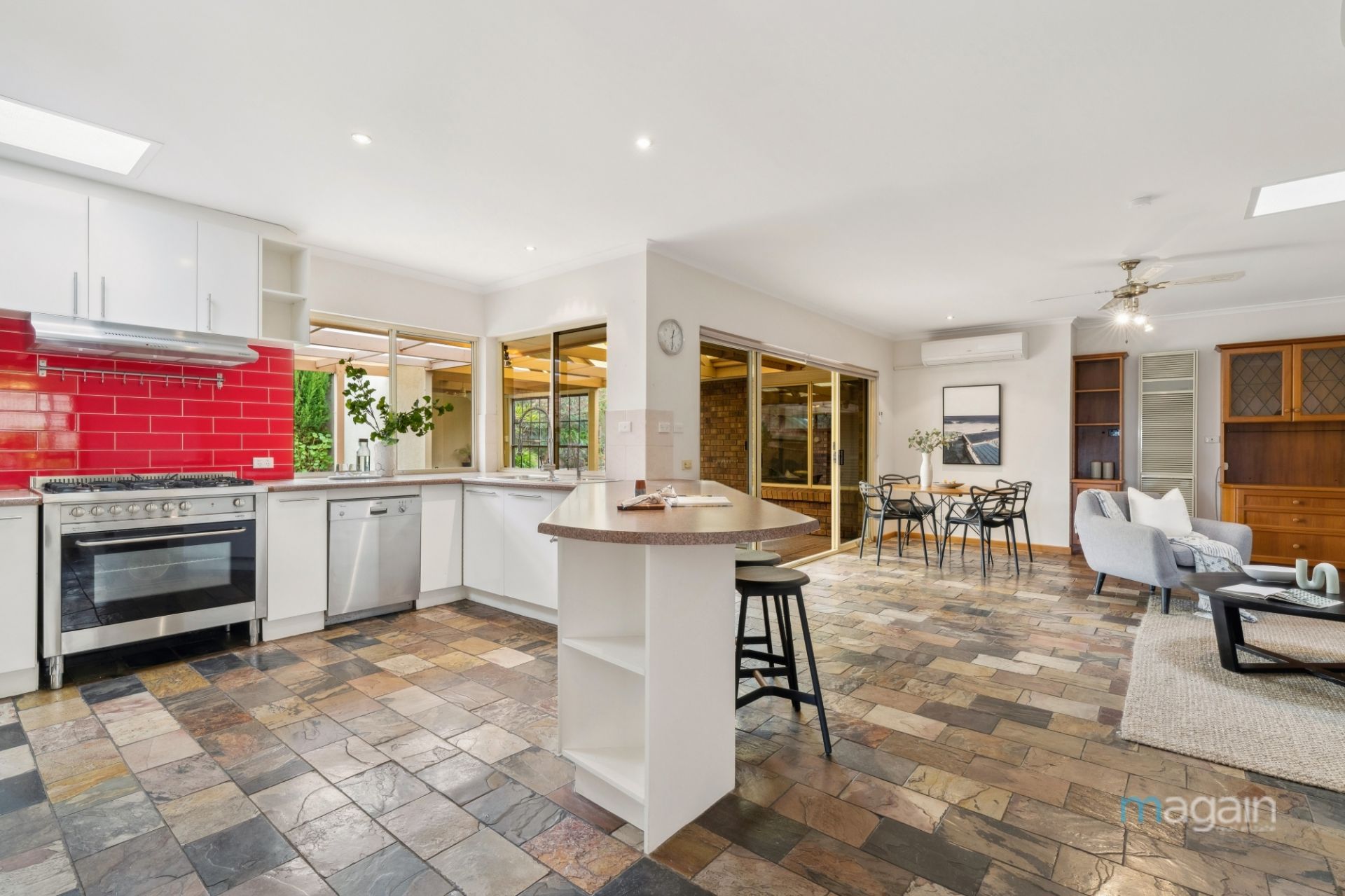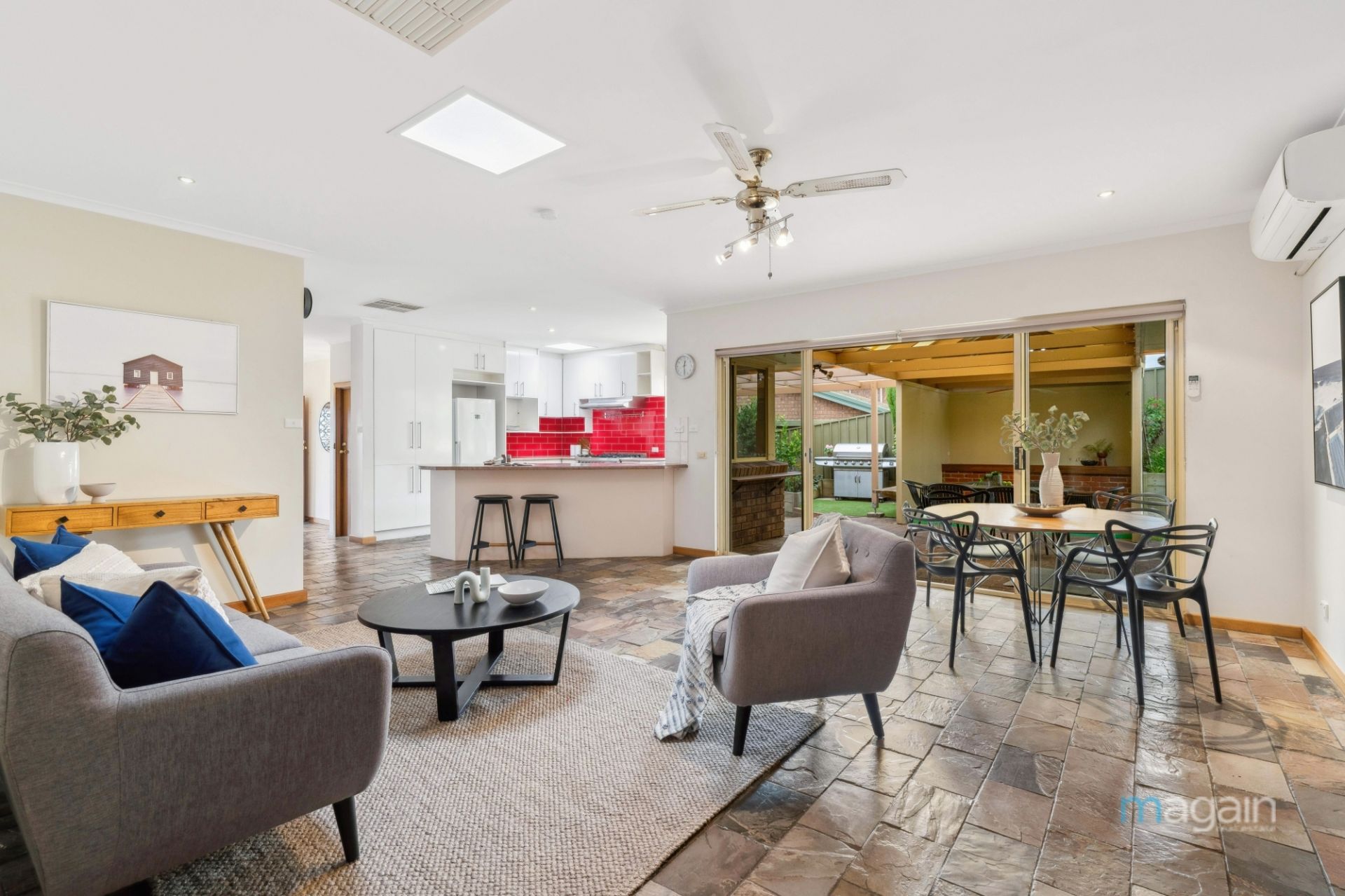 Step into this pristine three-bedroom residence nestled in the heart of Hallett Cove, where breathtaking ocean views await just steps from your front door. As you approach, the tidy kerb appeal welcomes you, while the nearby Linear Park Reserve offers a fantastic setting for outdoor enjoyment with its bike track and playground.