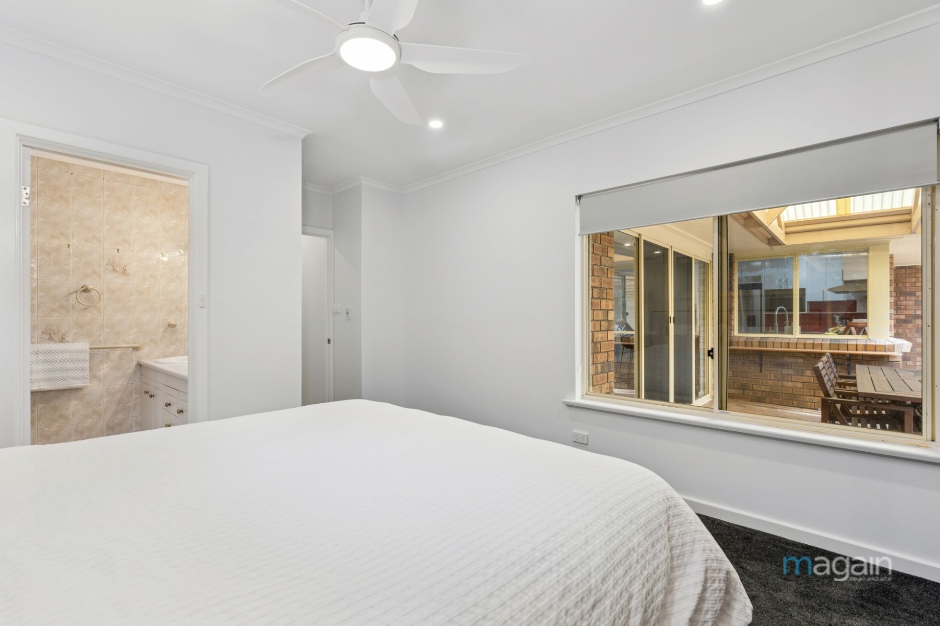 All three bedrooms are well-sized and feature built-in robes and ceiling fans for added comfort. The master bedroom boasts its own private ensuite, while the main bathroom offers a spa bath and a separate toilet. Ample storage is available throughout the home with multiple built-in cupboards.