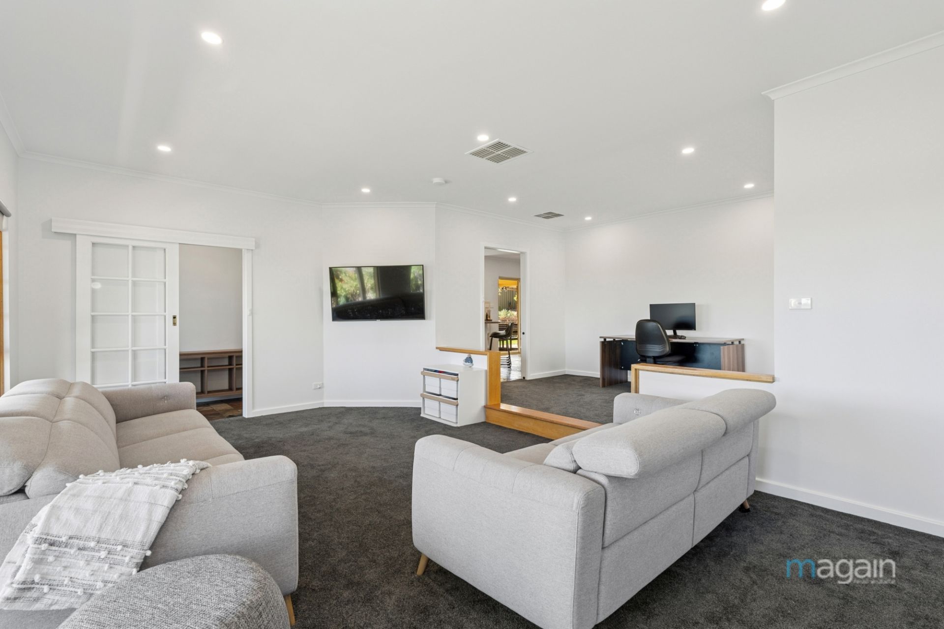 Additional valuable features include a recently restored roof, professional painting throughout, a 13.2kW solar panel system for energy efficiency, a double garage with secure internal access, extra off-street parking for a boat or caravan, three split system air conditioning units, gas hot water, NBN connectivity, a watering system, automated sensor lighting, and a garden shed for extra storage.