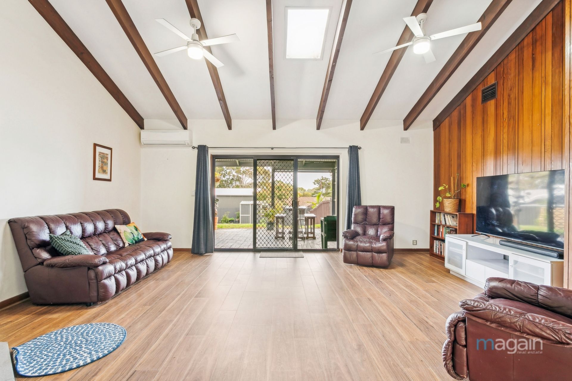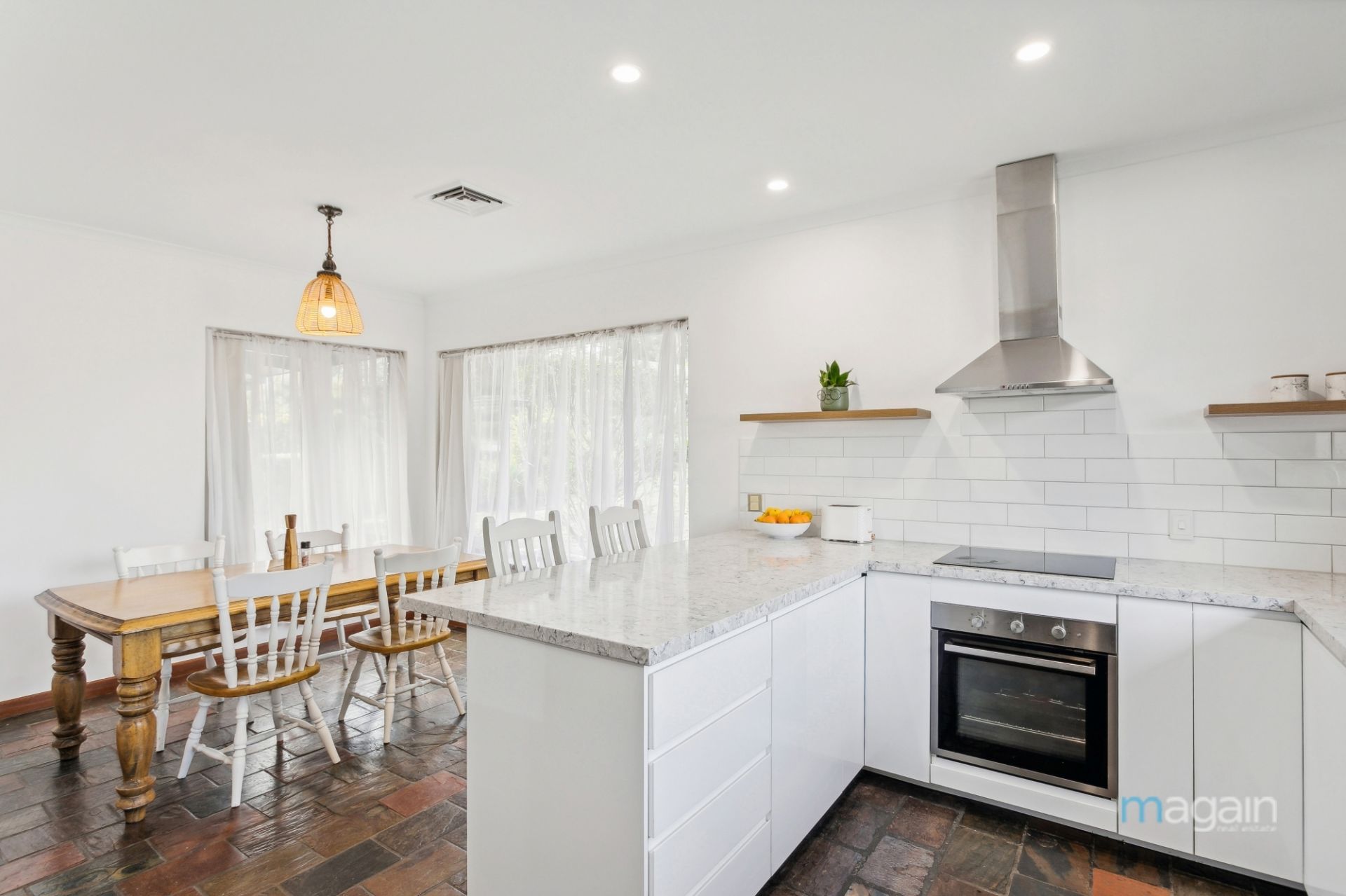 Nestled in a picturesque and family-friendly pocket of Happy Valley, this beautifully presented home offers an ideal blend of comfort, style, and practicality. Upon entering, a spacious foyer welcomes you with wide openings leading to the inviting lounge. Featuring elegant timber floors, raked ceilings adorned with a skylight, and enhanced by two ceiling fans, a woodfire, and a split system heating and cooling unit, the lounge exudes warmth and character.