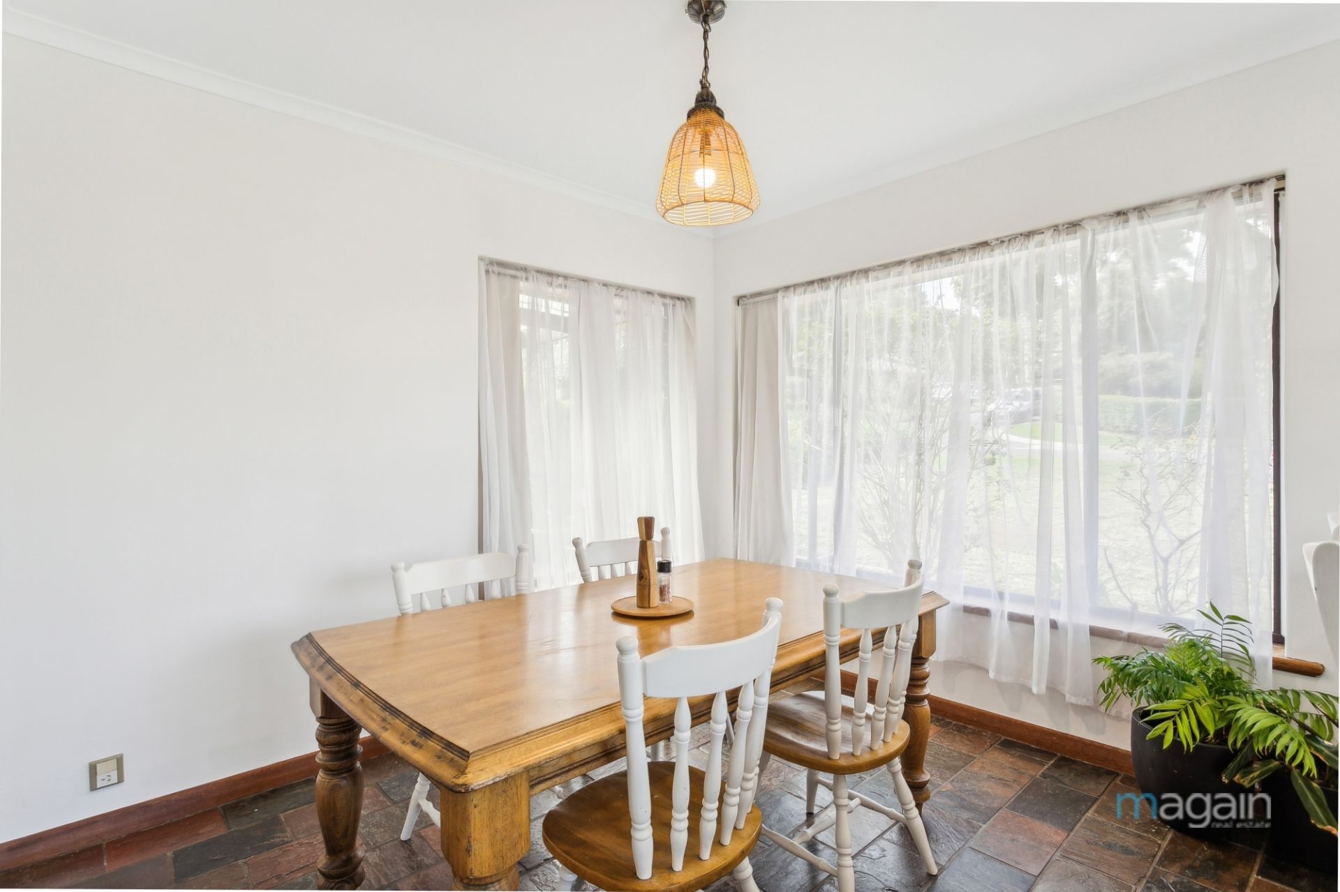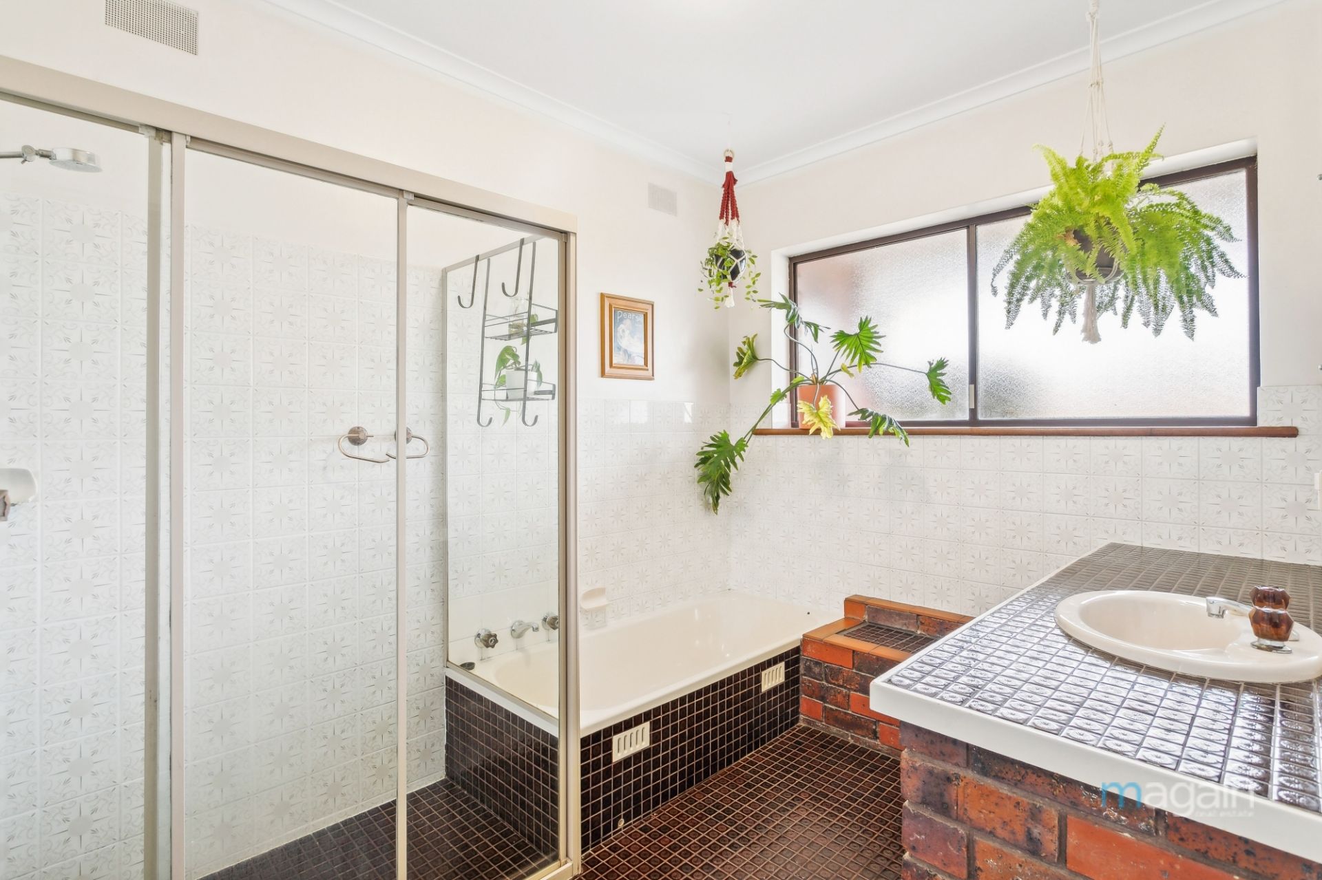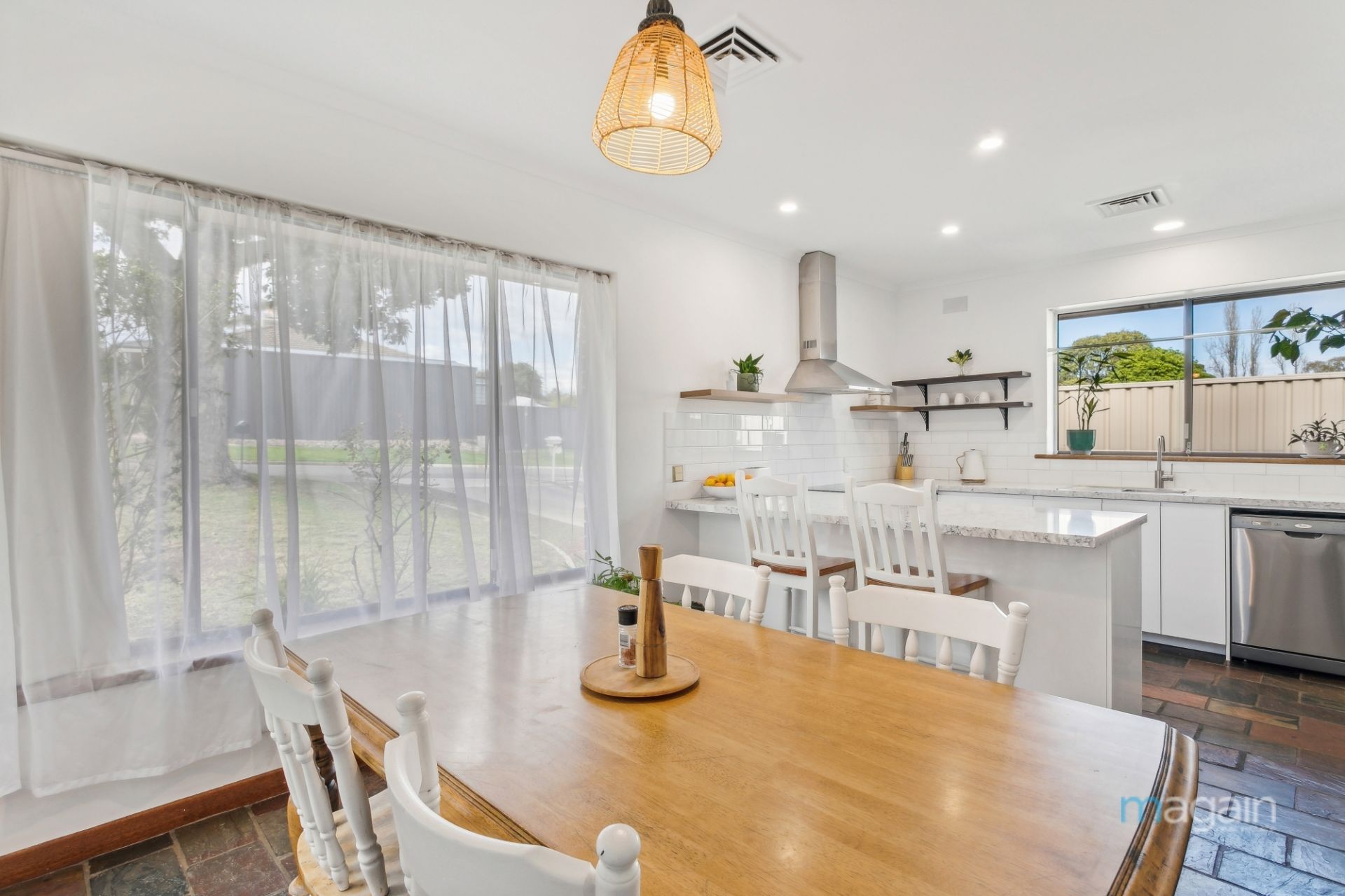To the left of the foyer, the large kitchen has been tastefully renovated in a soothing white palette, complemented by stainless steel appliances including a new dishwasher and a convenient breakfast bar. Adjacent is the casual meals area, and the main bathroom, separate toilet, and spacious laundry just a short walk away.