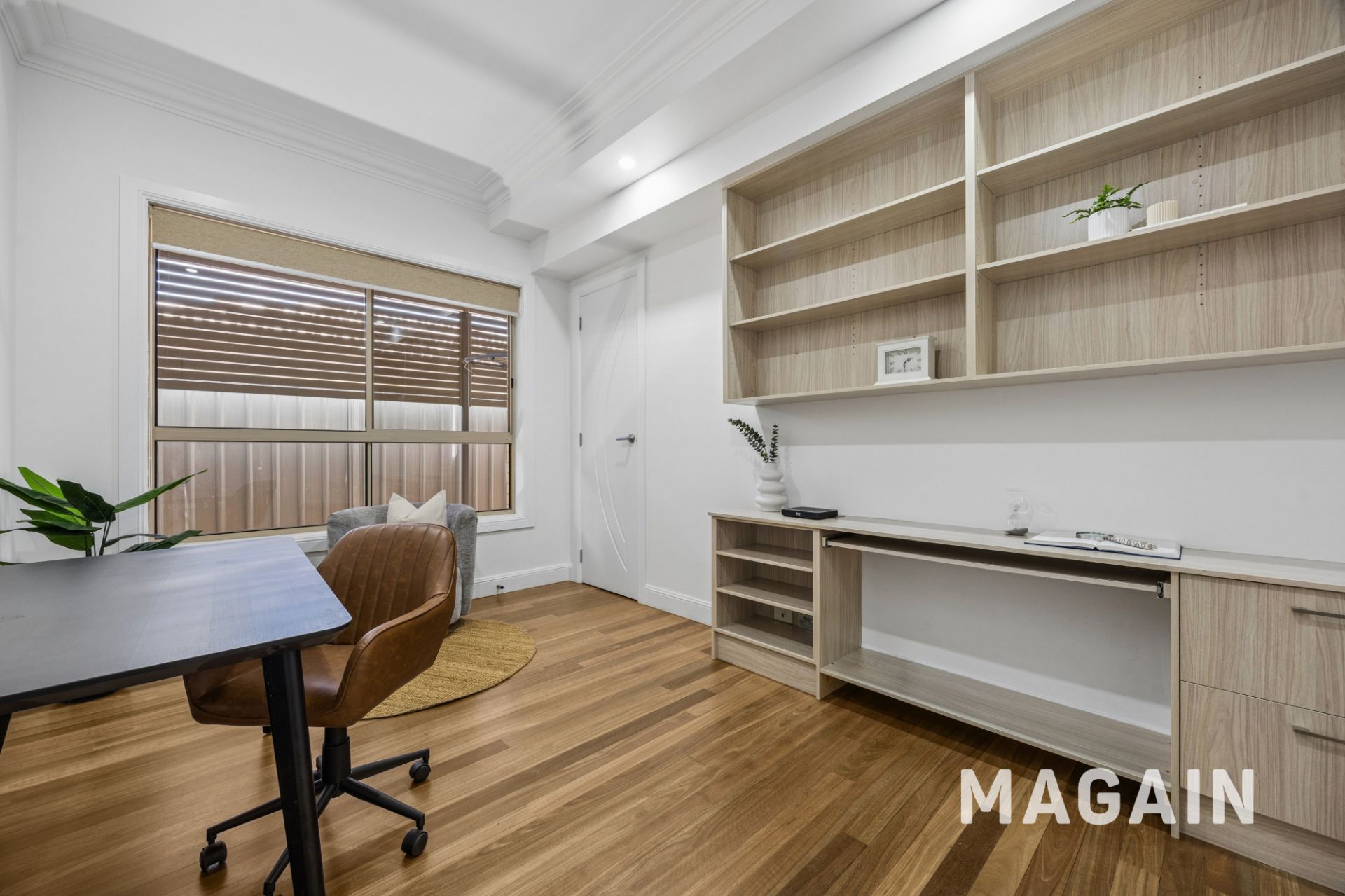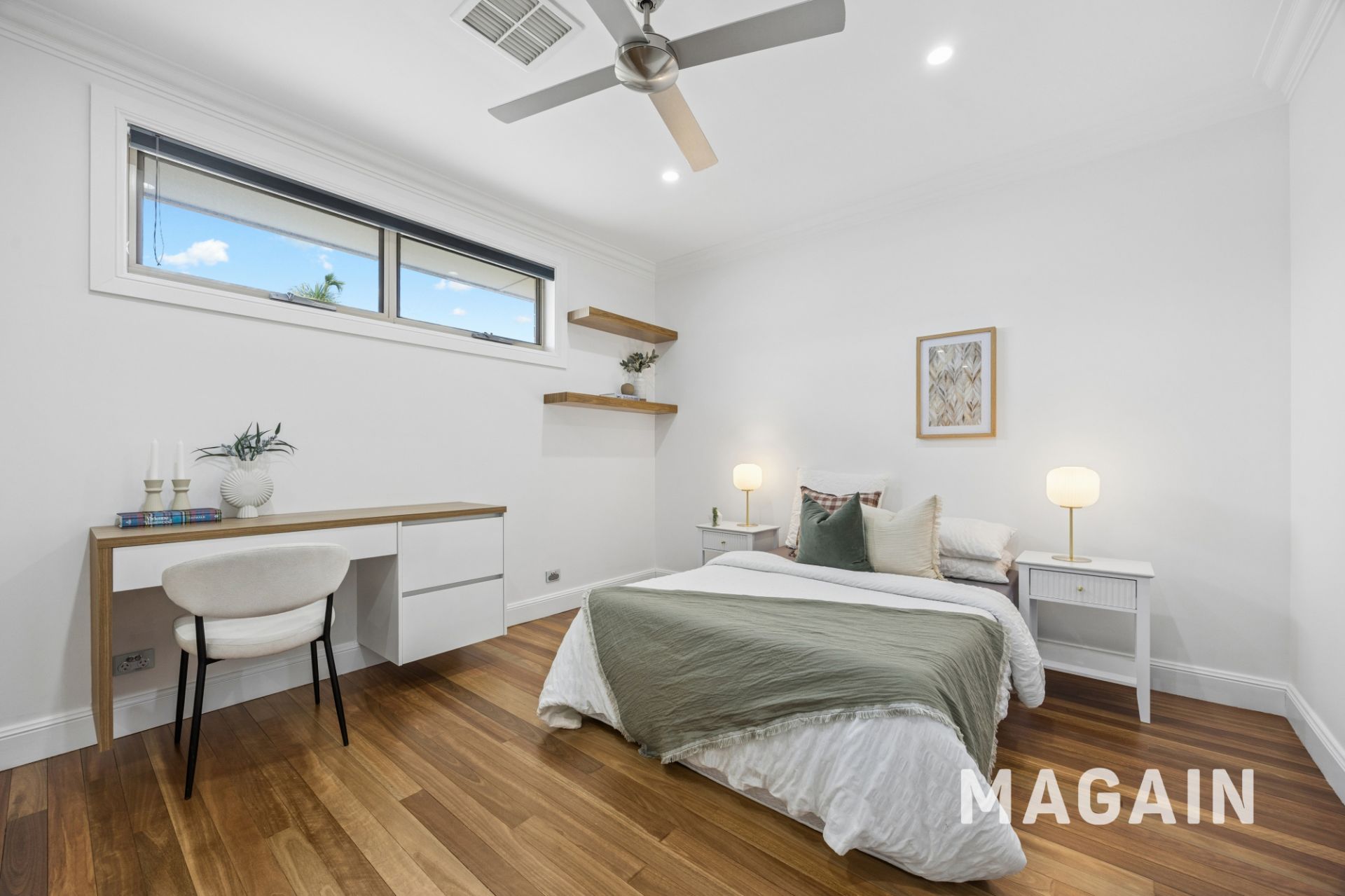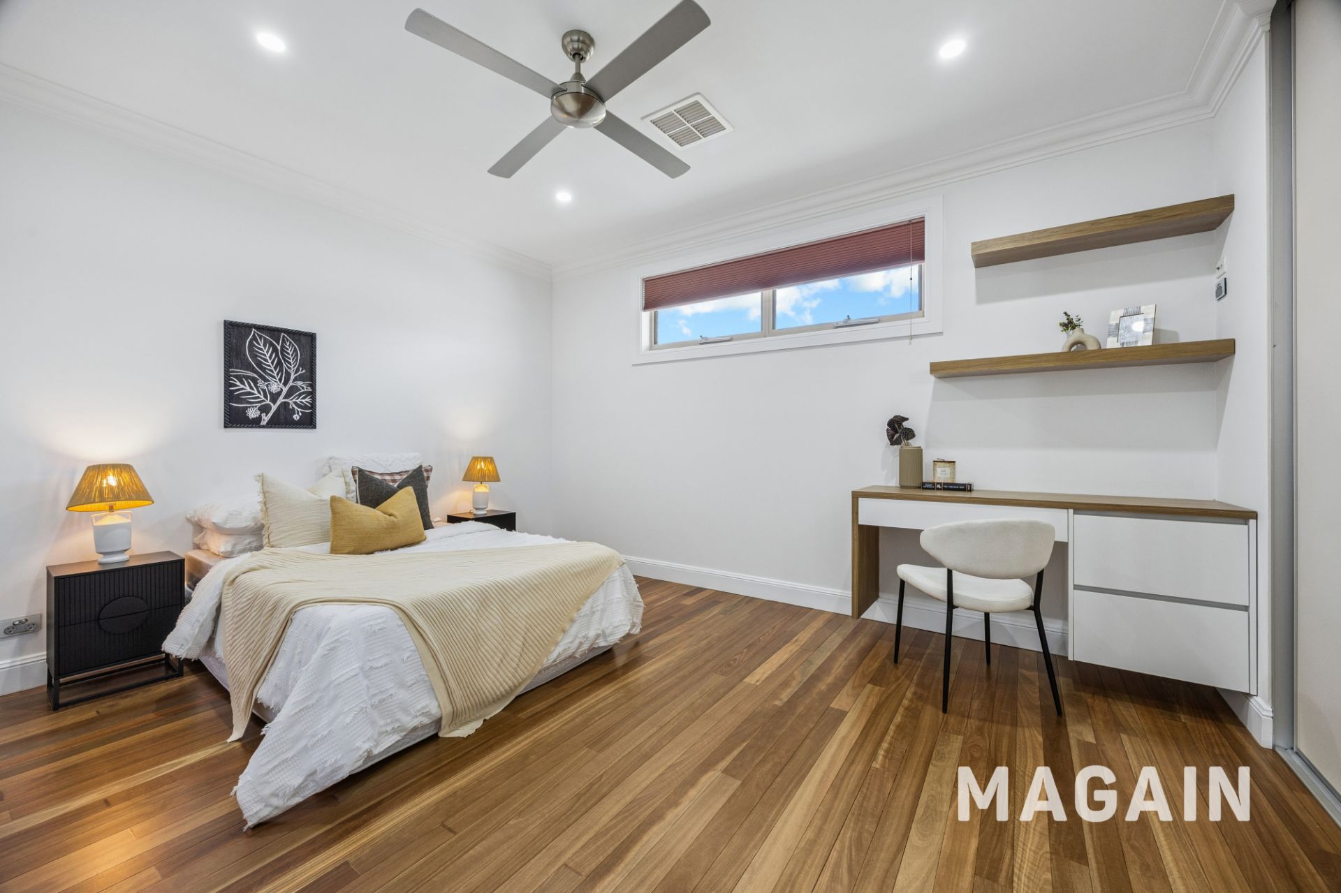 - The other two bedrooms feature integrated built-in wardrobes with desks, perfect for study or work-from-home setups
