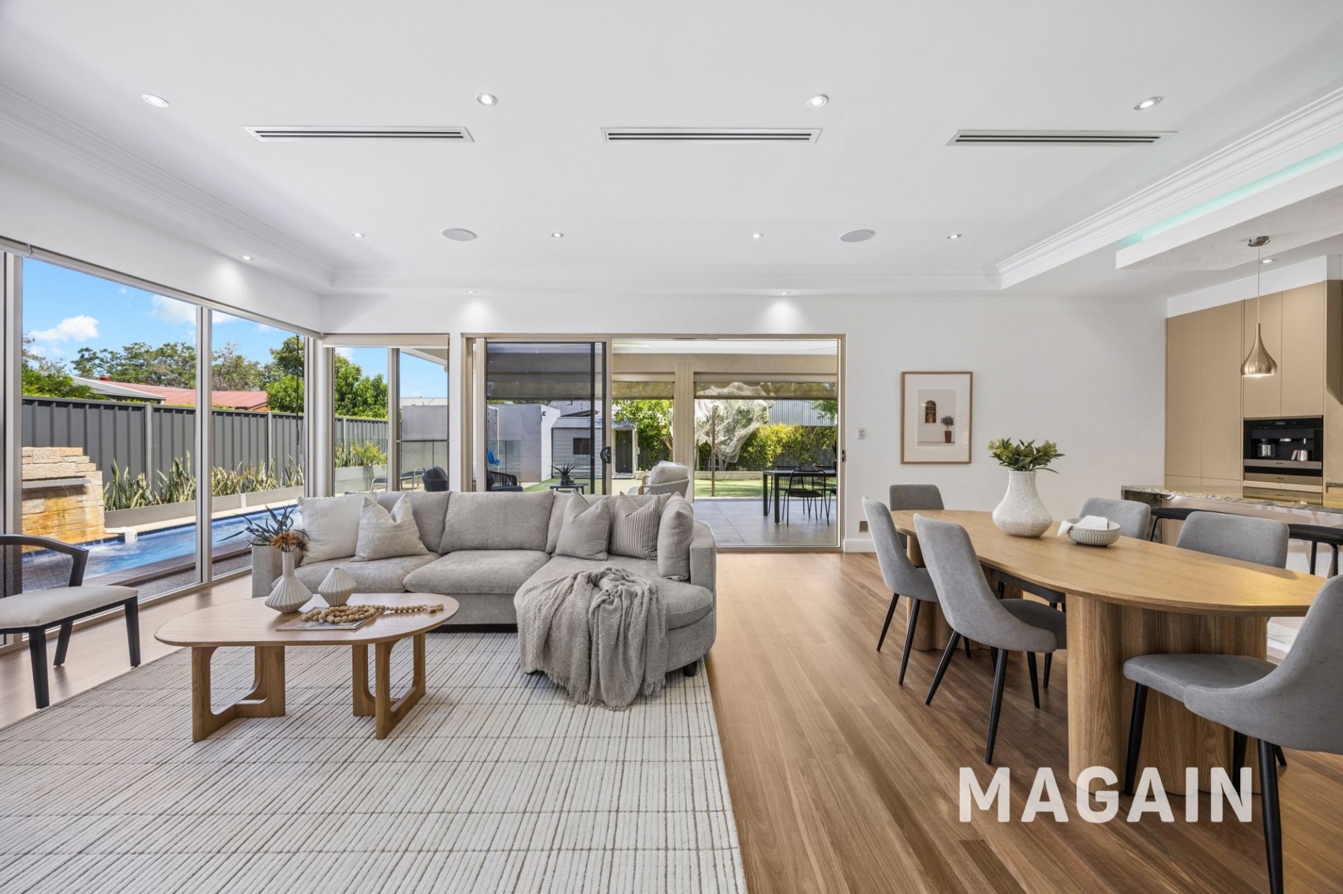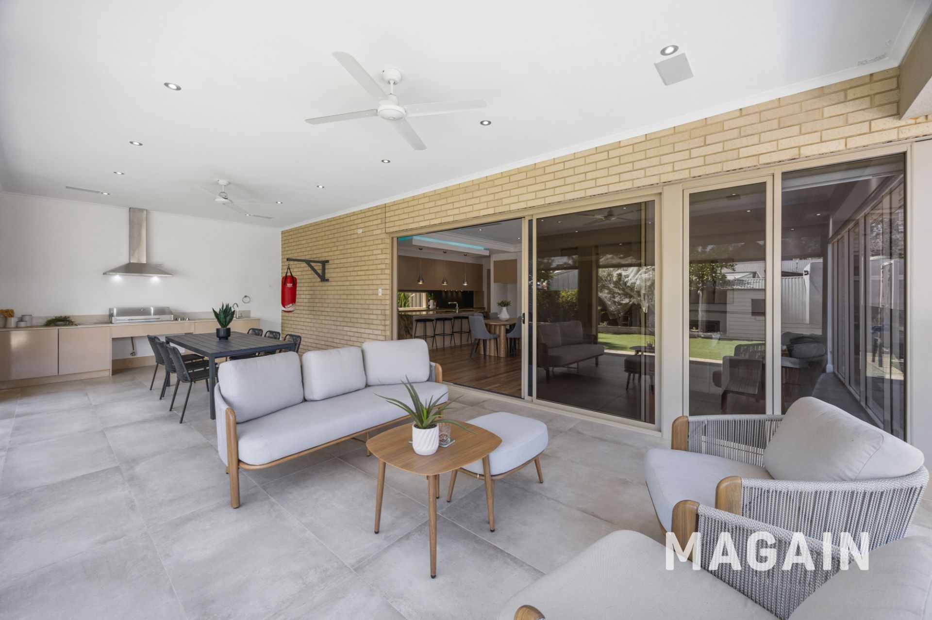 - Glass stacker doors creating seamless flow to outdoor entertaining