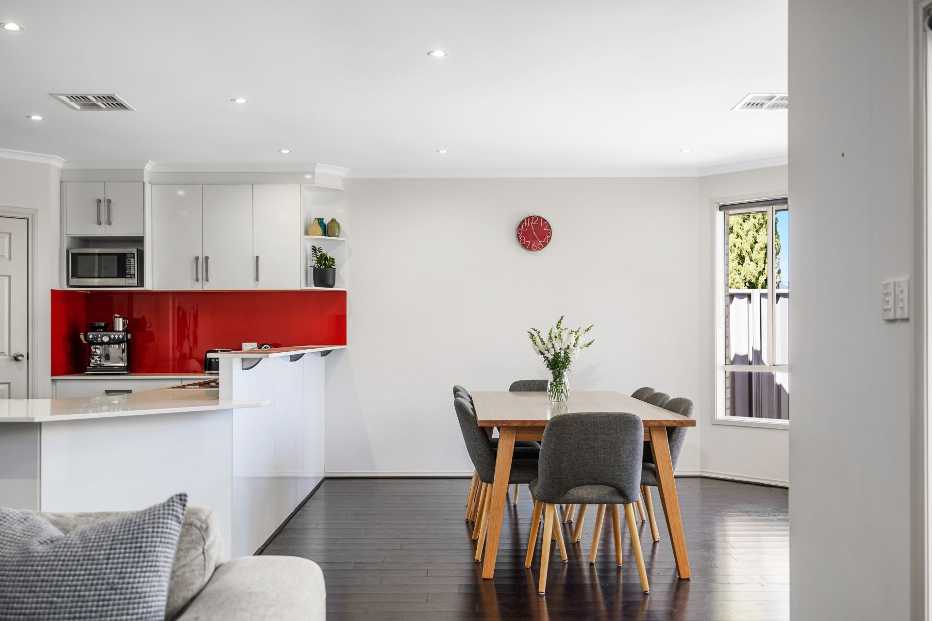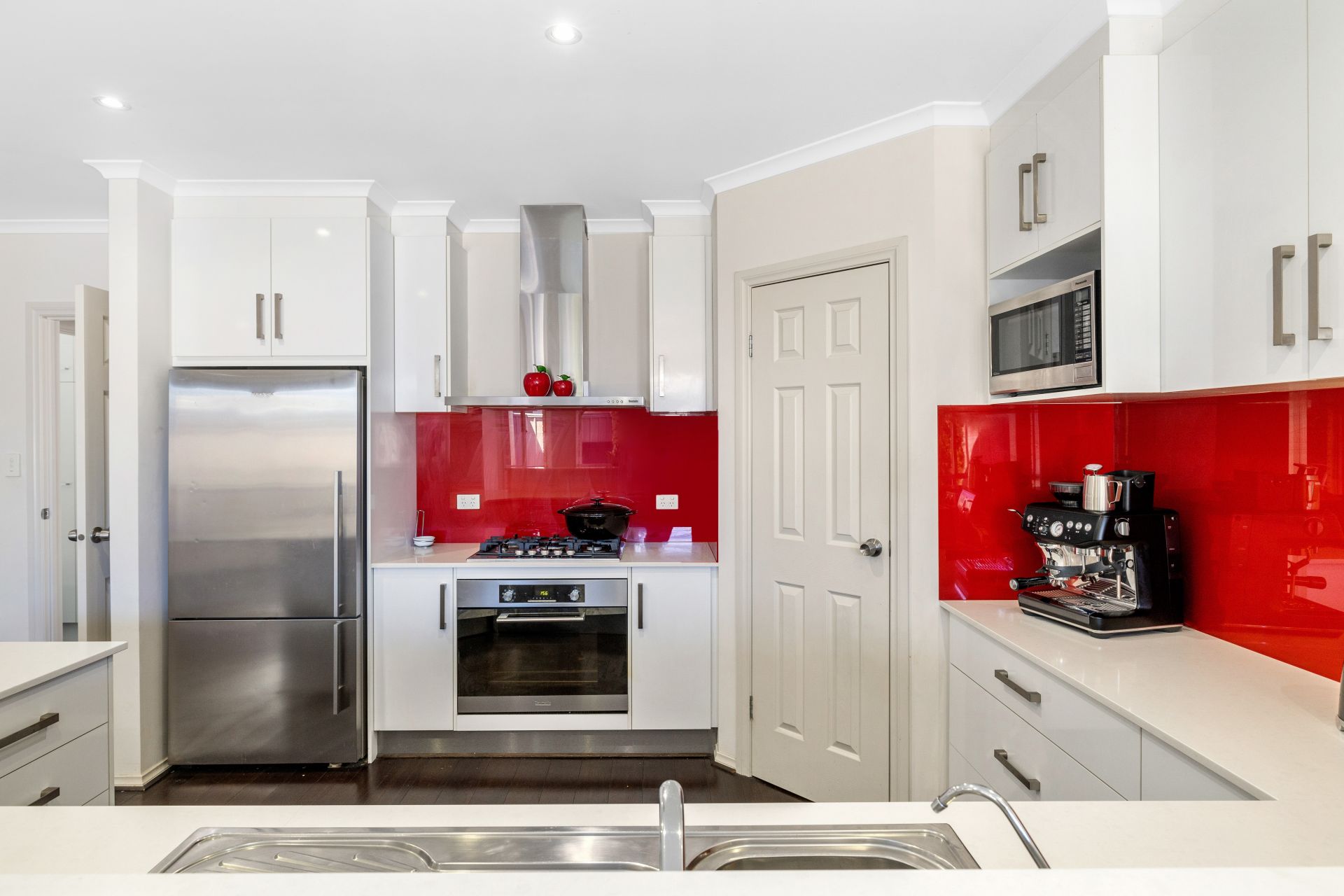 Upon entry you are welcomed by a lovely wide hallway laden with quality bamboo timber flooring, that flows past the home's three bedrooms, and down to the open plan kitchen, living, and meals. You will be in awe of the beautifully designed kitchen, featuring neutral-toned cabinetry, stone benchtops, a walk-in pantry, and quality appliances including a dishwasher, plus a handy breakfast bar connecting the kitchen to the living space and creating the perfect spot for entertaining family and friends, while allowing for maximum storage and preparation space.