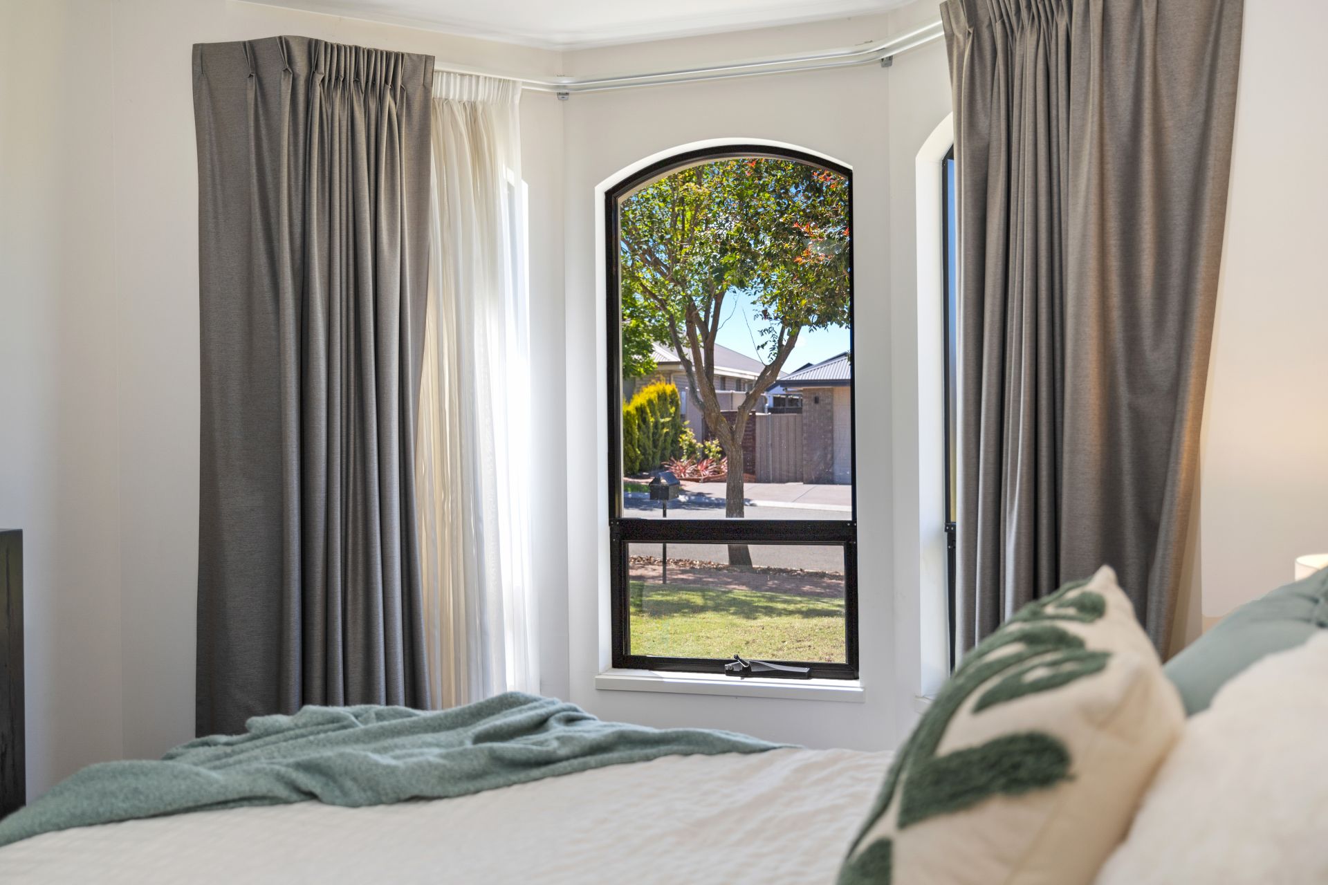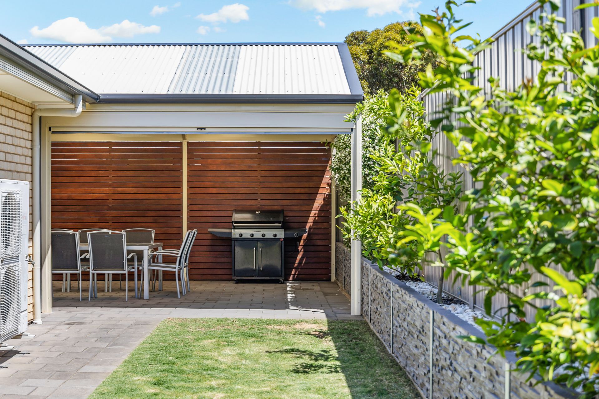 Glass sliding doors from the open plan living provide the perfect inside/outside transition to a spacious paved entertaining area, the pitched roof pergola and café blinds make sure it's a space that will be used throughout the seasons. There's also plenty of space on the great-sized lawn area with a surrounding established raised garden bed for the kids and pets to run around with fabulous privacy.