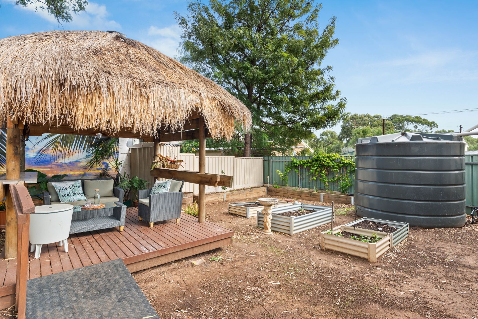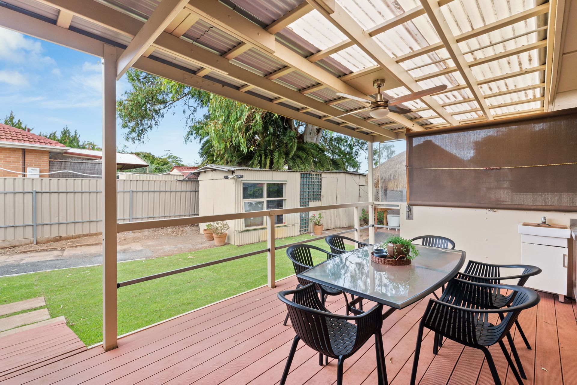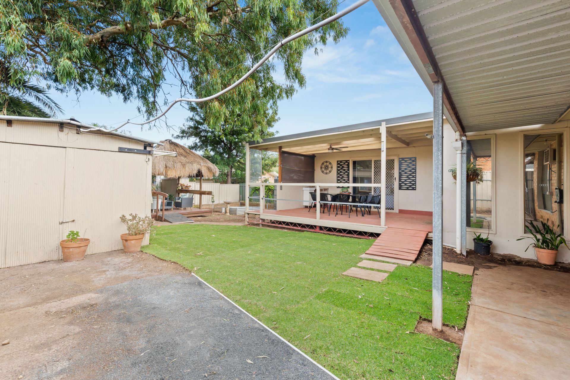 Glass sliding doors from the kitchen/dining provide a picturesque view and seamless access to the rear yard where you will find an entertainer's paradise featuring a large decked entertaining area covered by a skillion roof pergola, and a gorgeous Bali Hut, the perfect tranquil spot to relax while you watch the kids and pets play and explore in the great sized yard with spacious lawn area. Meanwhile, the handyman of the family will love the addition of an 8x3m garage/shed with drive-through access from the front carport.