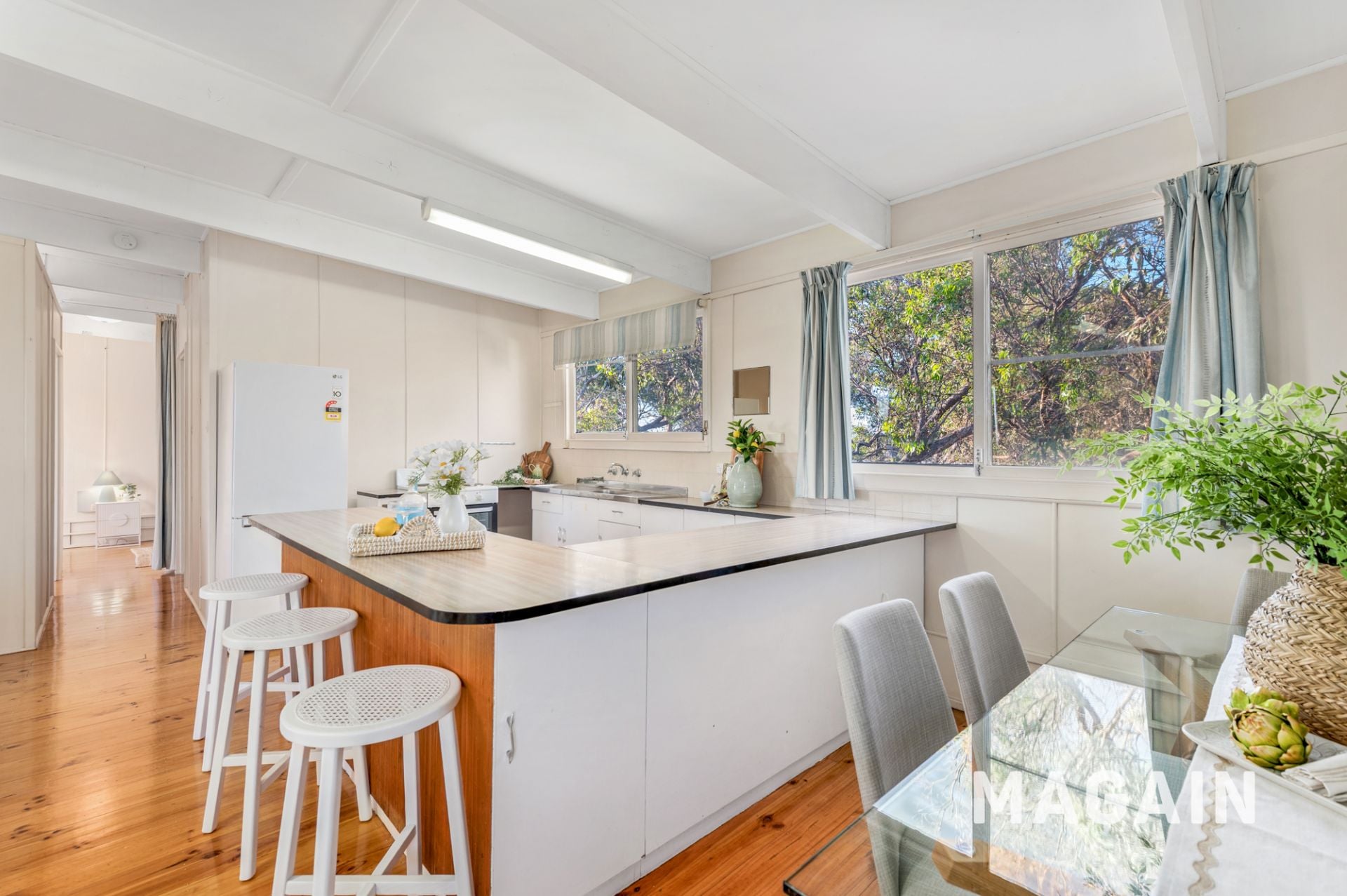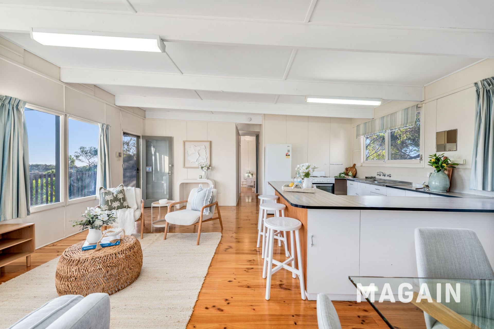 The home itself has a relaxed, beach-shack feel with a simple, comfortable layout. The lounge includes split system heating and cooling and opens out to the front balcony, the perfect spot to unwind and take in the ever-changing coastal outlook. The adjacent kitchen and dining area is light-filled and positioned to make the most of the view while staying connected to the living space.