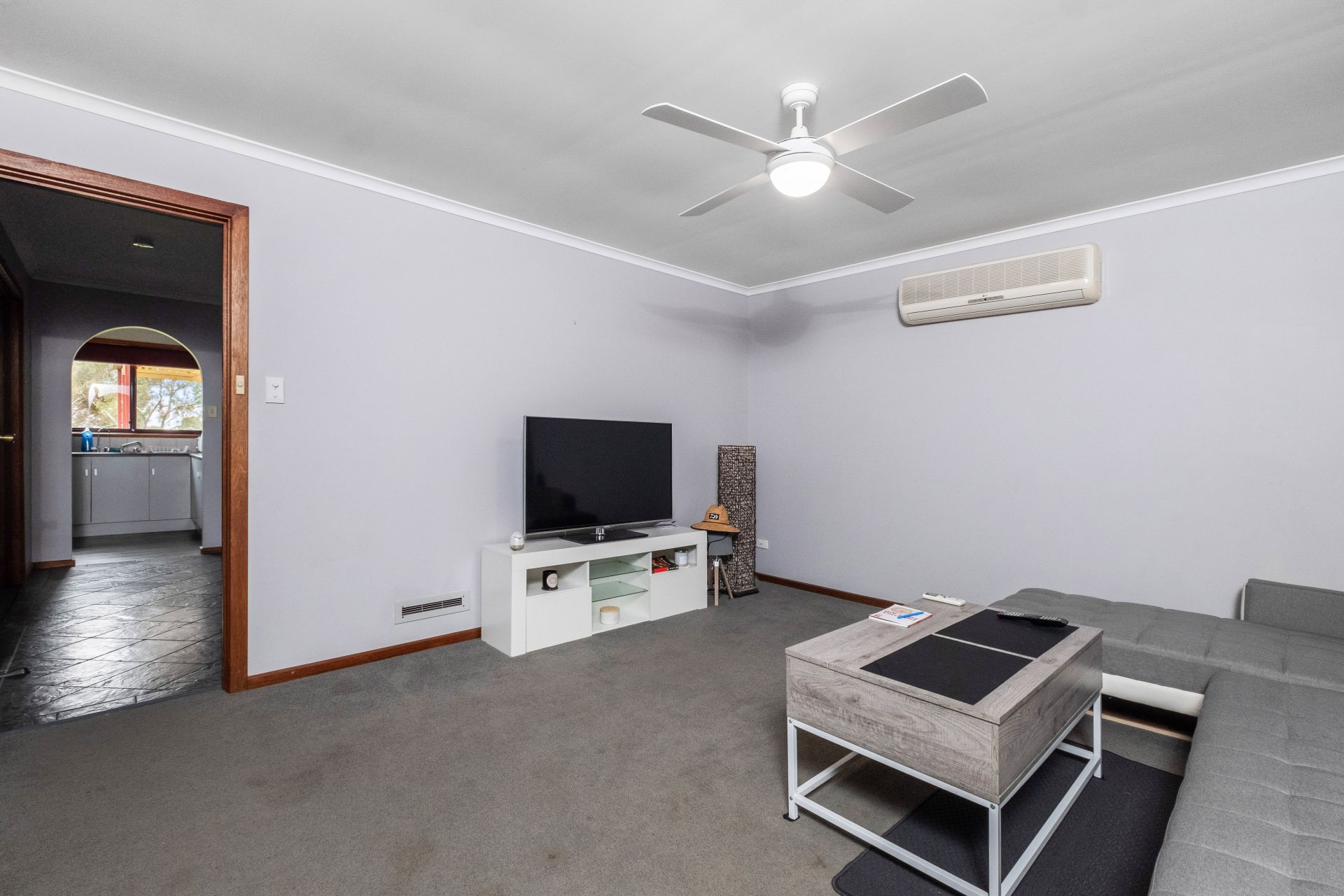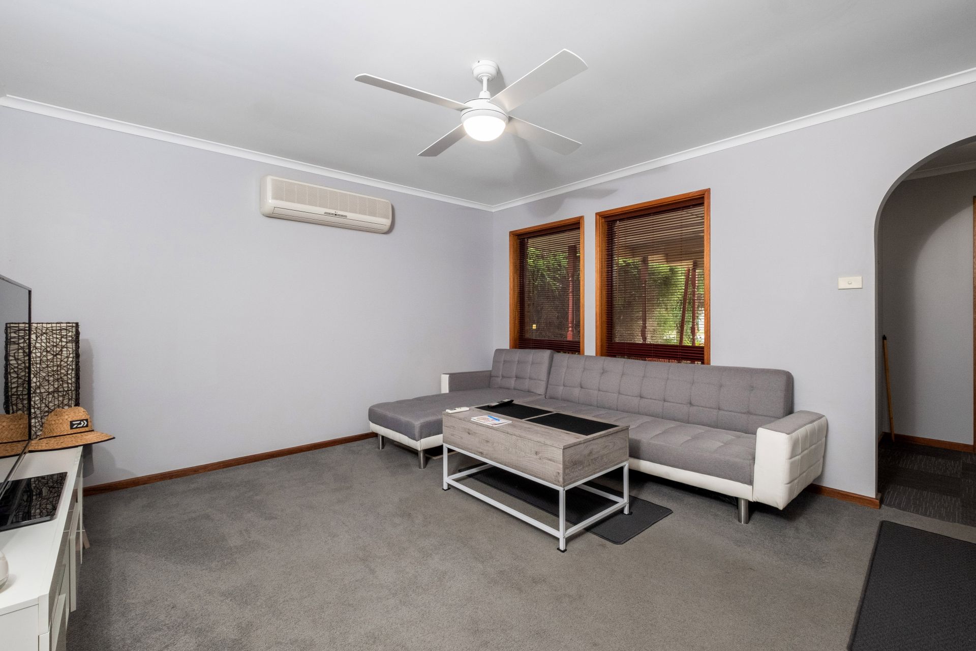 > large lounge with with ceiling fan, gas heating vented from the adjacent family room and split system reverse cycle air conditioner