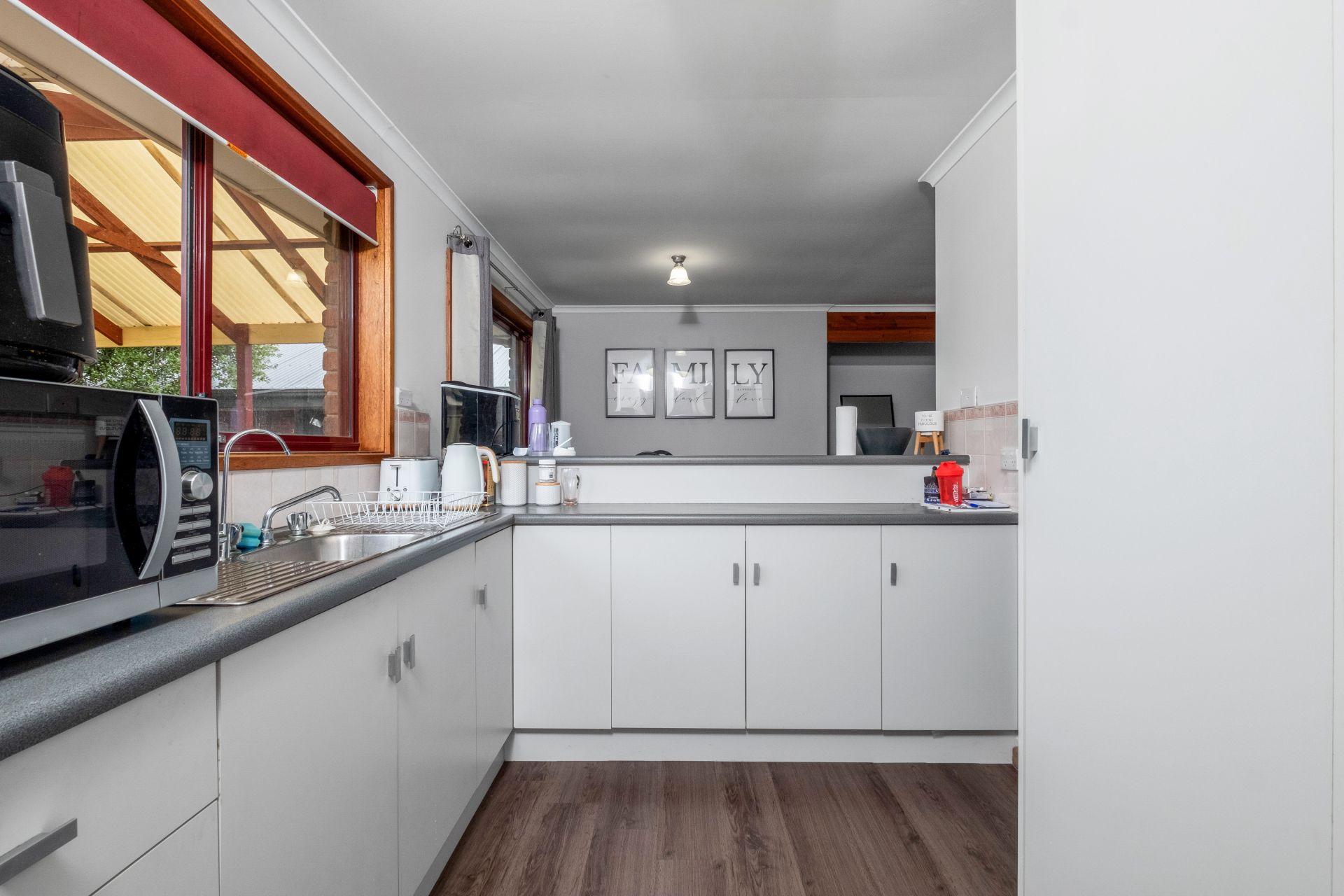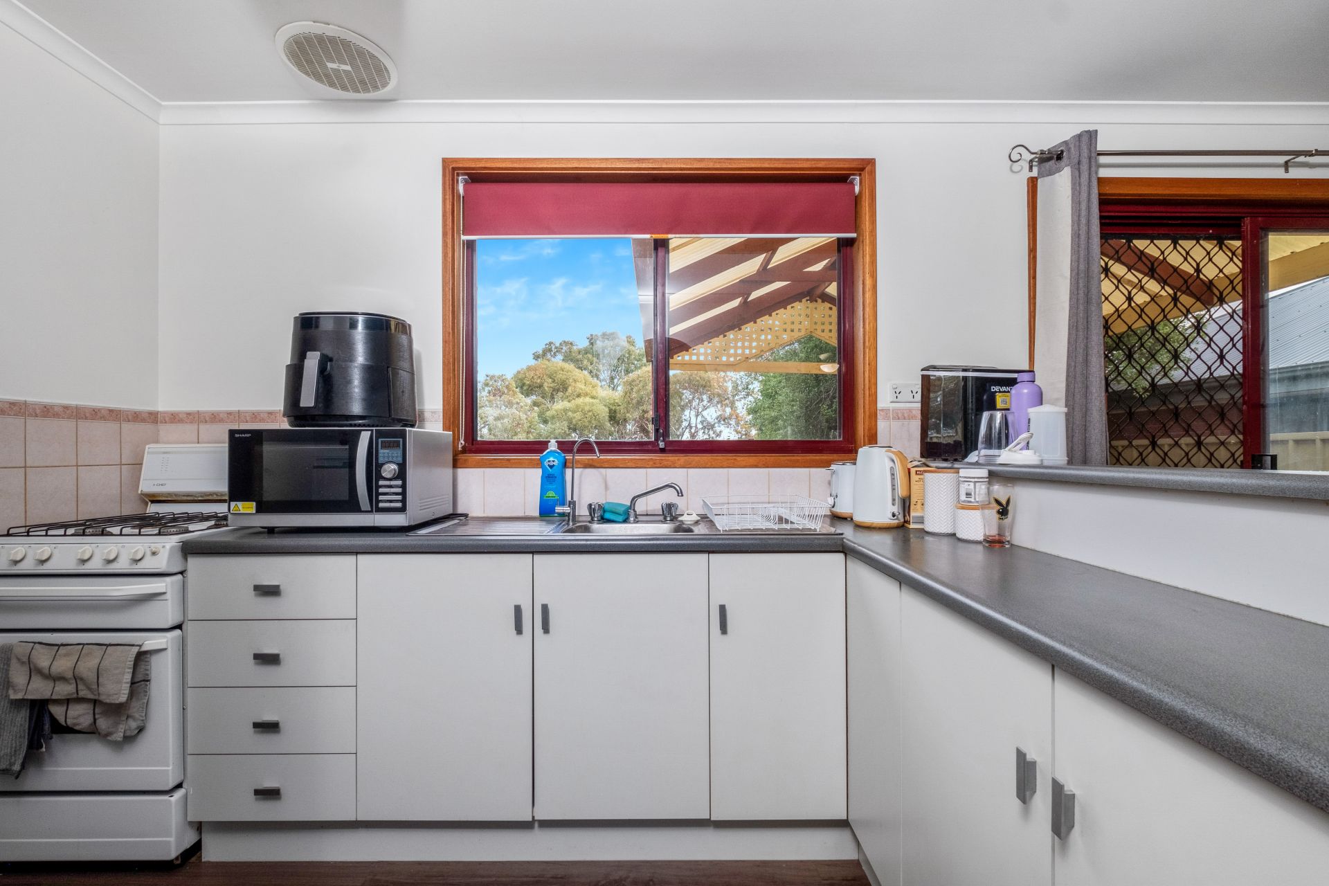 > good sized kitchen with a gas stove, reasonable amount of storage and a view of the backyard