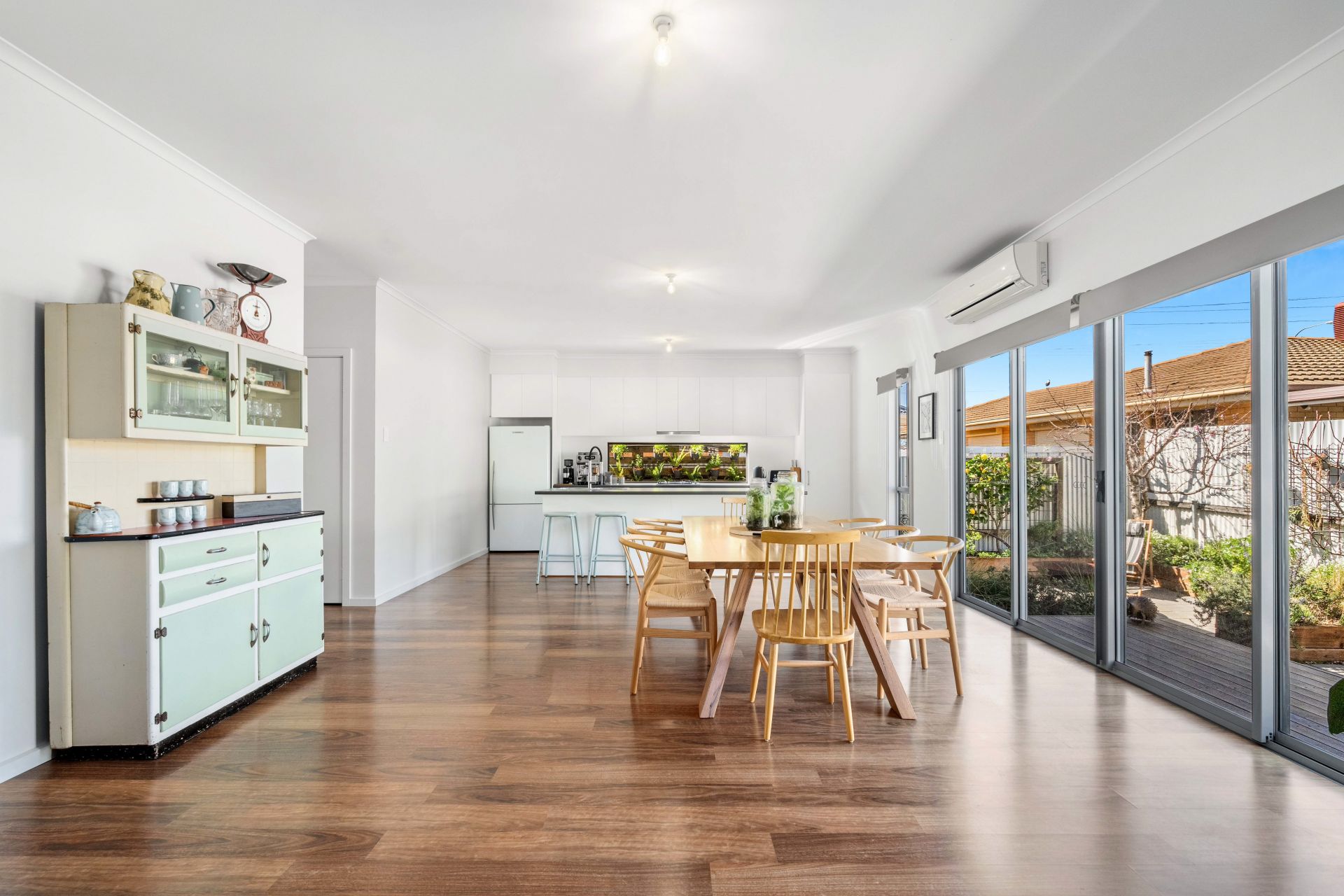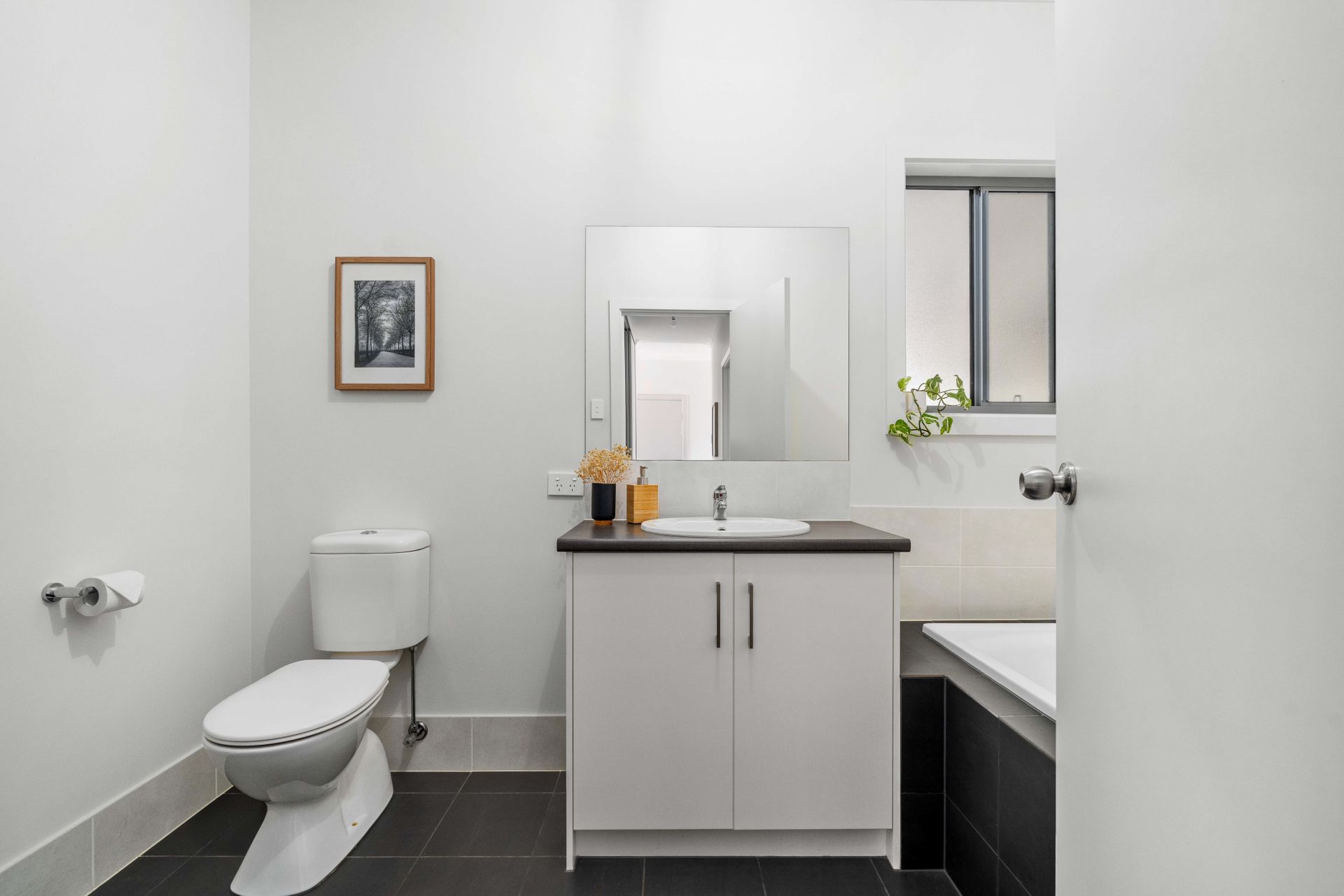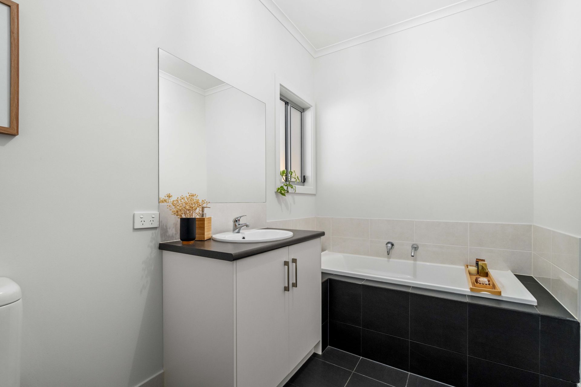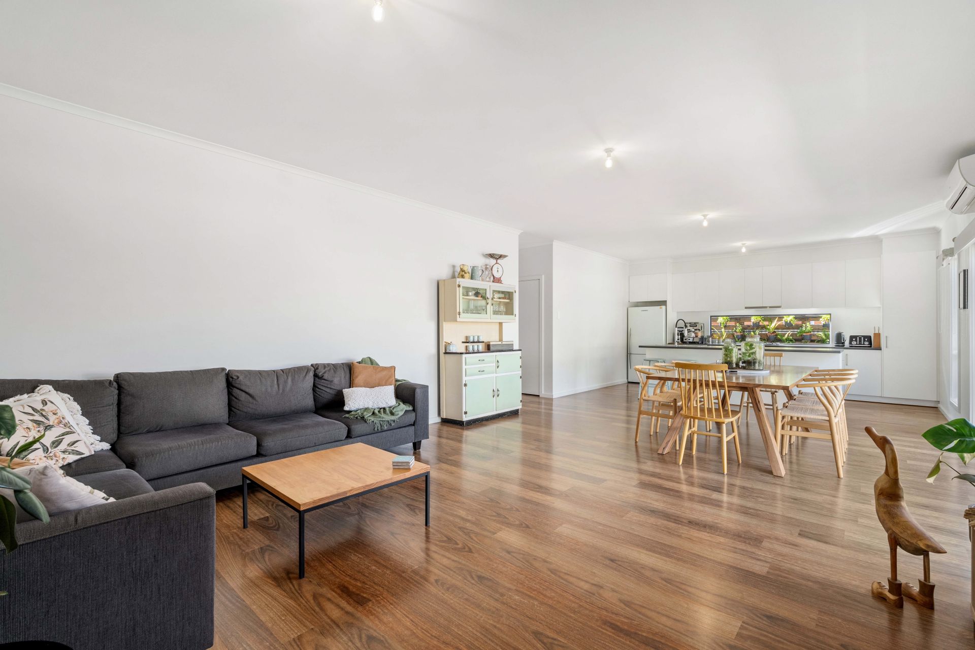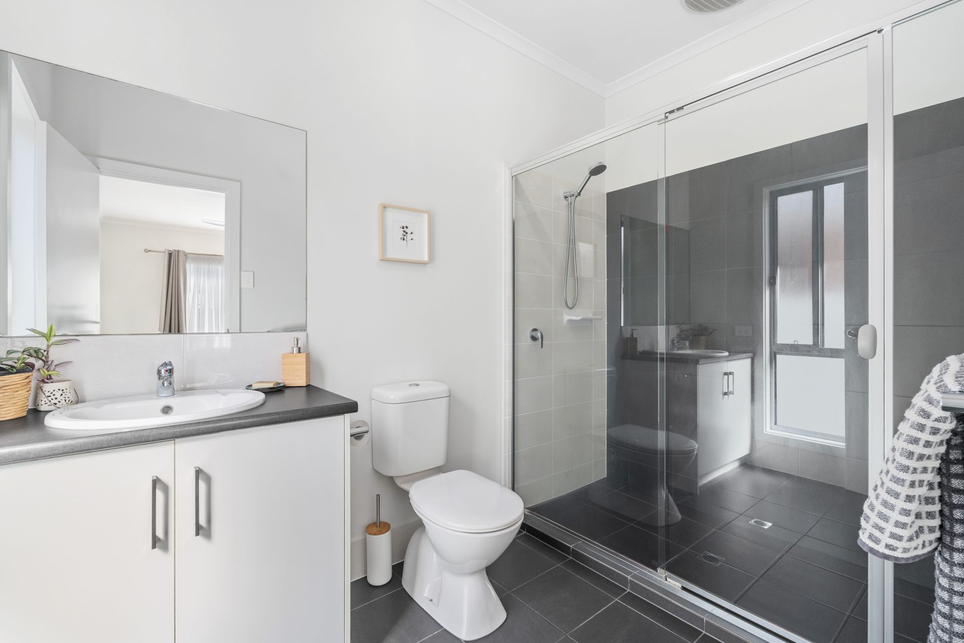 Arriving at the property you'll be greeted by a neat and tidy façade, low-maintenance manicured gardens and a large front porch with gorgeous timber decking. Step into this stunning property and head down the hallway into the open plan living area that provides the whole family with exceptional comfort and space. The neat presentation is elevated with bright finishes and illuminated by abundant natural light throughout the day, creating a truly pleasant living environment. This free-flowing floor plan features three bedrooms that cascade across the home, including the master bedroom, located off the hallway, which offers a built-in robe and a beautiful ensuite bathroom. The two additional bedrooms are nestled adjacent to each other alongside the well-equipped family bathroom with a bath, toilet and glass-enclosed shower. The open plan kitchen, dining area and living zone is sure to be the centre of everyday living, it connects seamlessly to the outside through the glass sliding doors. The kitchen boasts ample bench space including the island bench with breakfast bar seating and plenty of cupboard storage plus a pantry with pull-out drawers. A suite of modern stainless-steel appliances includes a gas cook top, electric oven, dishwasher and rangehood that make cooking a delightful experience. Located off the hallway is the European laundry area with a sink and plenty of storage. Additional features include a split system air conditioner in the living area, a ceiling fan in the main bedroom, a large linen cupboard, 2.7 metre ceilings throughout, easy care floating floors in the high traffic areas and carpet in all the bedrooms.
