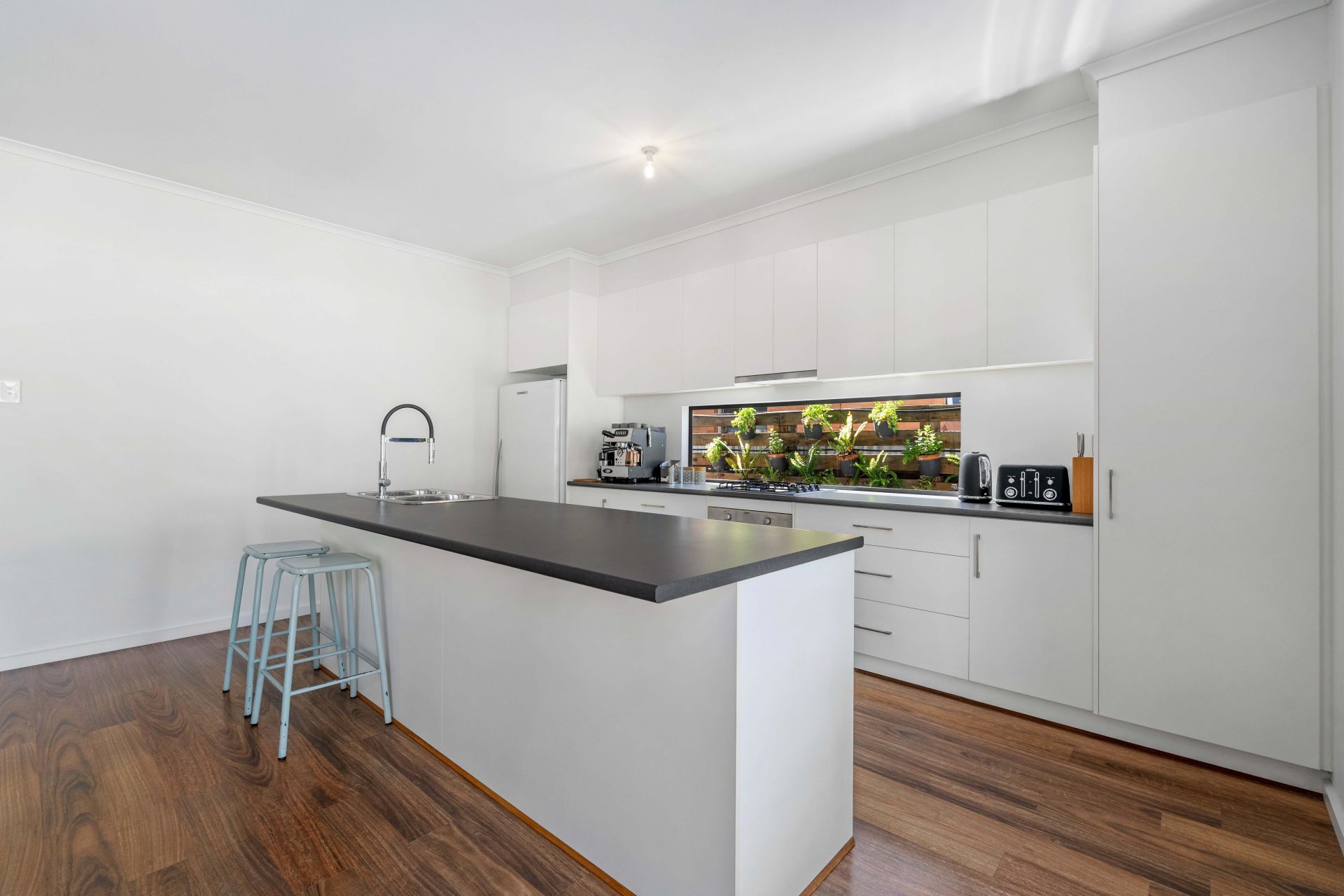Outside, the same low-maintenance design extends into the backyard, a timber decked area steps down into a paved courtyard where you can sit back and relax with loved ones plus full fencing ensures added privacy and security. Several raised garden beds with established plants plus there's several fruit trees including Orange, Lemon, Loquat, Apricot, Apple and Peach for the whole family to enjoy.