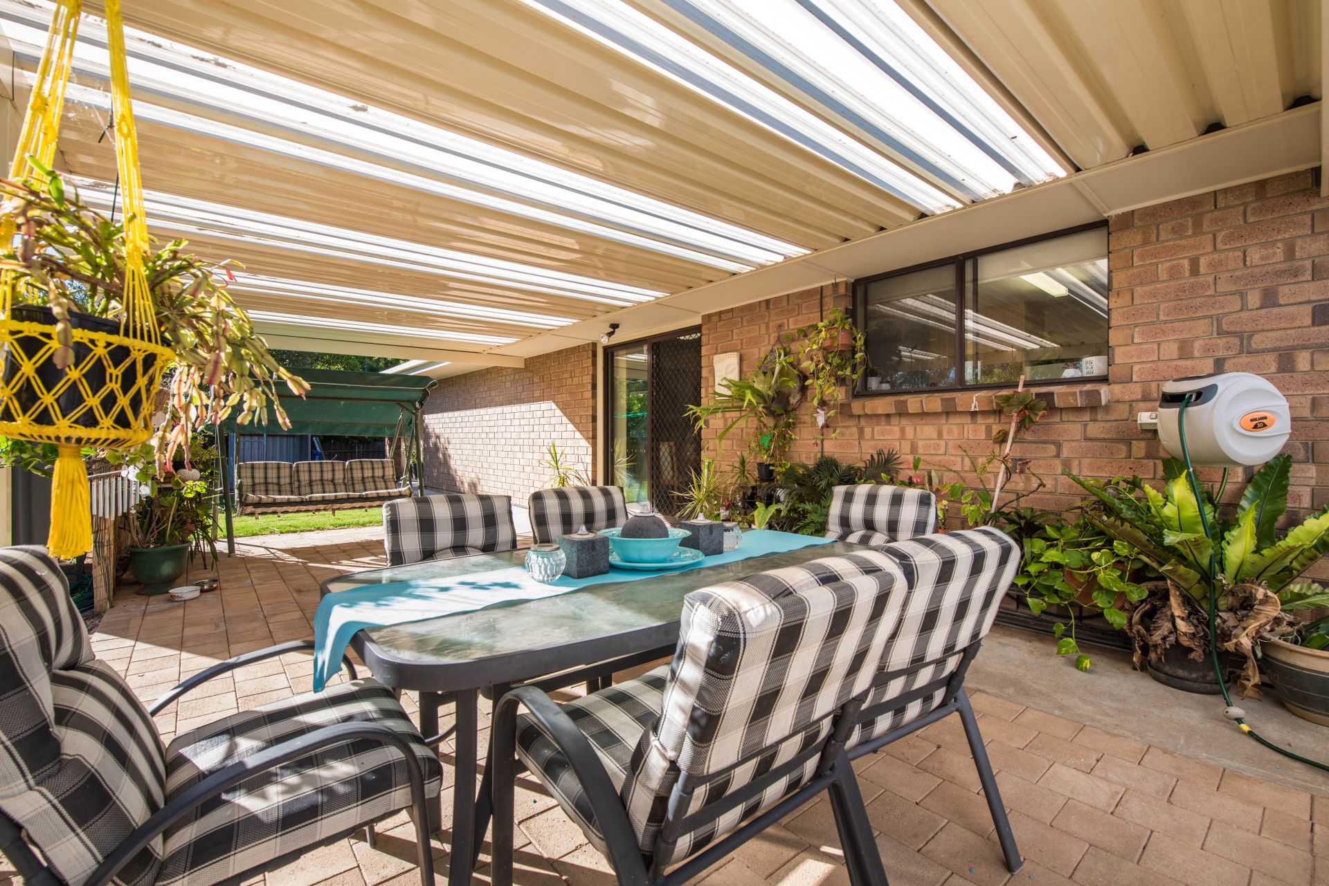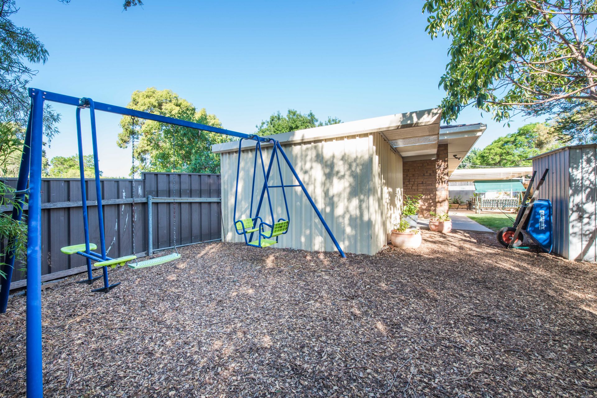 Outside is a dream backyard for a child to explore and grow! With an abundance of space and many versatile areas the kids will be amused for hours! You'll find a grassed area for the kids to run and have picnics on, a bark chipped area for play equipment and the trampoline and an aviary fit for the family pet such as birds, guinea pigs or rabbits. The parents are also catered for with a large undercover pergola for entertaining with family and friends. As well as drive through access from the garage and a sizeable shed to house the tools and toys.
