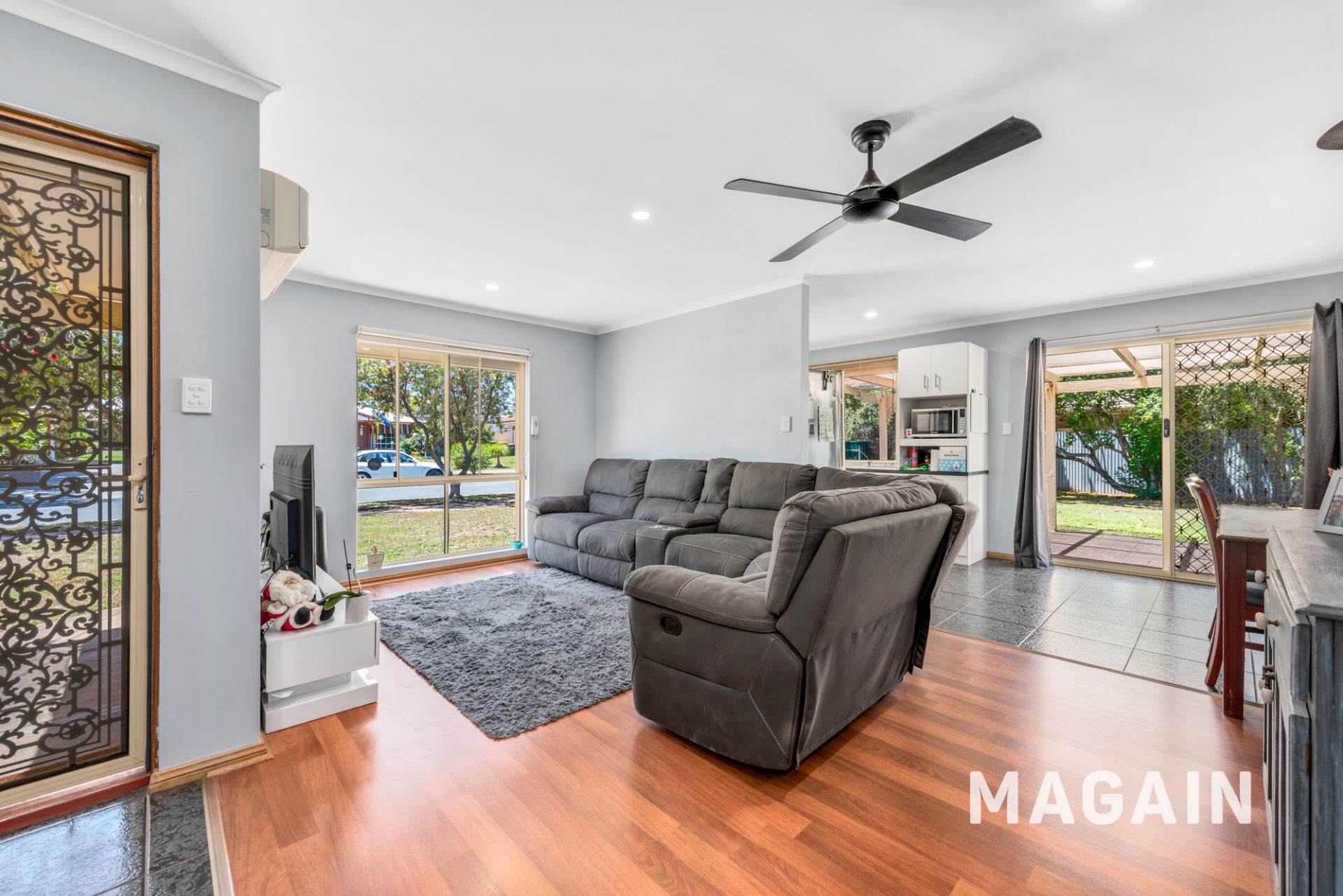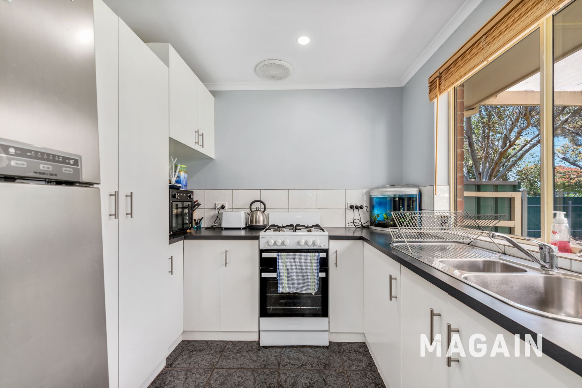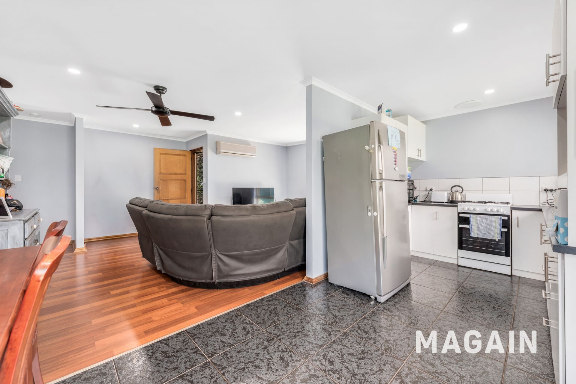 Inside the home offers three bedrooms, with bedrooms 1 and 3 fitted with built-in robes for convenient storage and the main bedroom finished with a split system for all year round comfort. The bathroom services the home with ease, positioned close to all bedrooms. The main living area connects seamlessly to the dining space and kitchen, providing a practical layout for day-to-day living. The kitchen is well maintained, equipped with ample bench and cupboard space, and positioned to overlook the dining area and direct access to the outdoor entertaining area, making it simple to move between indoor and outdoor spaces when hosting or enjoying family time.