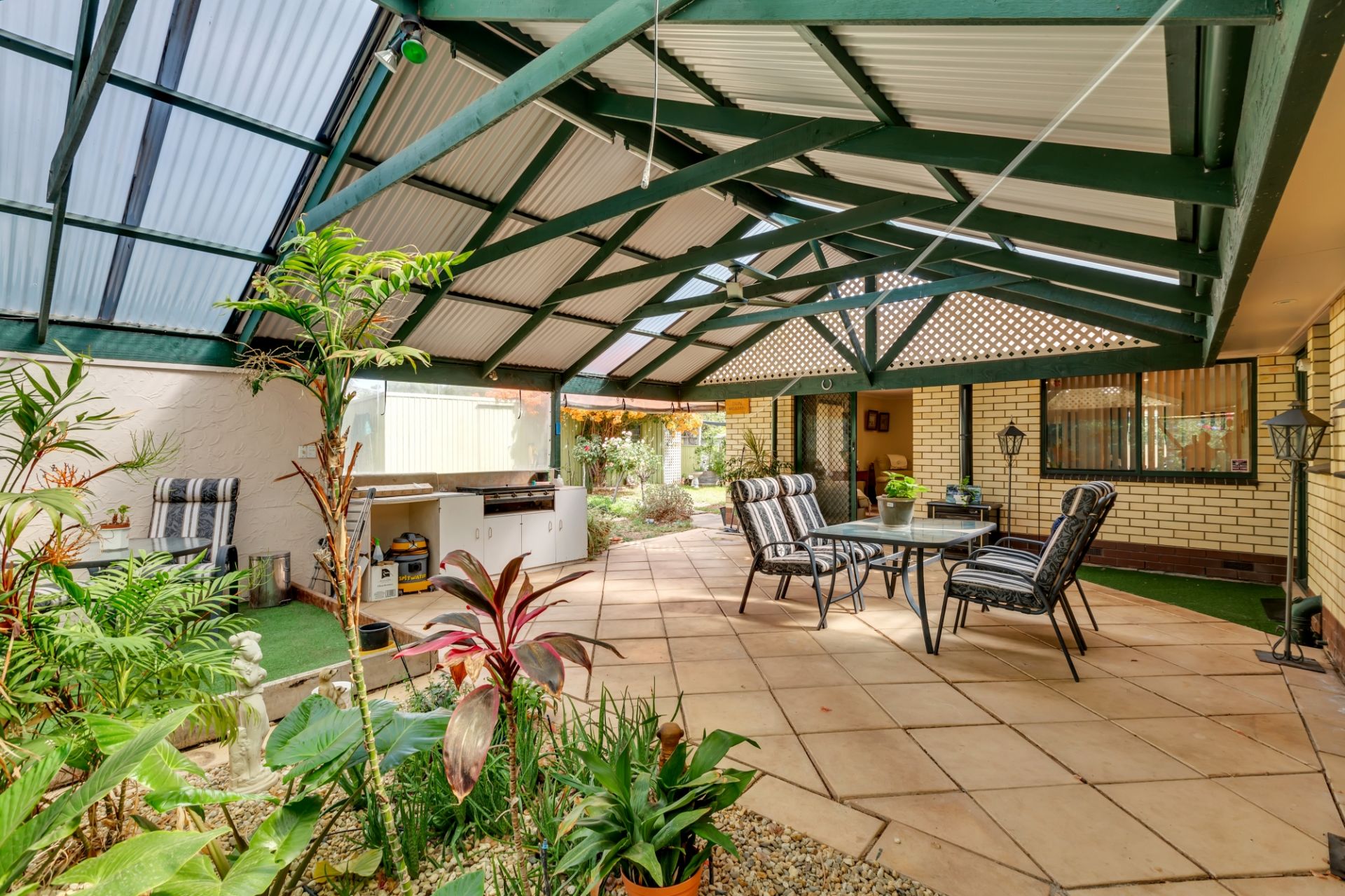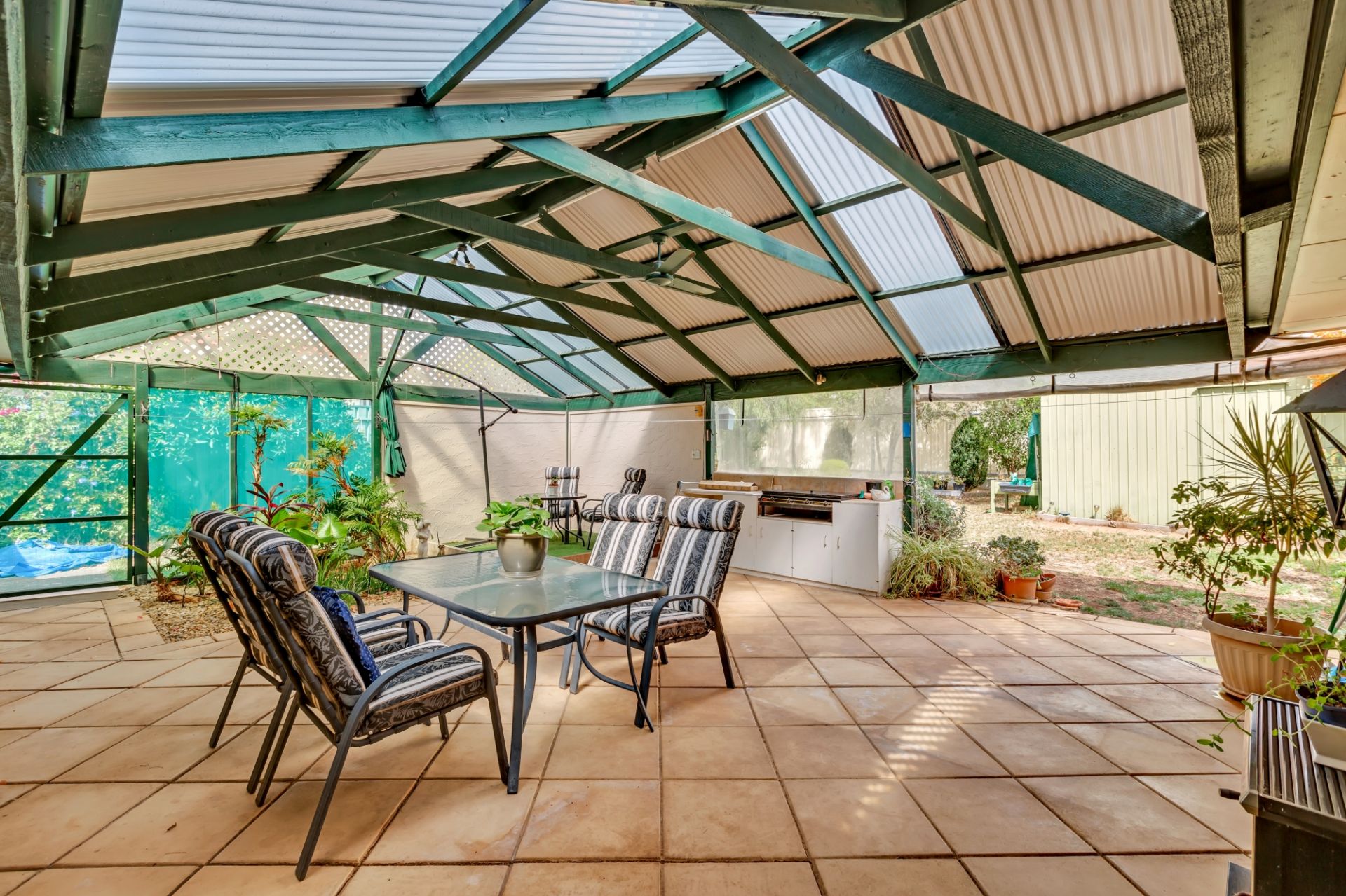 Moving outside there is a nice amount of lawn for the kids or pets to play and two sheds for storage; the larger one is ideal as a workshop. There is also a great outdoor entertainment area which can be used year-round with an overhead fan to keep you cool in summer and a wood heater so it's cozy in the winter. The handy secure carport is located at the side of the house and has an electric roller door.