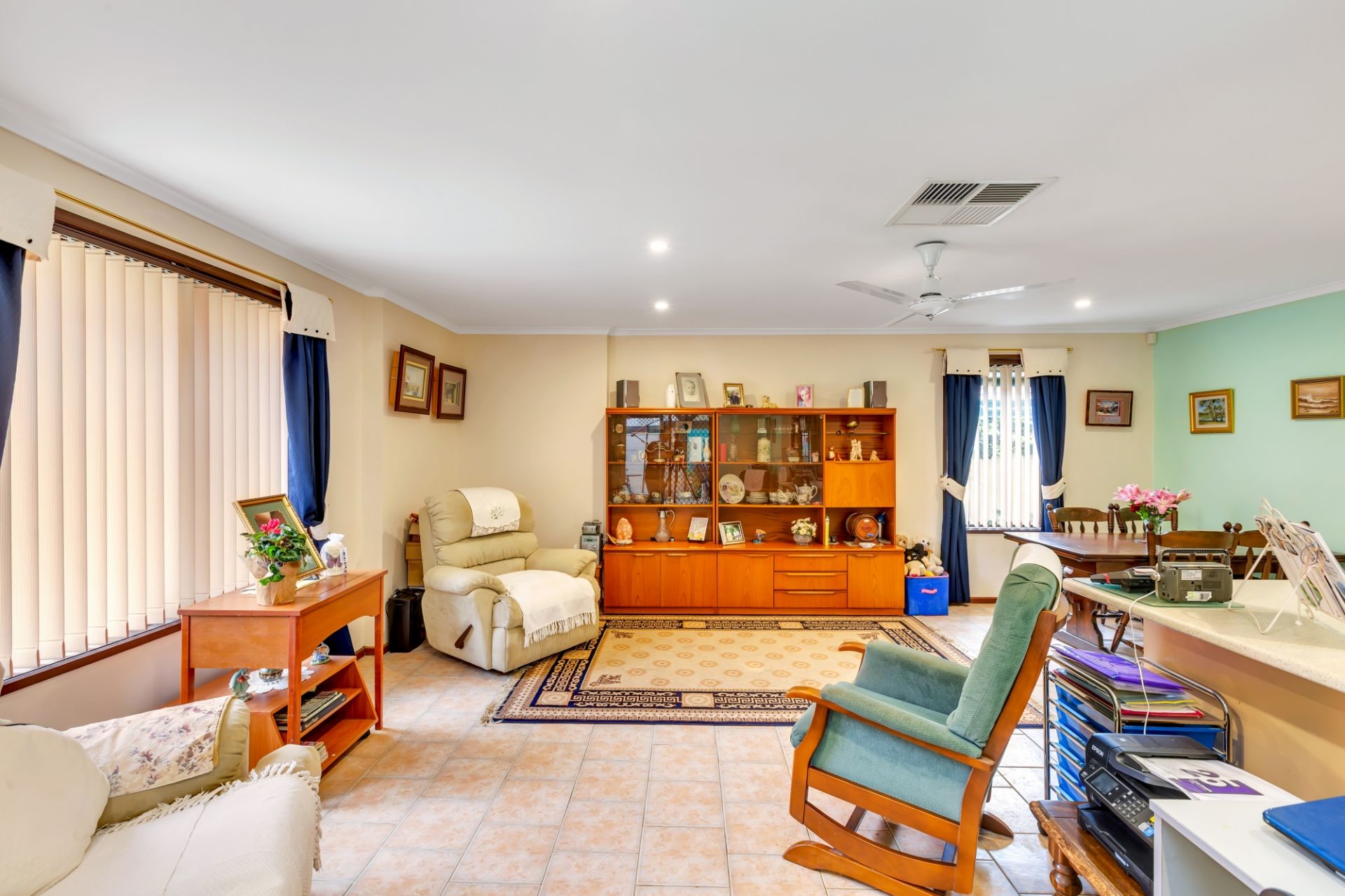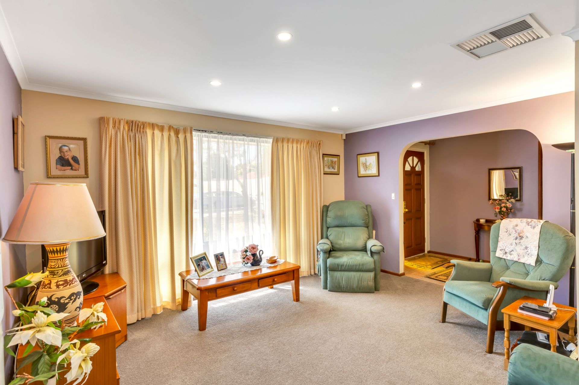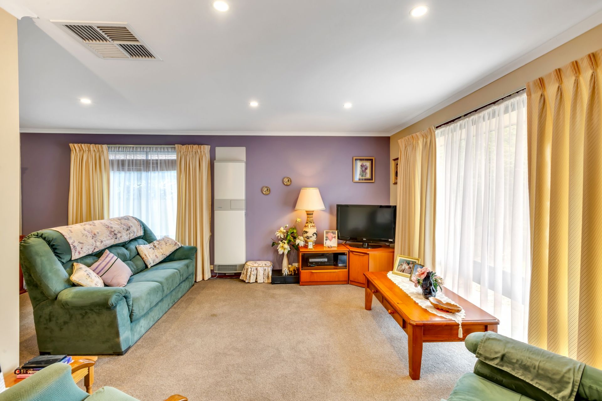 The living areas are spacious with neutral toned tiles throughout and a separate lounge. Each bedroom has freshly installed carpets, built in wardrobes and overhead ceiling fans. For added functionality there is an additional toilet in the laundry area. The house is serviced with ducted cooling and a new gas heater for year-round temperature control. For added safety there's a security alarm system.