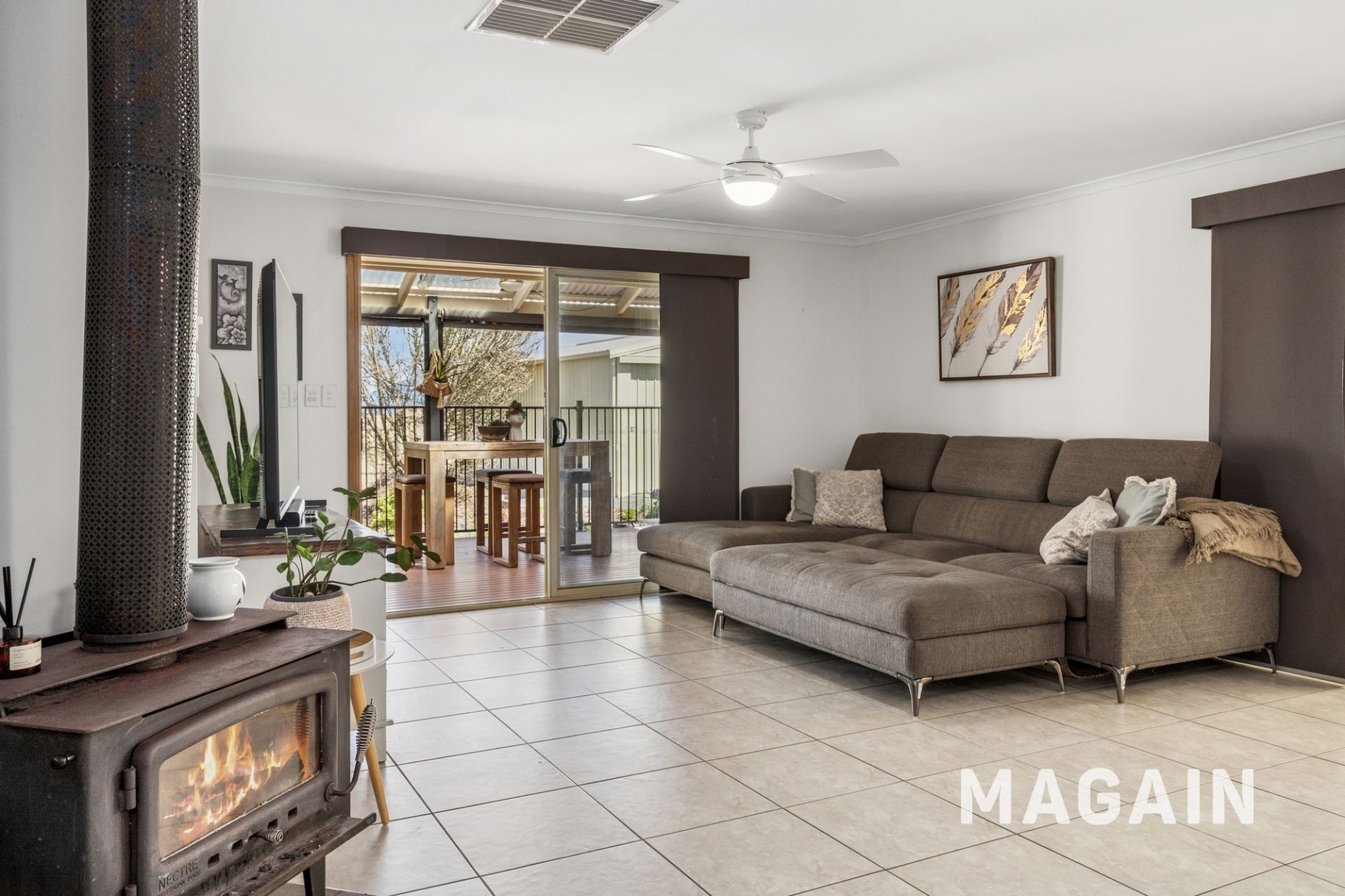 The main bedroom is privately positioned and features a ceiling fan, walk in robe, and ensuite for added comfort. Bedrooms two, three, and four are all fitted with ceiling fans, with bedroom two also offering its own walk in robe – ideal as a second main bedroom. These rooms are serviced by a central bathroom with a separate vanity and toilet, making busy mornings a breeze for families.