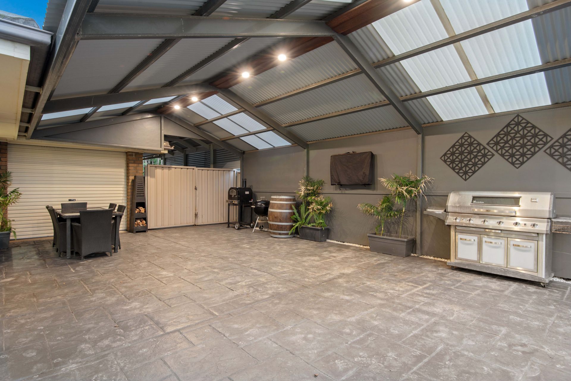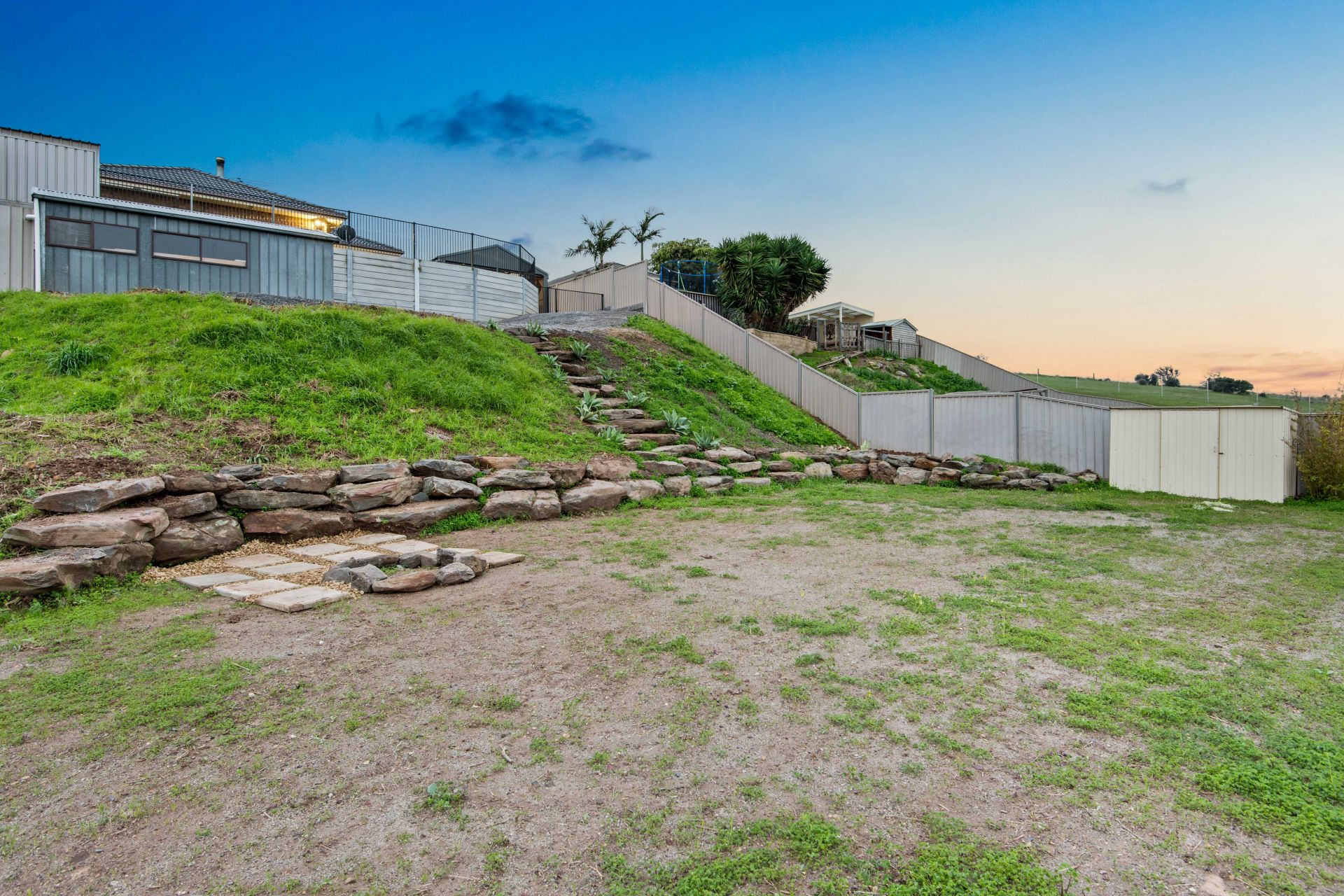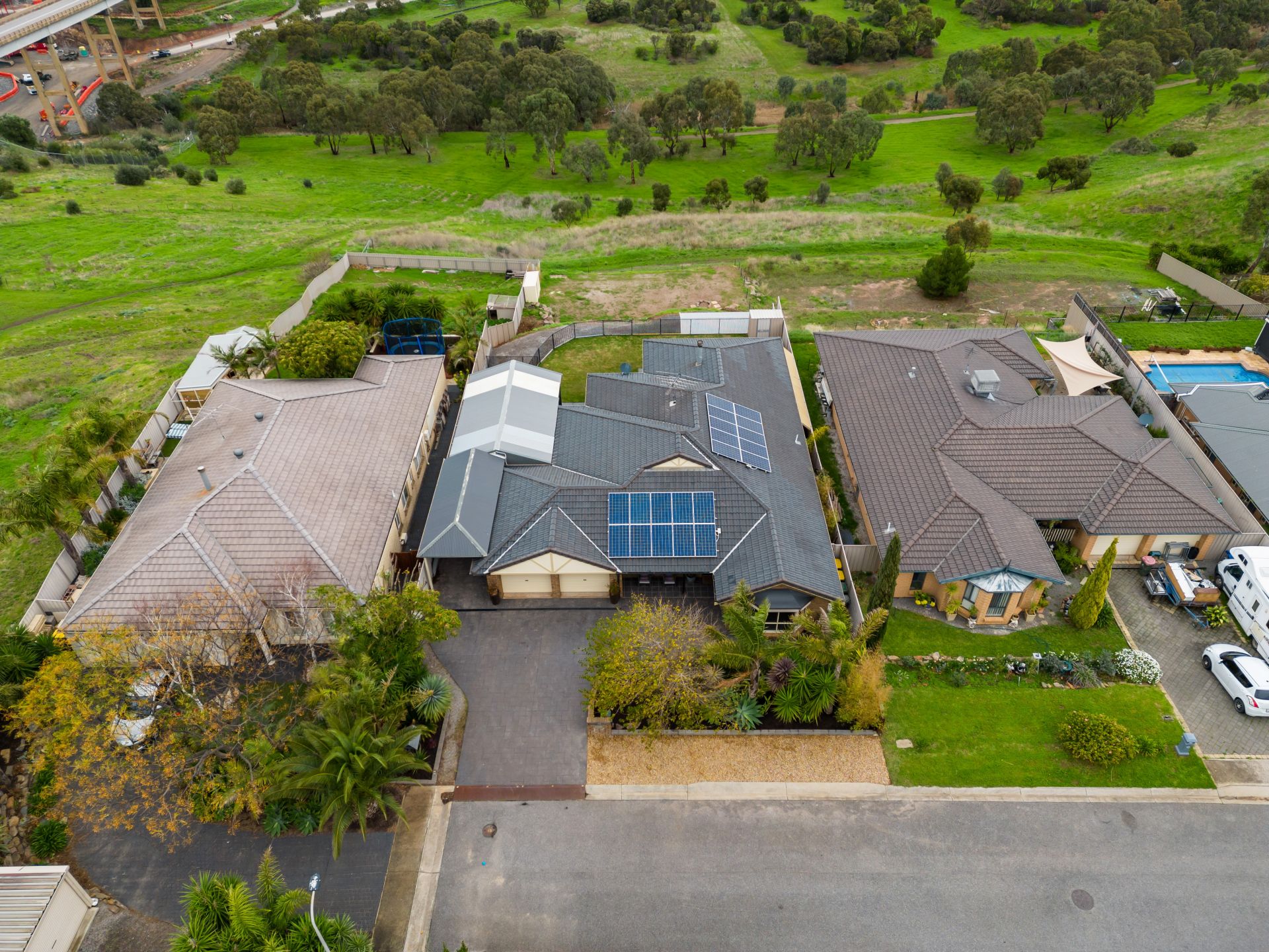 Set on a huge allotment of around 1239m² the backyard has been tiered into three levels and offers plenty of space for the whole family, privacy and fantastic views. Whether you love entertaining friends, enjoy hosting dinner parties' alfresco style or celebrating special moments with the family, you can do it with confidence under the massive pitched roof pergola. This entertaining space overlooks the beautifully manicured lawn area, perfect for the kids and pets to roam, while the outlook over Pedlar Creek to the rolling hills will provide the ideal backdrop for your next get-together. Accessed through gates, a driveway leads down to a garage/storage shed with a paved floor, this is a great place to keep your belongings/valuables secure. The lower level is pretty much a blank canvas and could be where you build a veggie patch and grow your own produce. Plenty of off-street parking is available here, the double garage offers automatic roller doors on the front, manual roller door at the back with drive through access plus you have internal access to the home. There is another carport to the side of the garage and heaps of room in the driveway for additional vehicles.