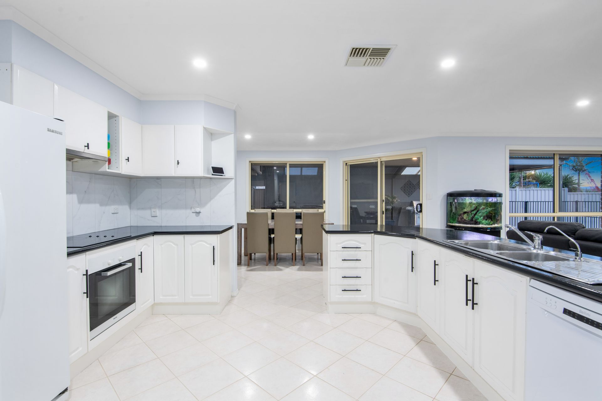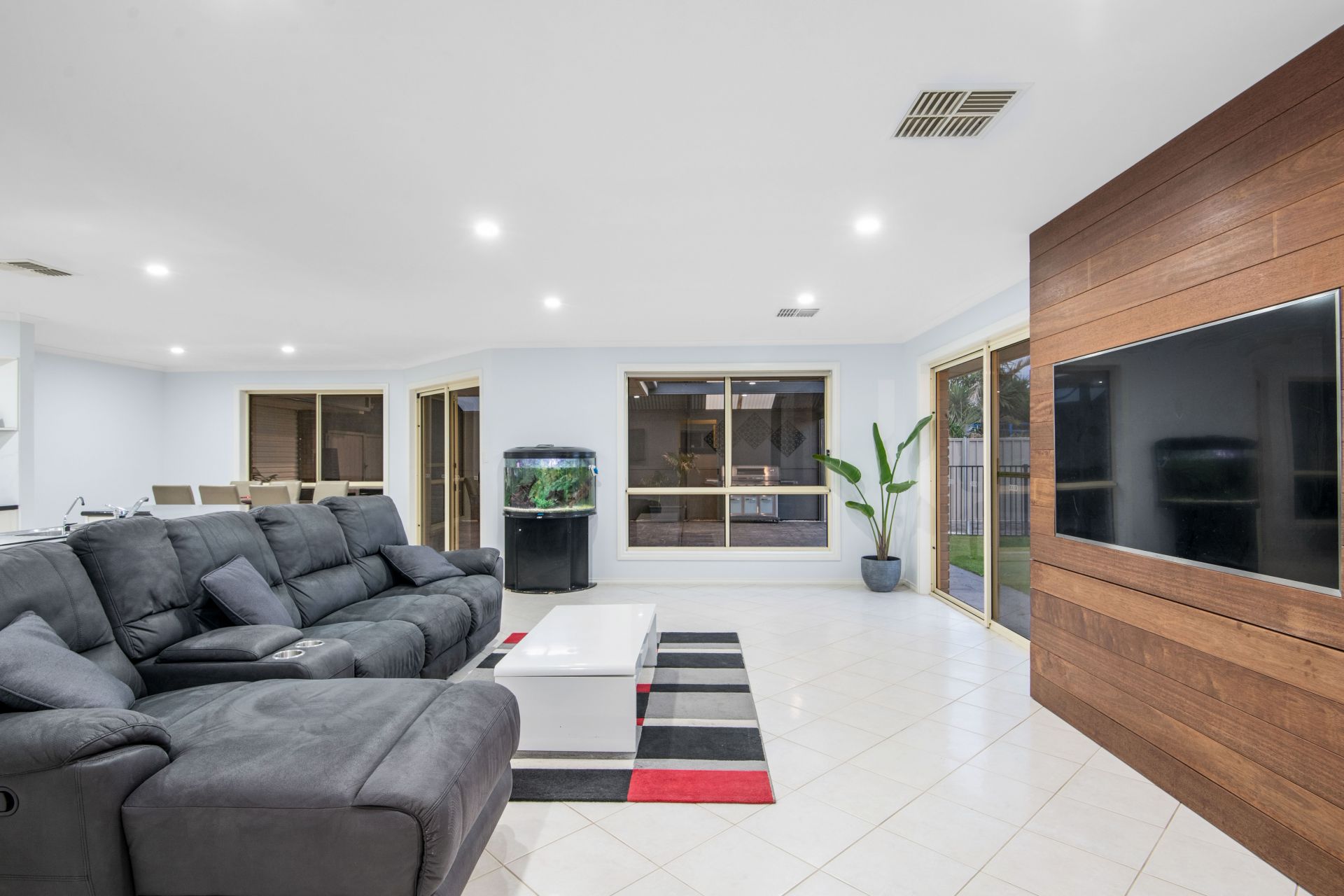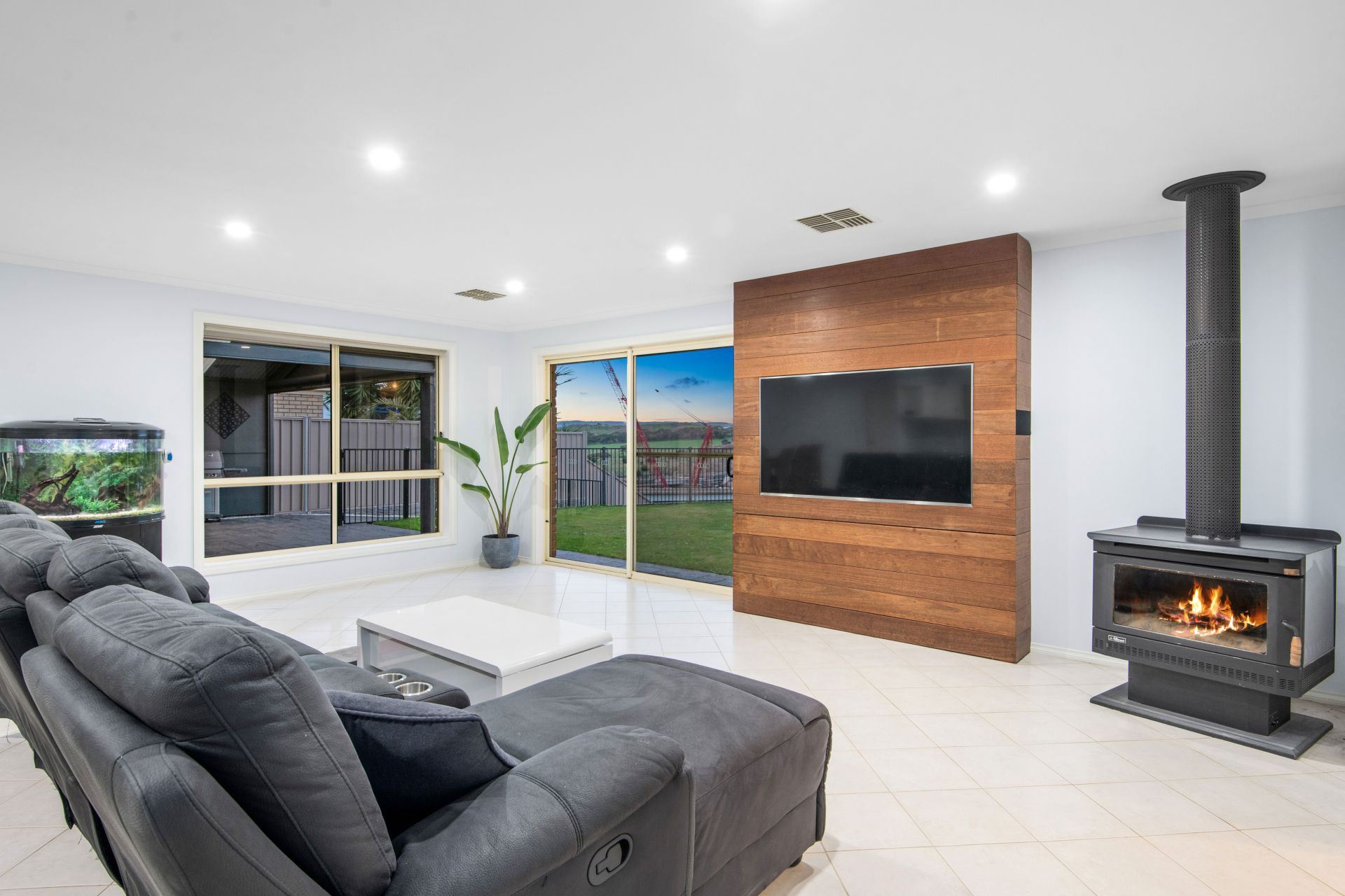 The heart of the home is the expansive open plan kitchen, dining and living area, complete with easy-care tiled floors and plenty of windows to allow the natural light to fill this space. The kitchen is a home chef's dream, boasting modern appliances including an electric oven & cooktop, a brand-new dishwasher, plus plenty of storage with the walk-in pantry, lots of bench space, and a large island with a double sink and a pura tap. Share laughter and meals in the adjacent dining area, perfect for hosting intimate gatherings or lively dinner parties with loved ones. The huge living area is highlighted with a beautiful 'feature' timber tv cabinet that can house your electrical equipment (DVD player, Foxtel etc), this space is warmed by a combustion heater and offers sliding door access to the outdoor entertaining area that allows for effortless indoor/outdoor living. The long list of additional features includes a ducted vacuum system, brand new ducted reverse cycle air conditioning throughout, solar panels (a 5kW system approximately) that will keep the bills to a minimum, freshly painted throughout and NBN has been connected to the home.