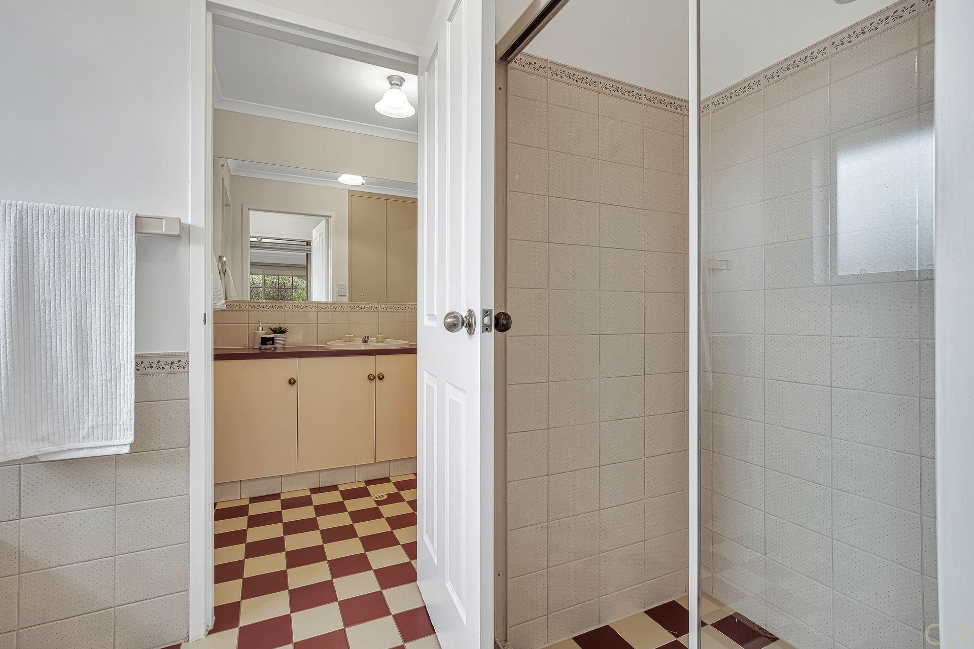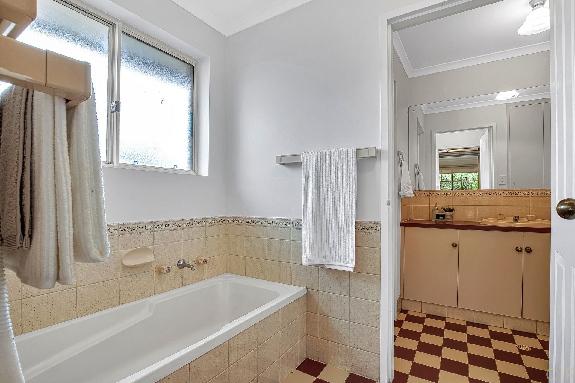 Offering three good sized bedrooms, the master bedroom also includes a built-in robe and walk through access to a two-way bathroom, whith a separate shower and bath.