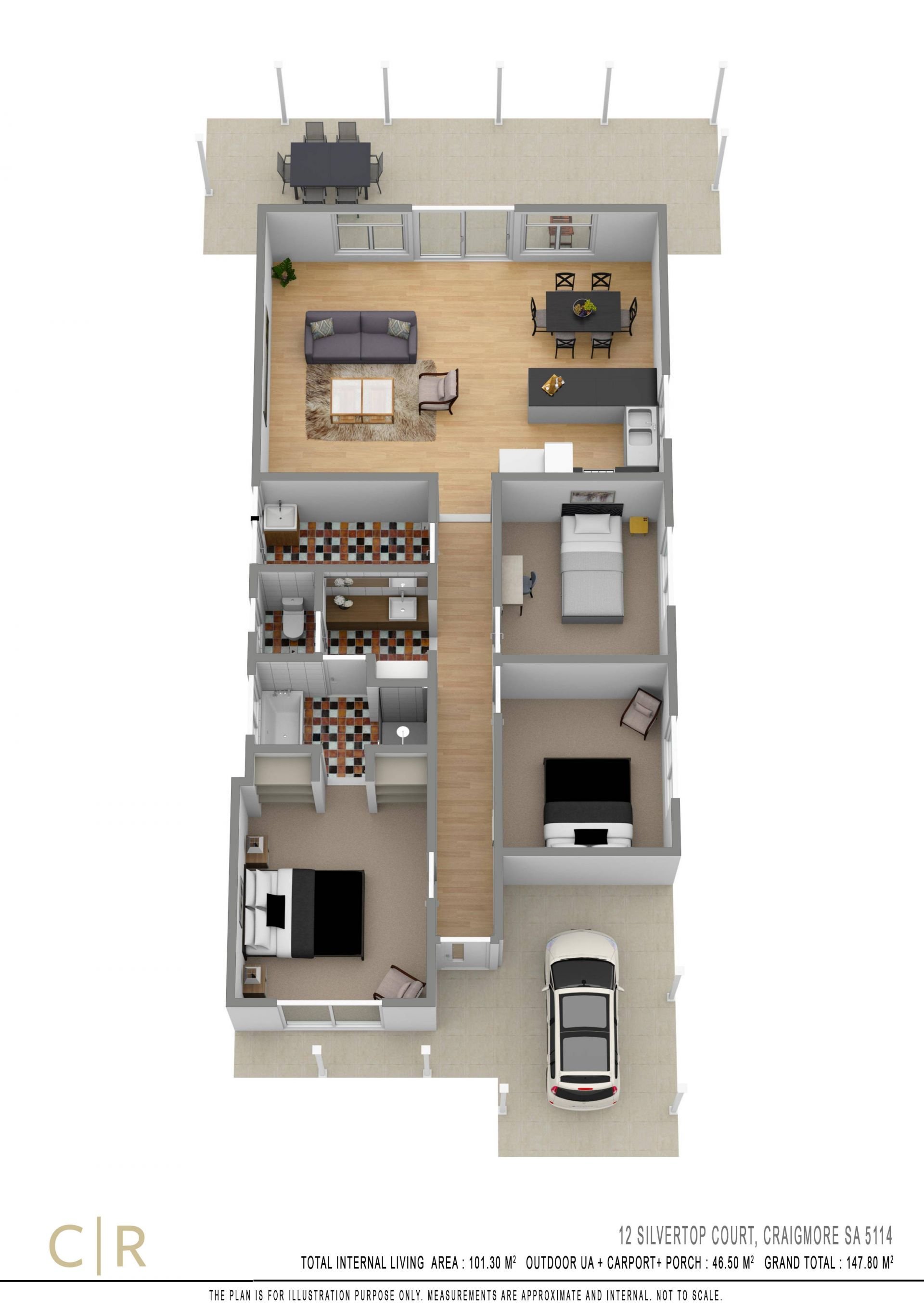 A single carport is located at the front, providing easy access to the home through the front door. There is also an off street parking bay located in the front garden area.