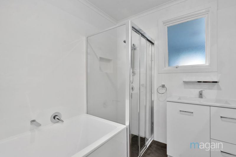 • The master bedroom includes walk-through robe with built in cabinetry and a large ensuite with floor to ceiling tiling including shower, toilet and vanity