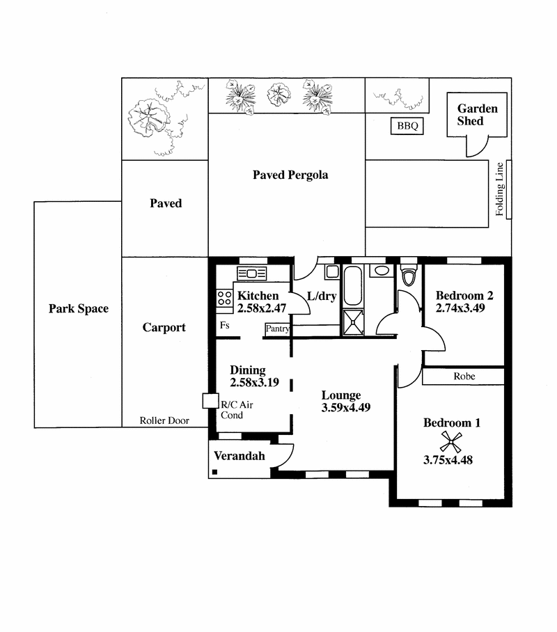 Outside is a delight - large private rear lawned area and tool shed plus an undercover paved entertaining area and garden.