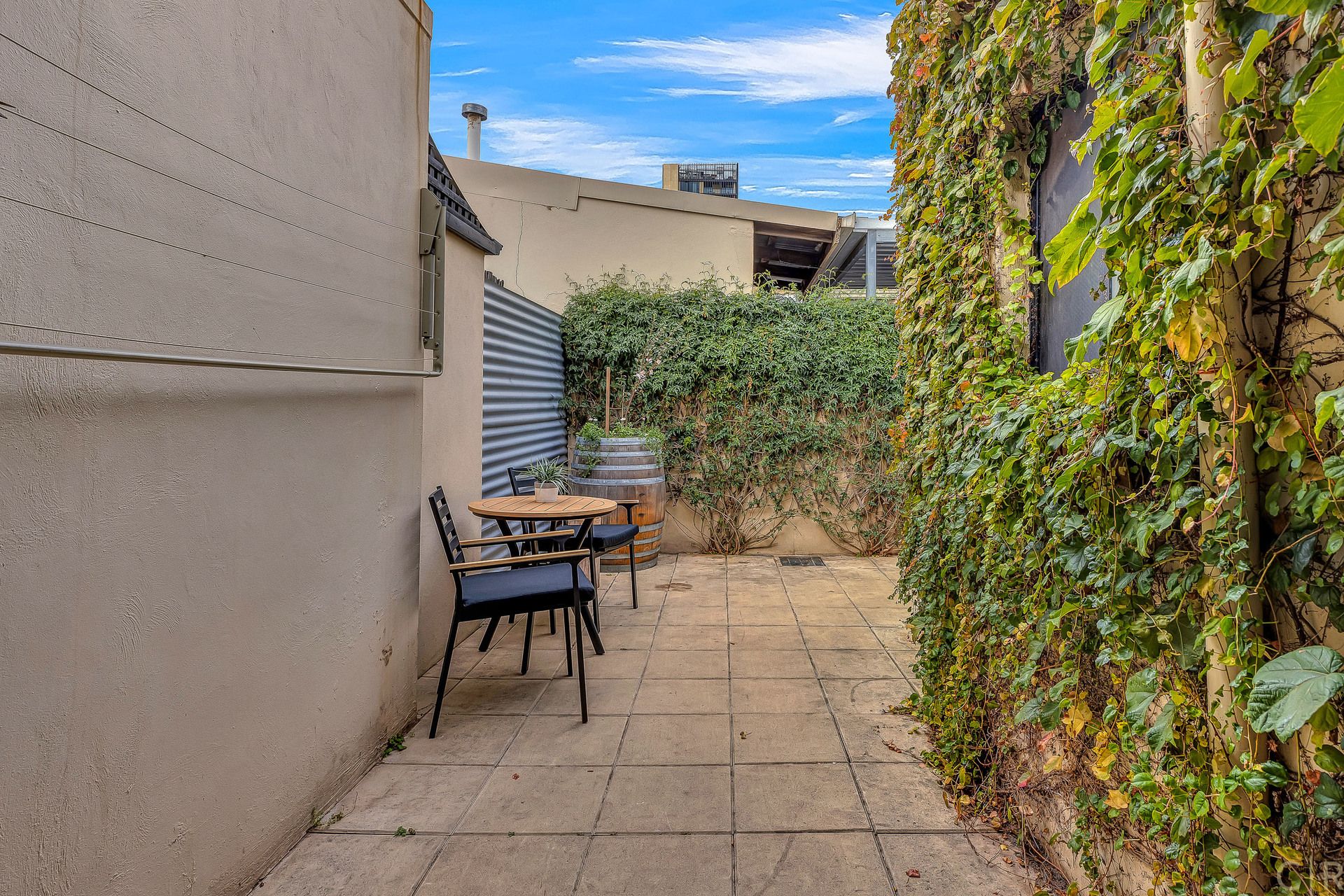 * Courtyard with greenery and space for outdoor entertaining