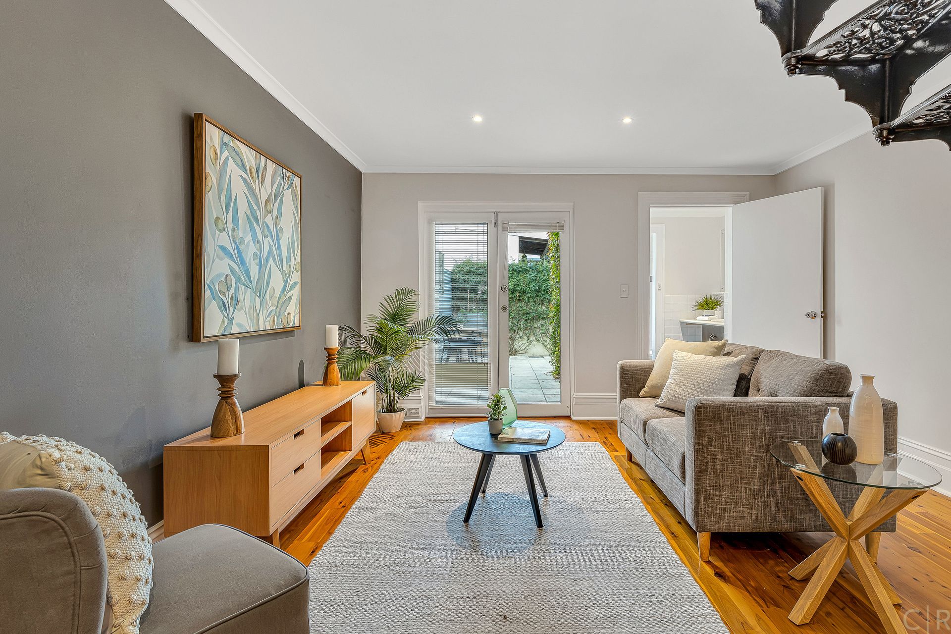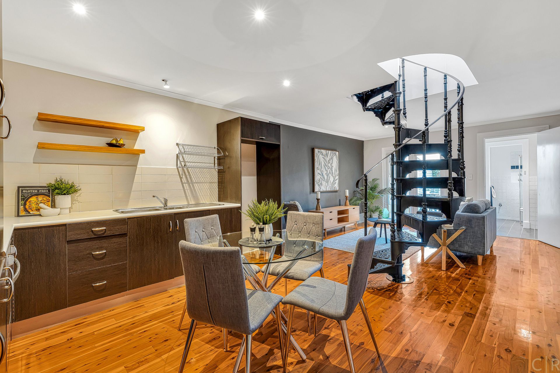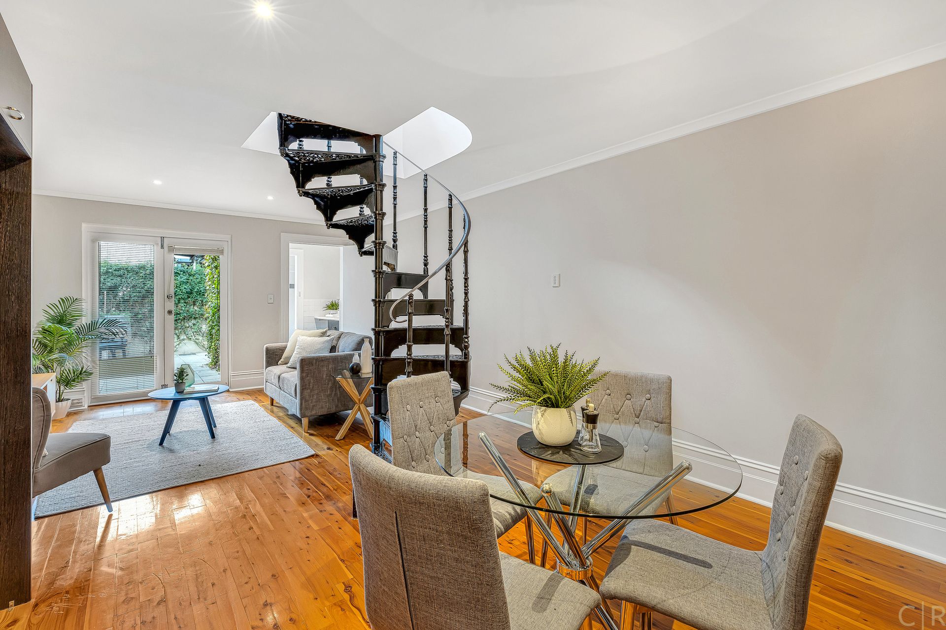 * Open plan kitchen/lounge/dining area with chic French doors to courtyard
