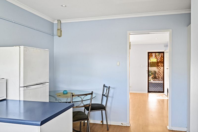 The spacious lounge with laminated flooring and split system air conditioner leads through to the updated kitchen and dining area.