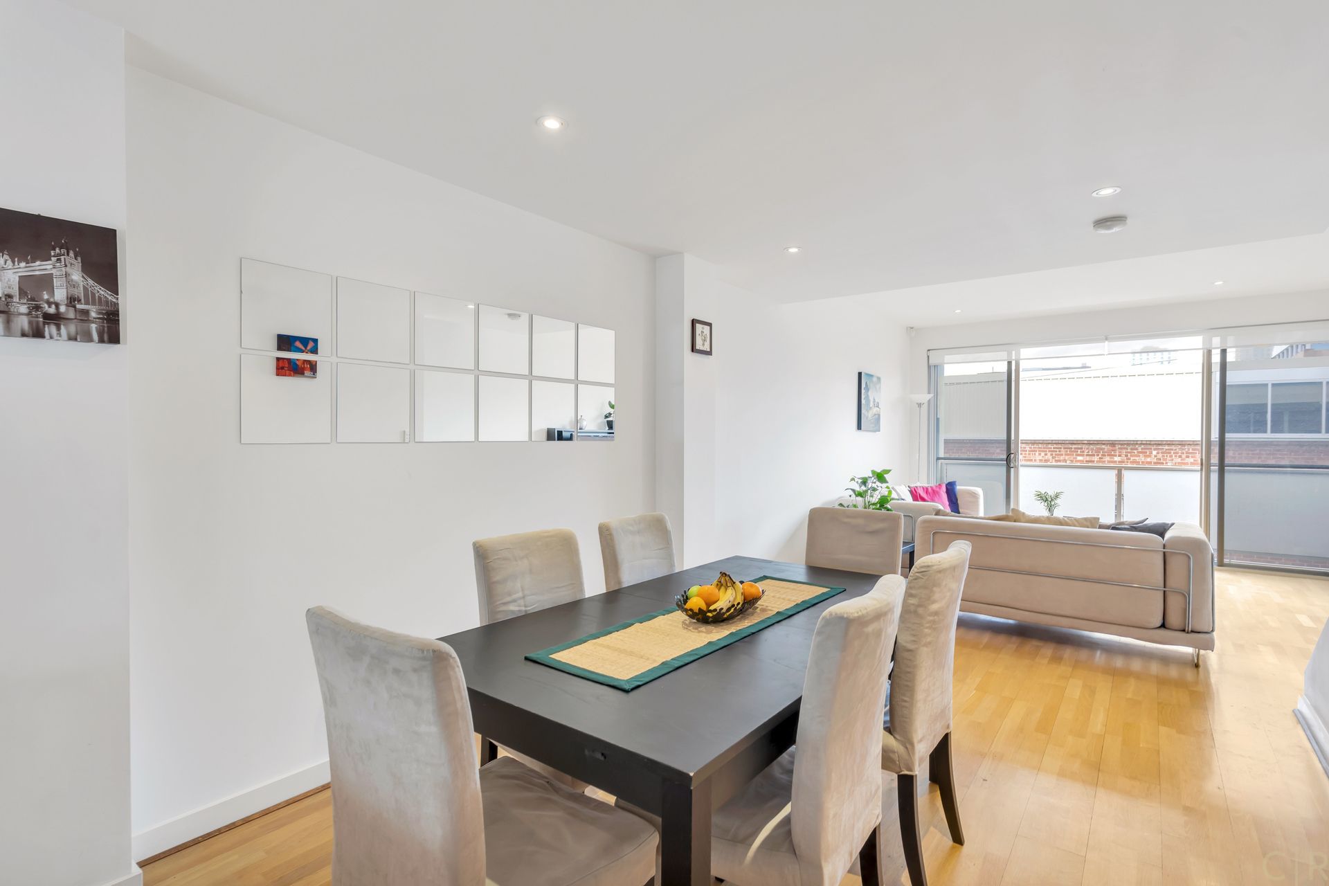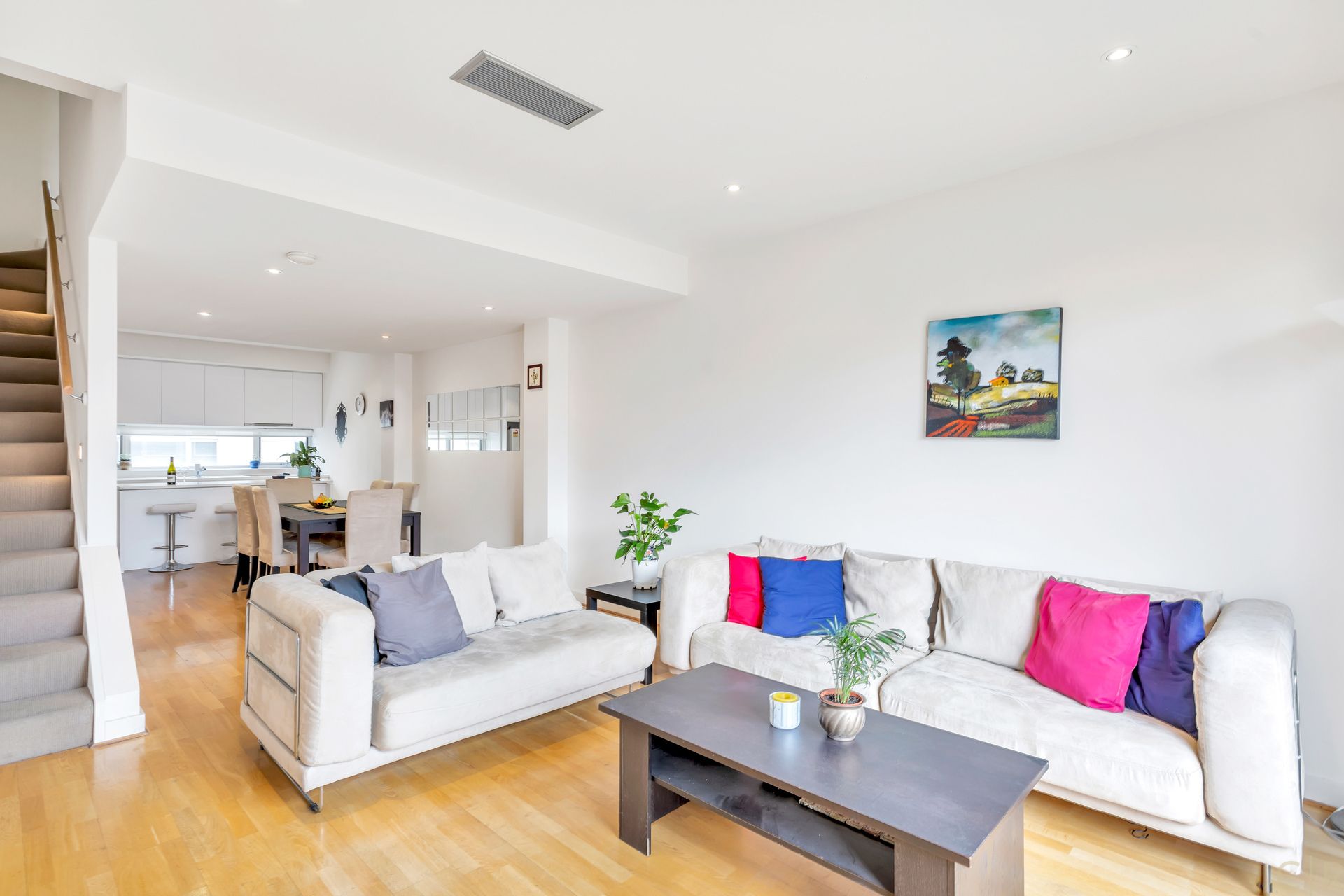 Spacious open plan dining/lounge with balcony access