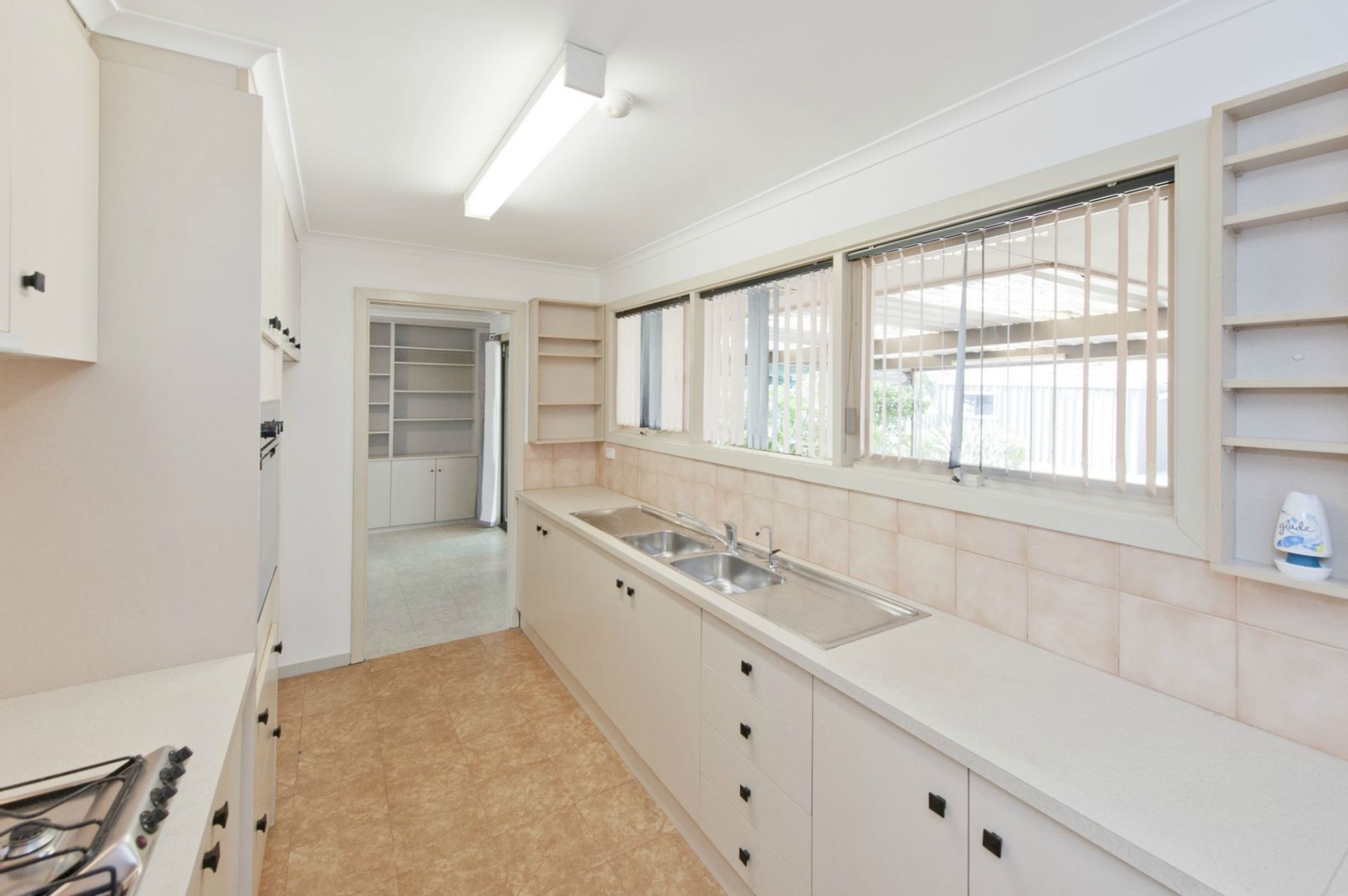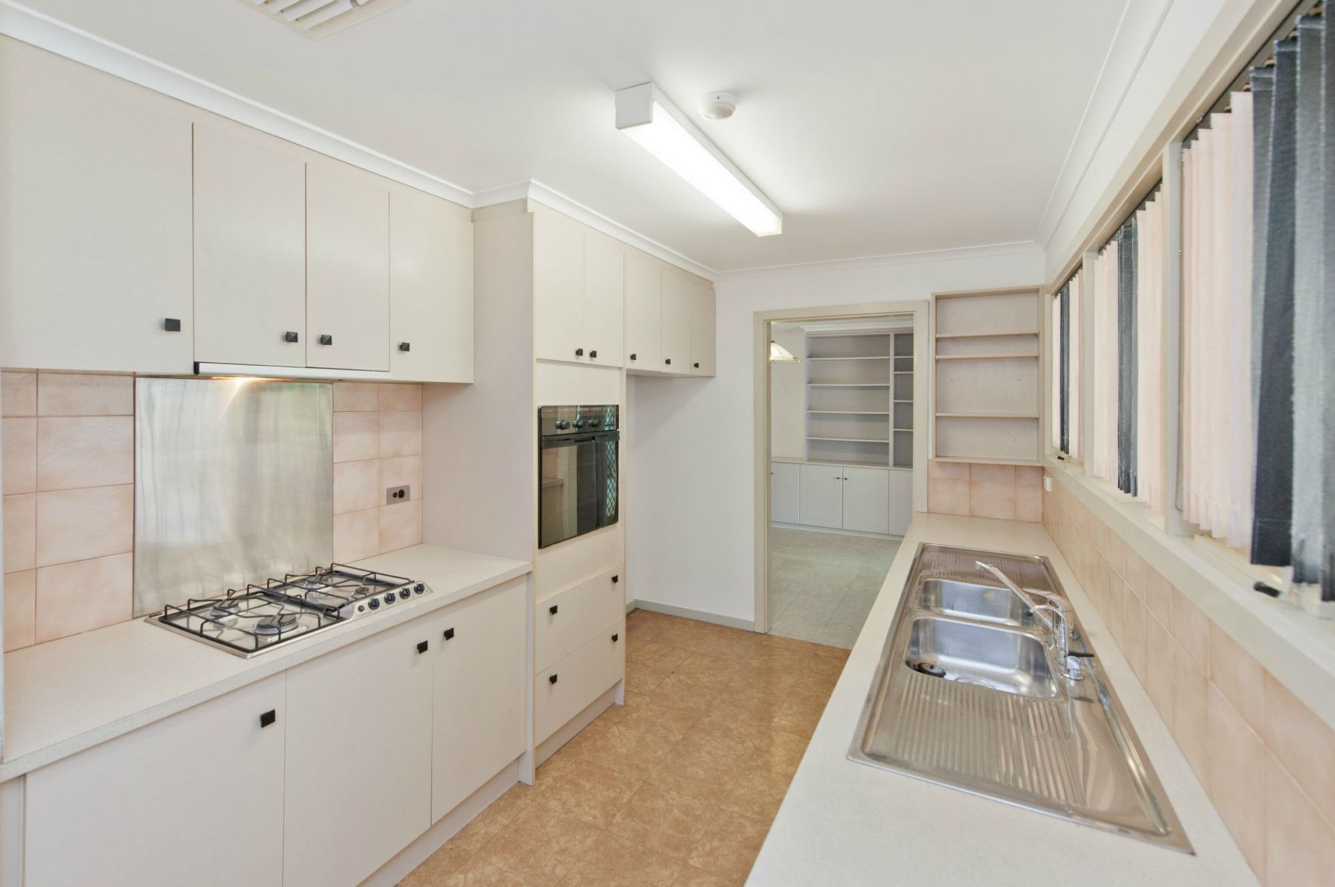 - Galley kitchen with gas appliances