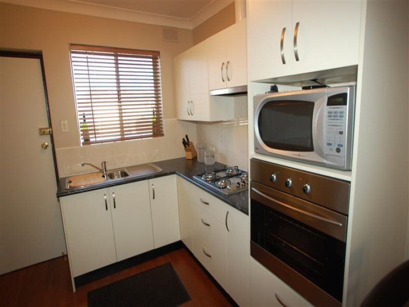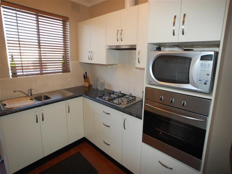 The good size living area has access to a small rear balcony for a BBQ or Weber. In the living area is the wall mounted rc/ac split system. Throughout the kitchen and living areas are eye-catching dark floating floorboards.