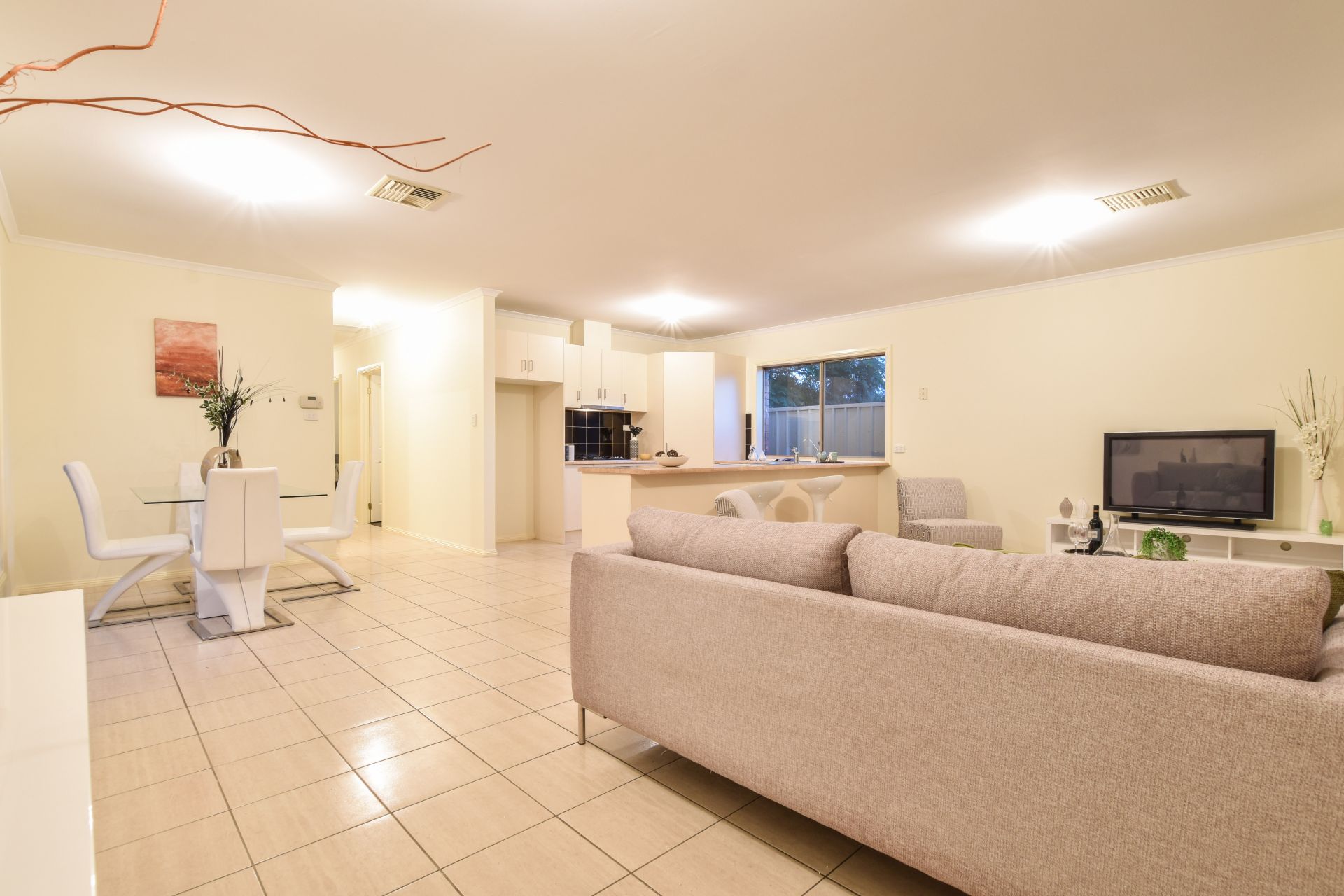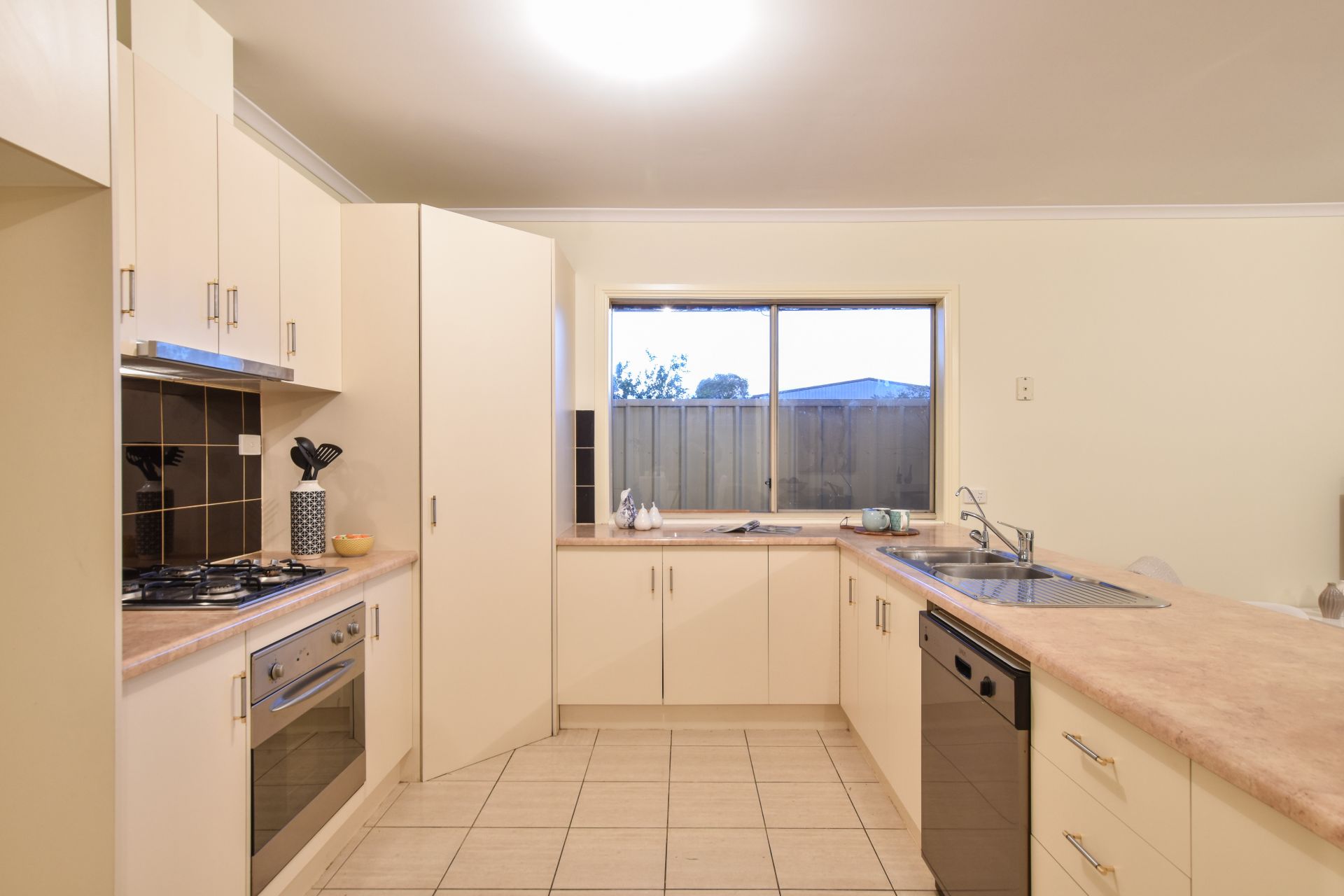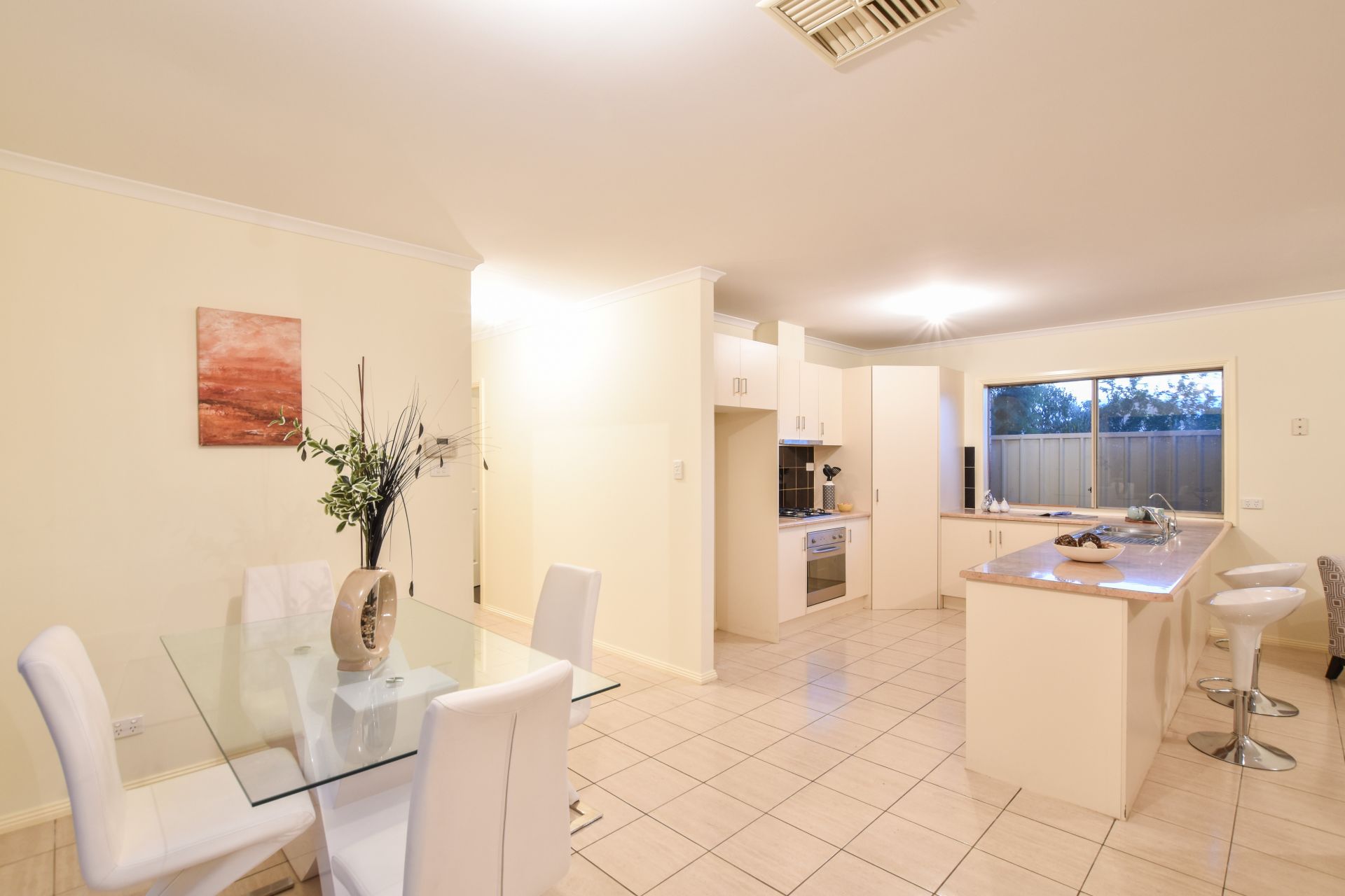 As you walk into the property this freshly painted home is light and bright and tiled throughout the common areas. A generous sized master bedroom complete with walk in robe and ensuite is to your left as you walk in and following down the corridor are 2 more good sized bedrooms, bedroom 3 with a floor to ceiling built in robe and bedroom 2 large enough for a stand alone wardrobe, all are newly carpeted. The main bathroom offers a separate toilet for added convenience. As you approach the end of the corridor you step into an open plan living area with a kitchen that offers ample bench space and room for bar stools to utilise the bench as a breakfast bar, air conditioning adds extra comfort to heart of the home.