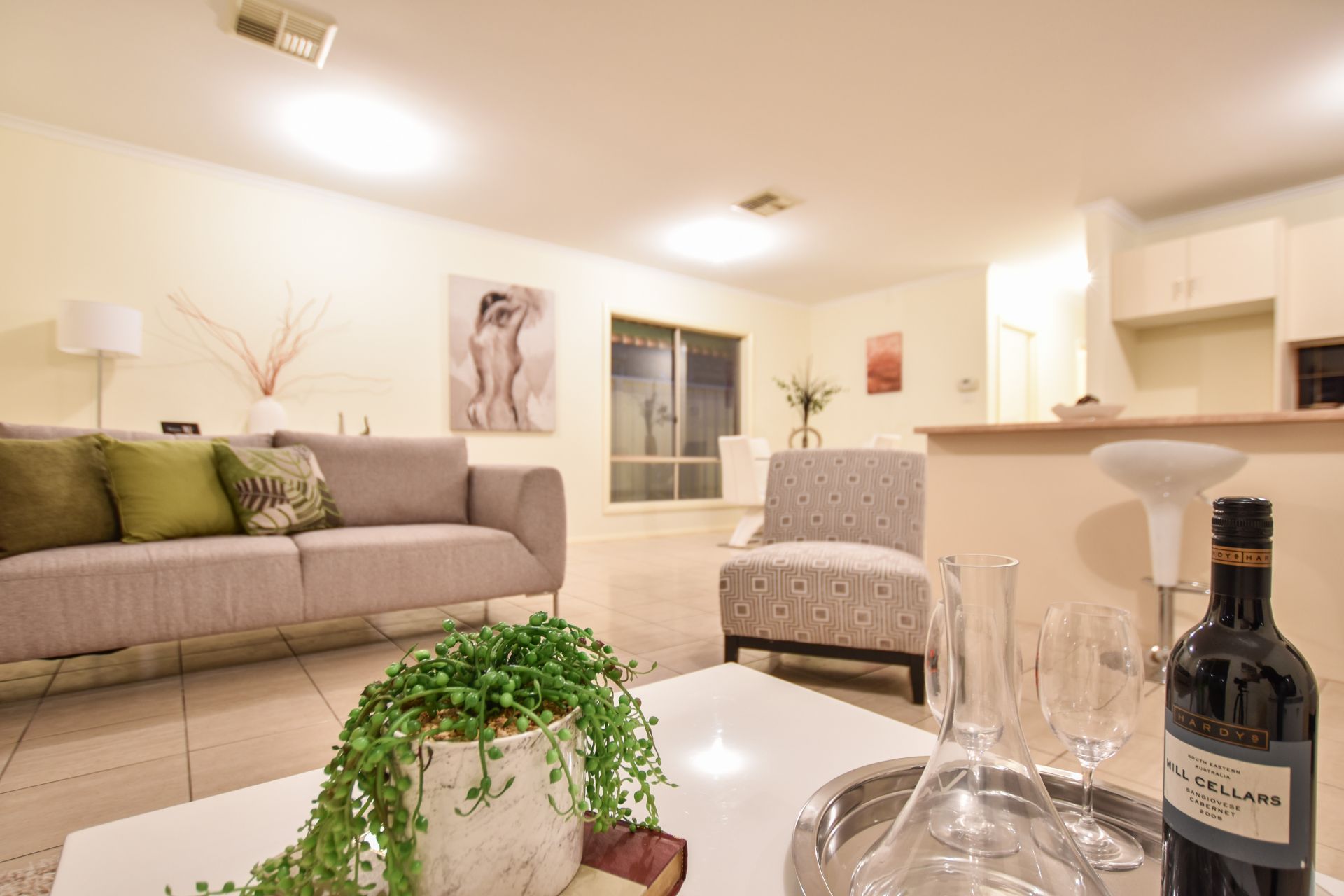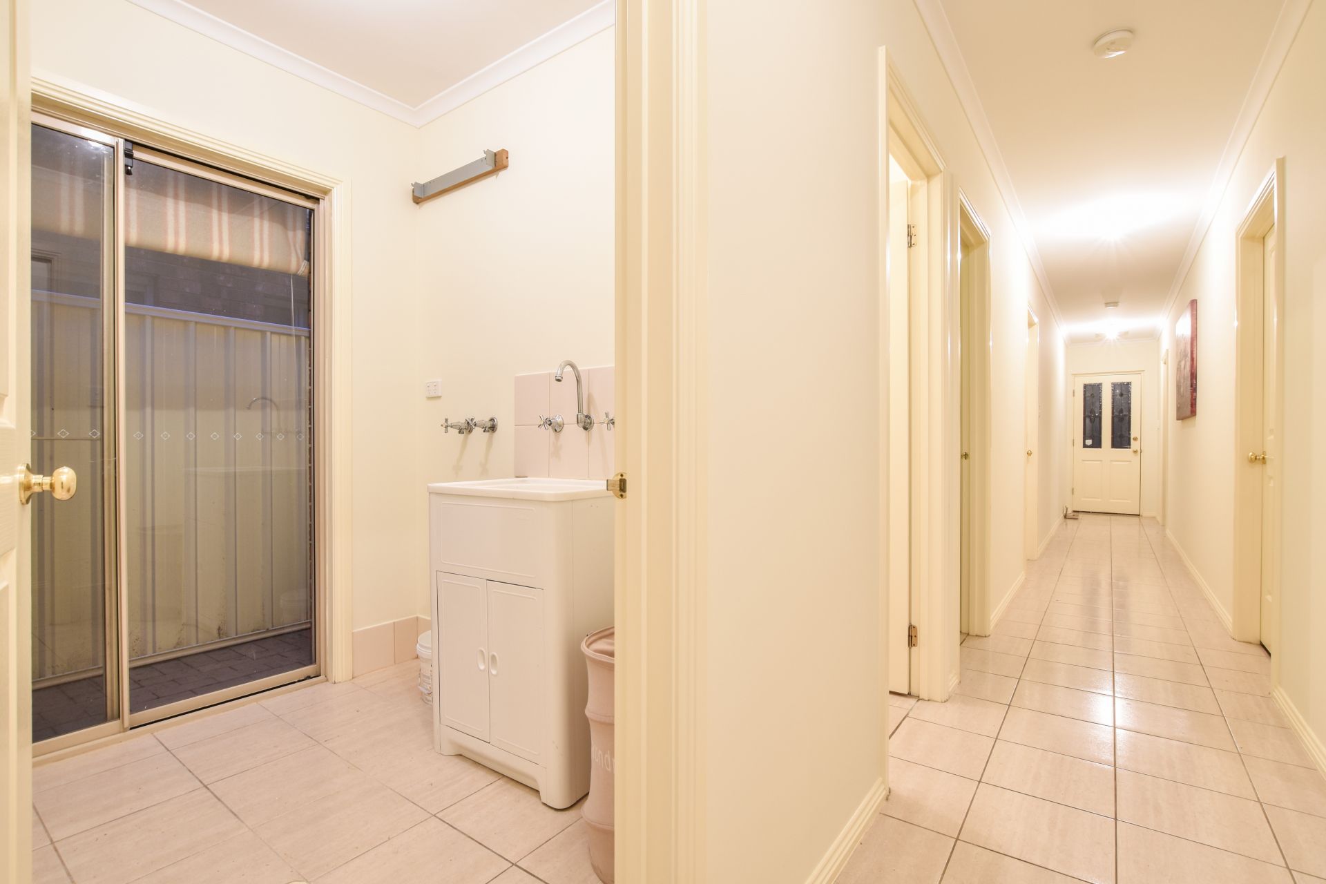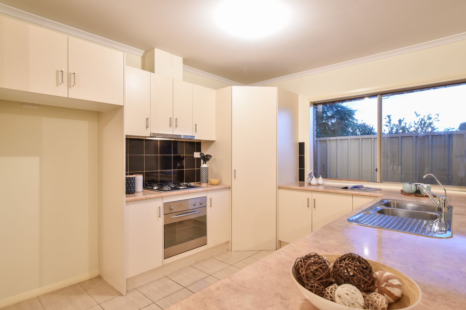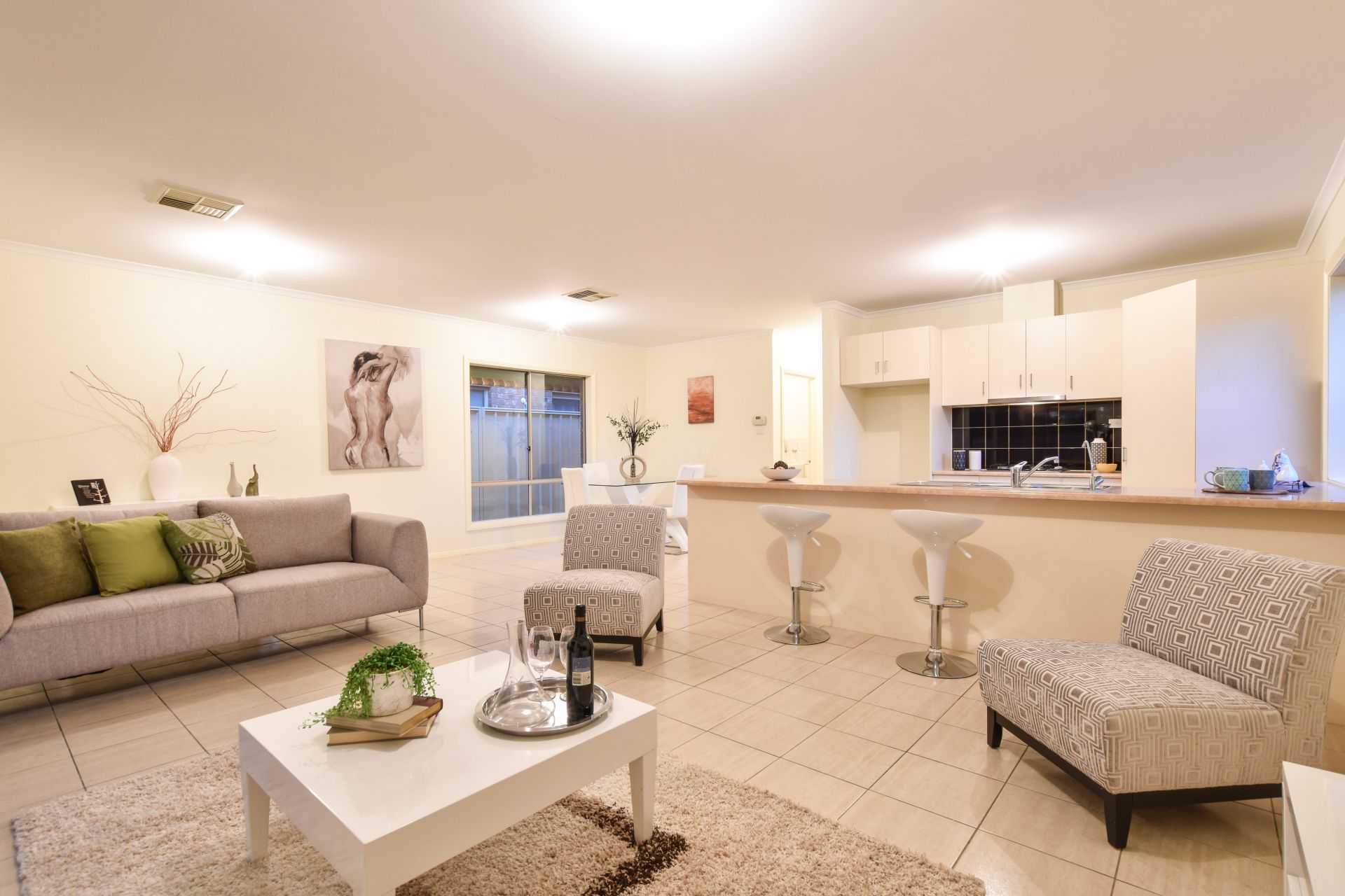 As you walk into the property this freshly painted home is light and bright and tiled throughout the common areas. A generous sized master bedroom complete with walk in robe and ensuite is to your left as you walk in and following down the corridor are 2 more good sized bedrooms, bedroom 3 with a floor to ceiling built in robe and bedroom 2 large enough for a stand alone wardrobe, all are newly carpeted. The main bathroom offers a separate toilet for added convenience. As you approach the end of the corridor you step into an open plan living area with a kitchen that offers ample bench space and room for bar stools to utilise the bench as a breakfast bar, air conditioning adds extra comfort to heart of the home.