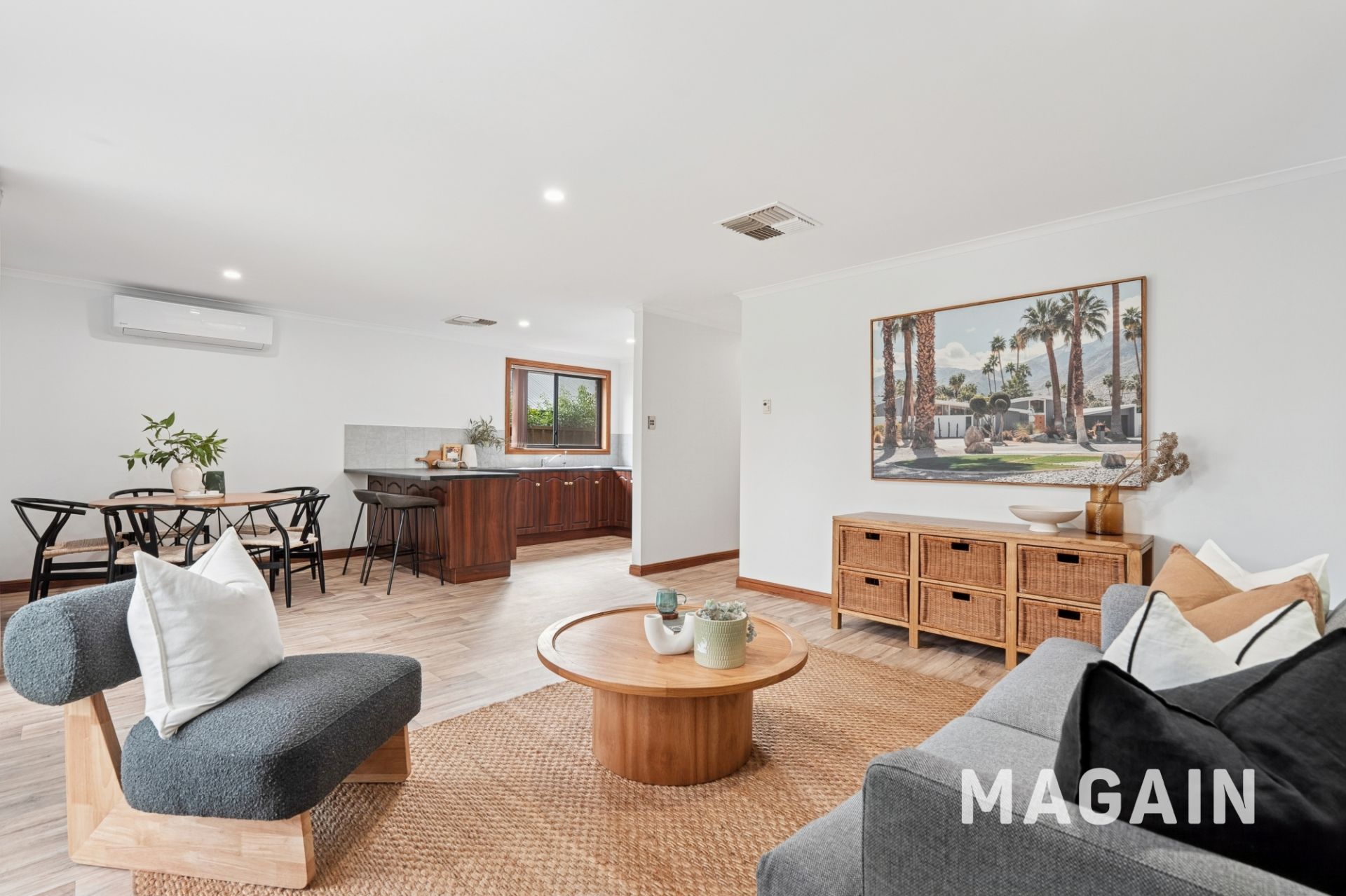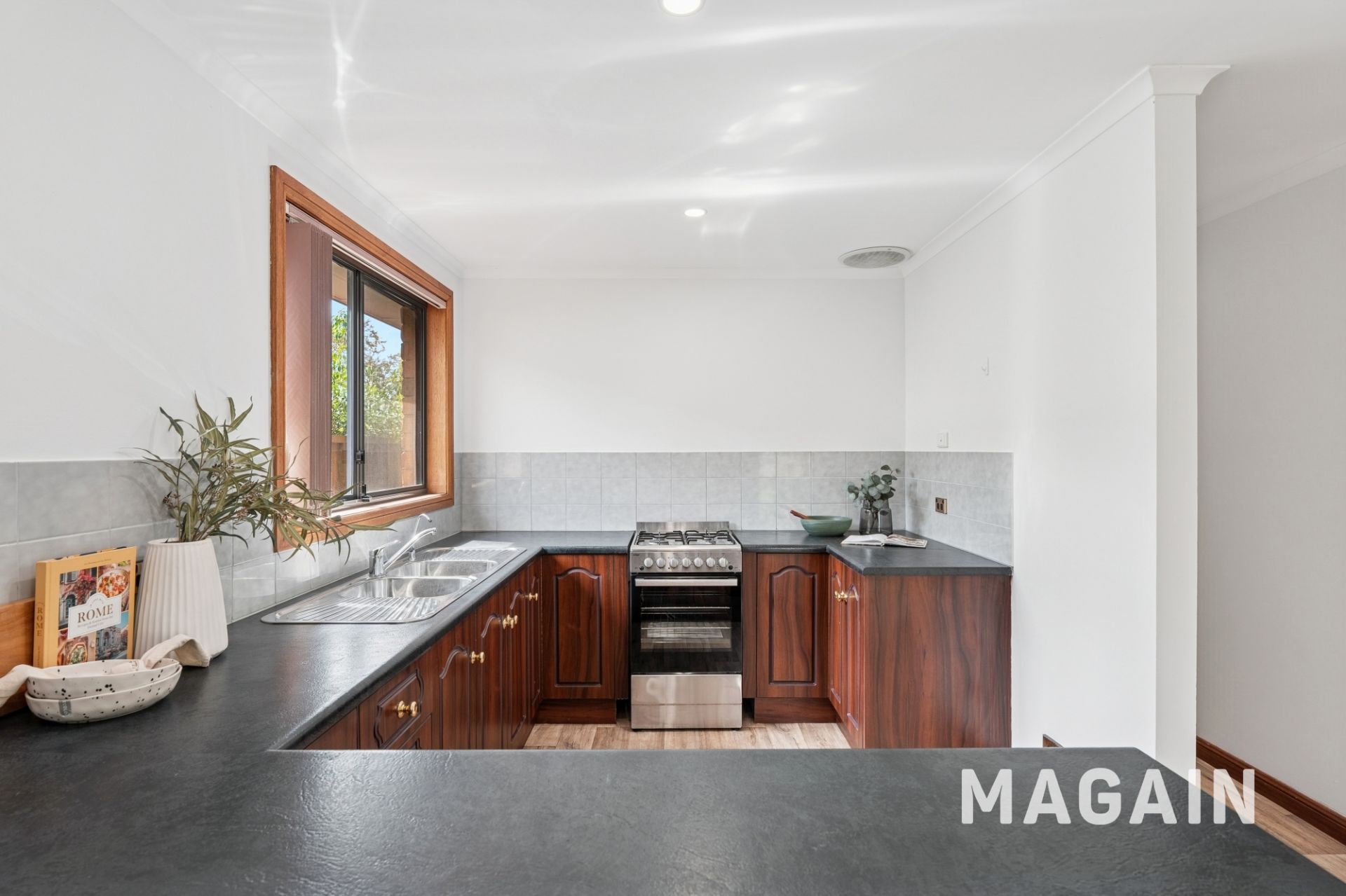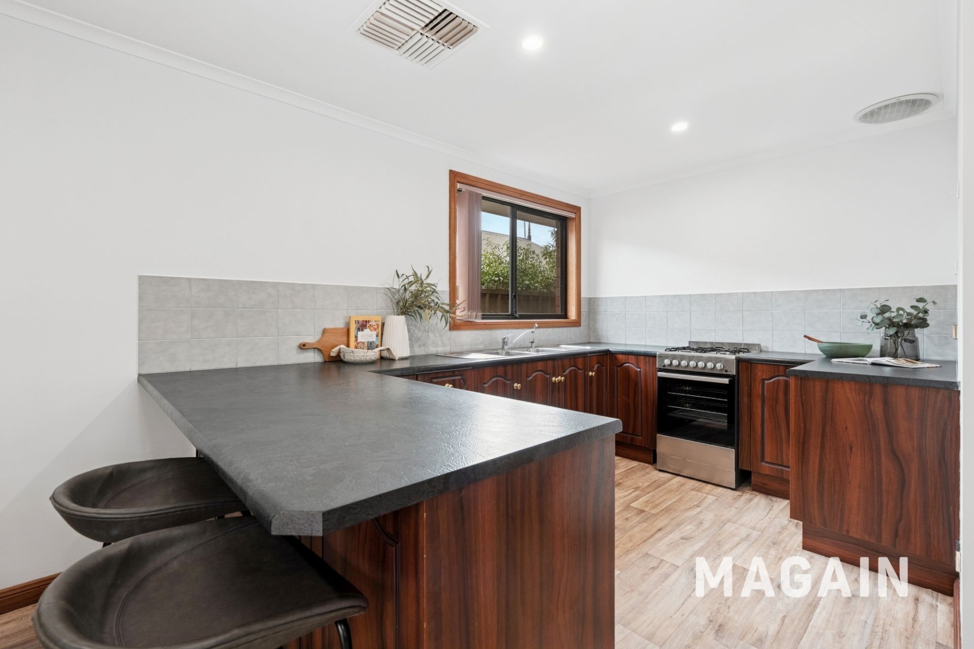 Step inside to find a light-filled and functional floor plan featuring three well sized bedrooms, each with fresh carpet underfoot. The open plan living and dining area is fitted with vinyl flooring and a split system, creating an inviting hub for everyday living. The kitchen overlooks the dining space and comes complete with a breakfast bar, stainless steel oven, and gas cooktop - ideal for casual meals and entertaining.