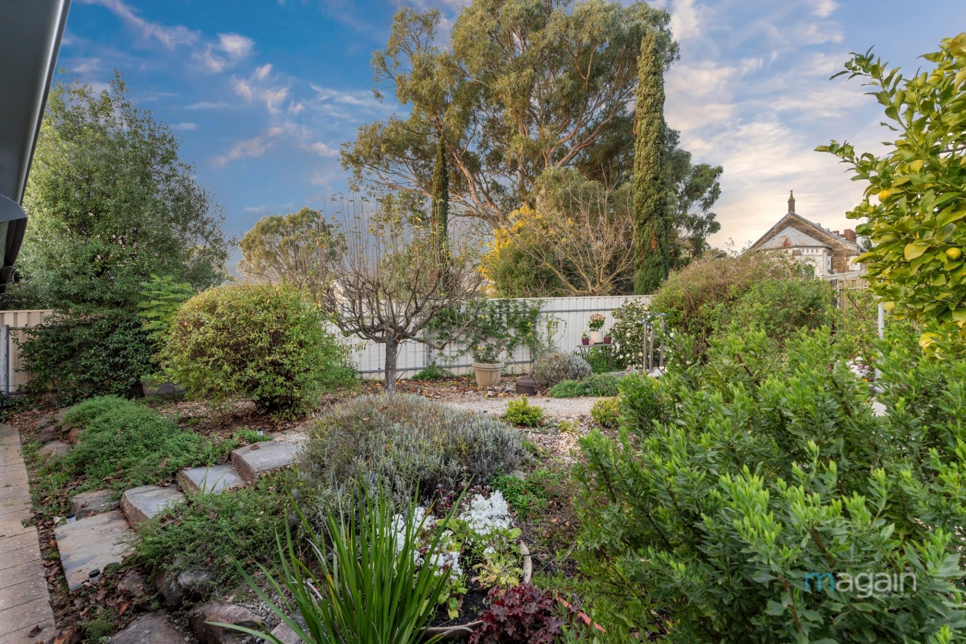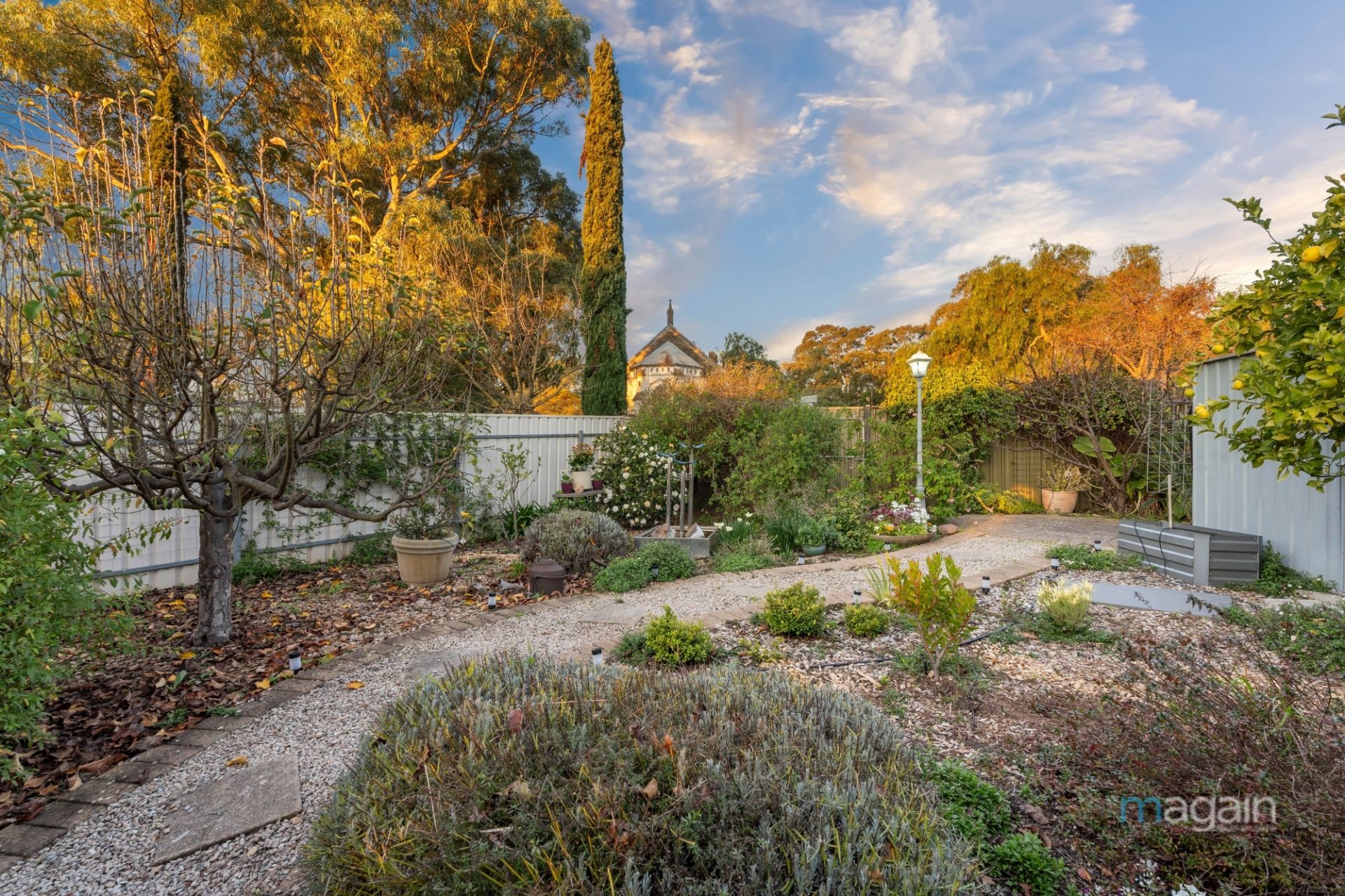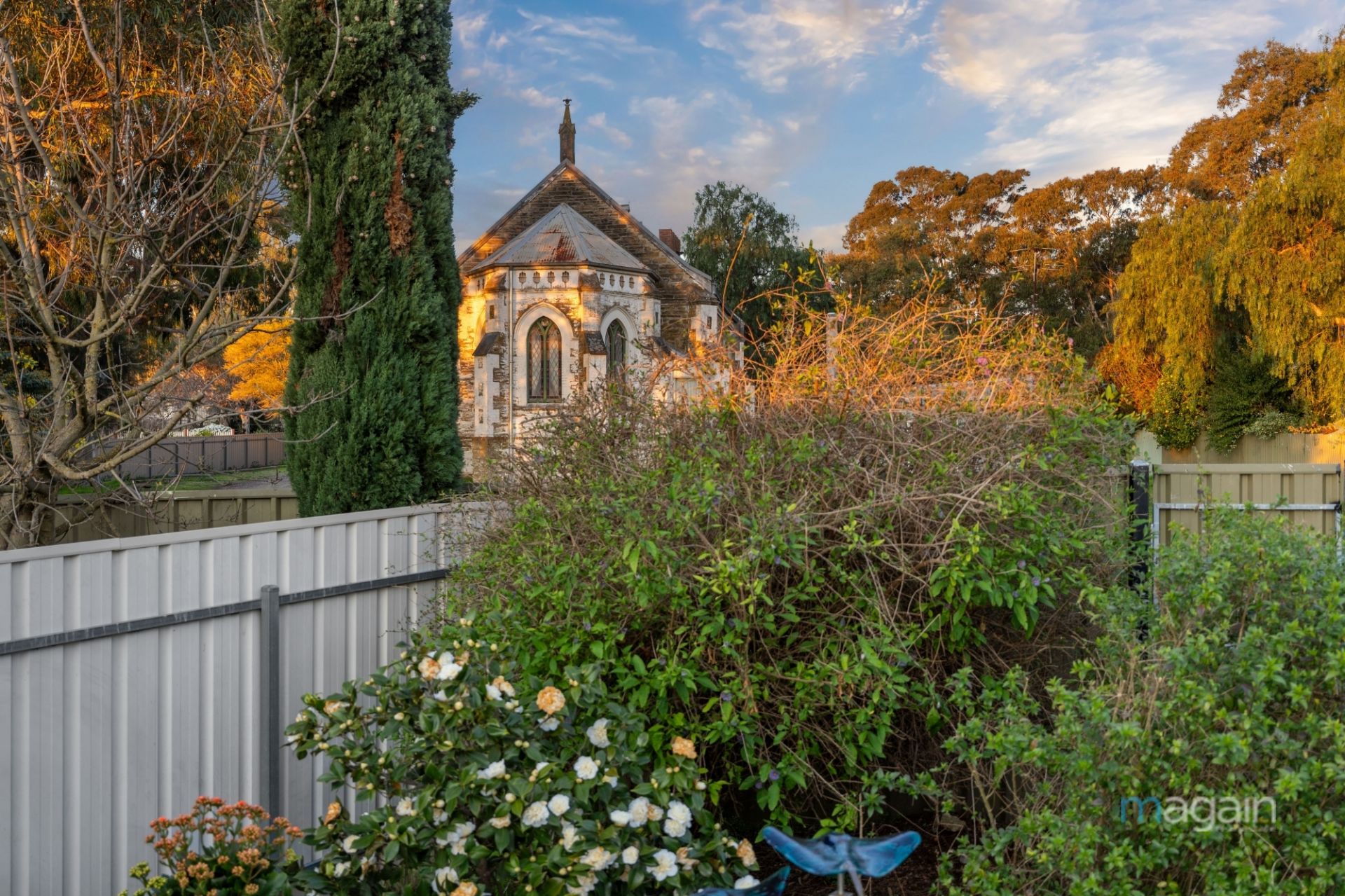 The back garden is well established, has an easy care appeal and is very private. There is a garden path that leads to a garden/tool shed and there is a paved section at the rear of the house where there is a clothes line and rainwater tanks. From the rear outdoor entertaining and from the back garden there are views that capture the historical St Stephens Church which is pretty special.