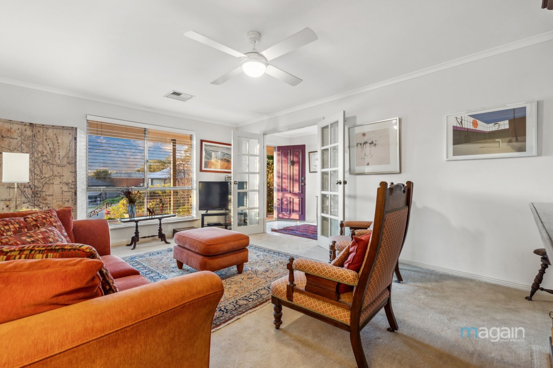 This property sits proudly in an elevated position with a lovely front garden. Upon entry you're greeted with a separate entrance foyer which provides access through French doors to a lovely formal lounge room which has had a ceiling fan installed. The lounge room is perfectly positioned away from the rest of the home, providing separational living and offering multiple uses such as, craft room, home theatre room or however you wish to utilise this space.