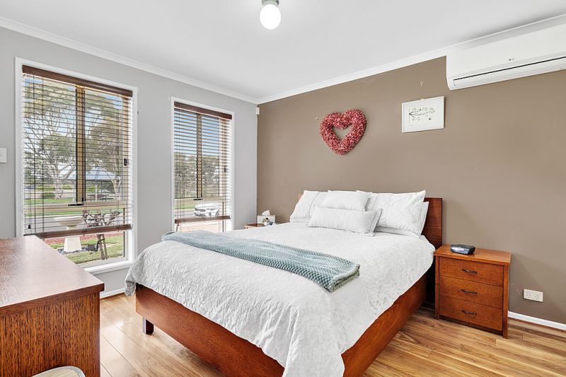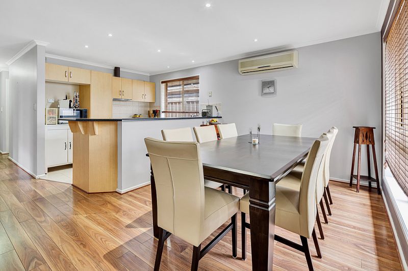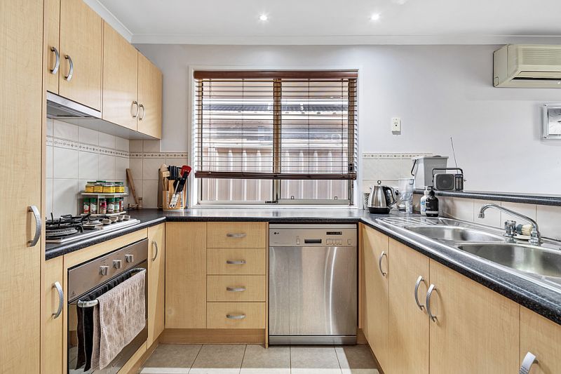 To the rear of the home is the open planned living area. The kitchen is well appointed with ample bench and cupboard space and includes all the essential appliances including gas cooktop and dishwasher. The kitchen overlooks the large dining and living area, making hosting family and friends a breeze. For year round comfort, split system air conditioning have been installed in the master bedroom and main living area.
