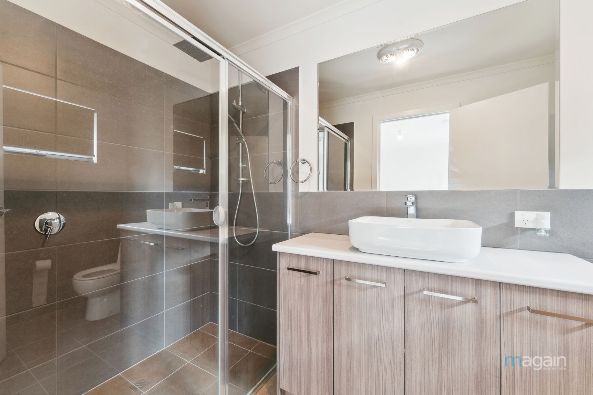 Upstairs, three generous bedrooms provide private retreats, each with plush carpet and built-in robes. A sophisticated central bathroom services the upper level, while a convenient powder room downstairs is perfect for guests.